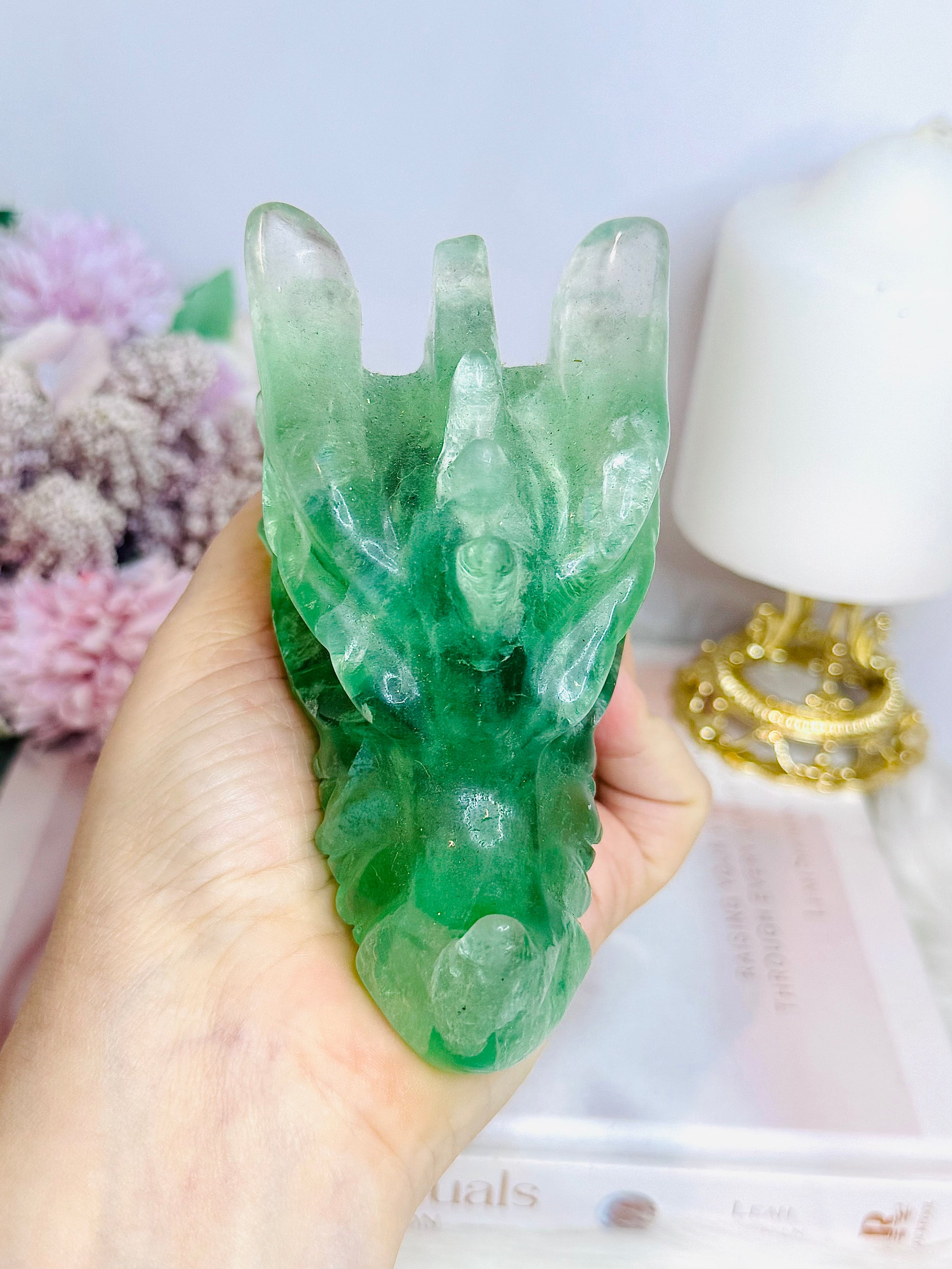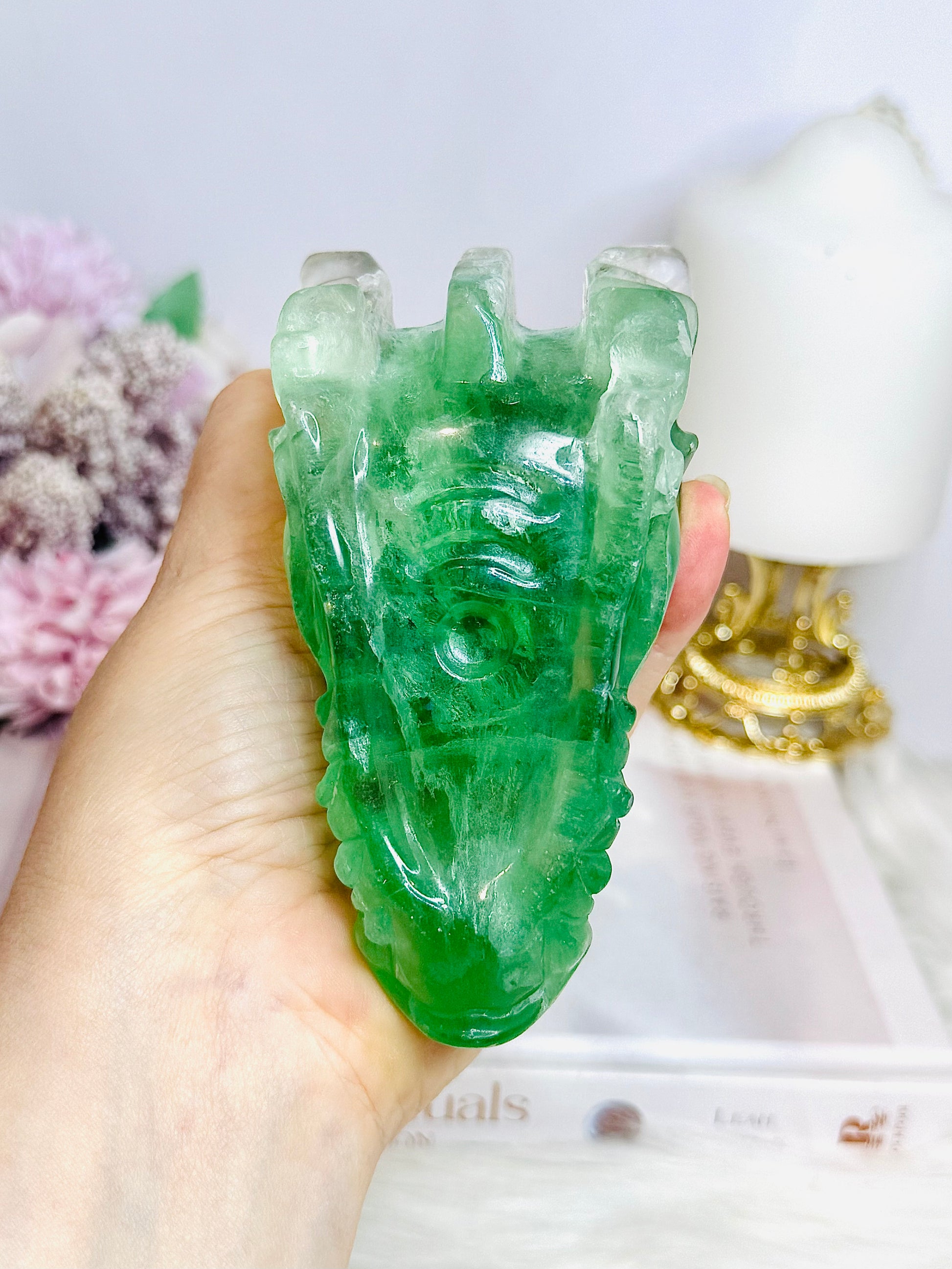 Green Fluorite Carved Dragon 11cm 464g