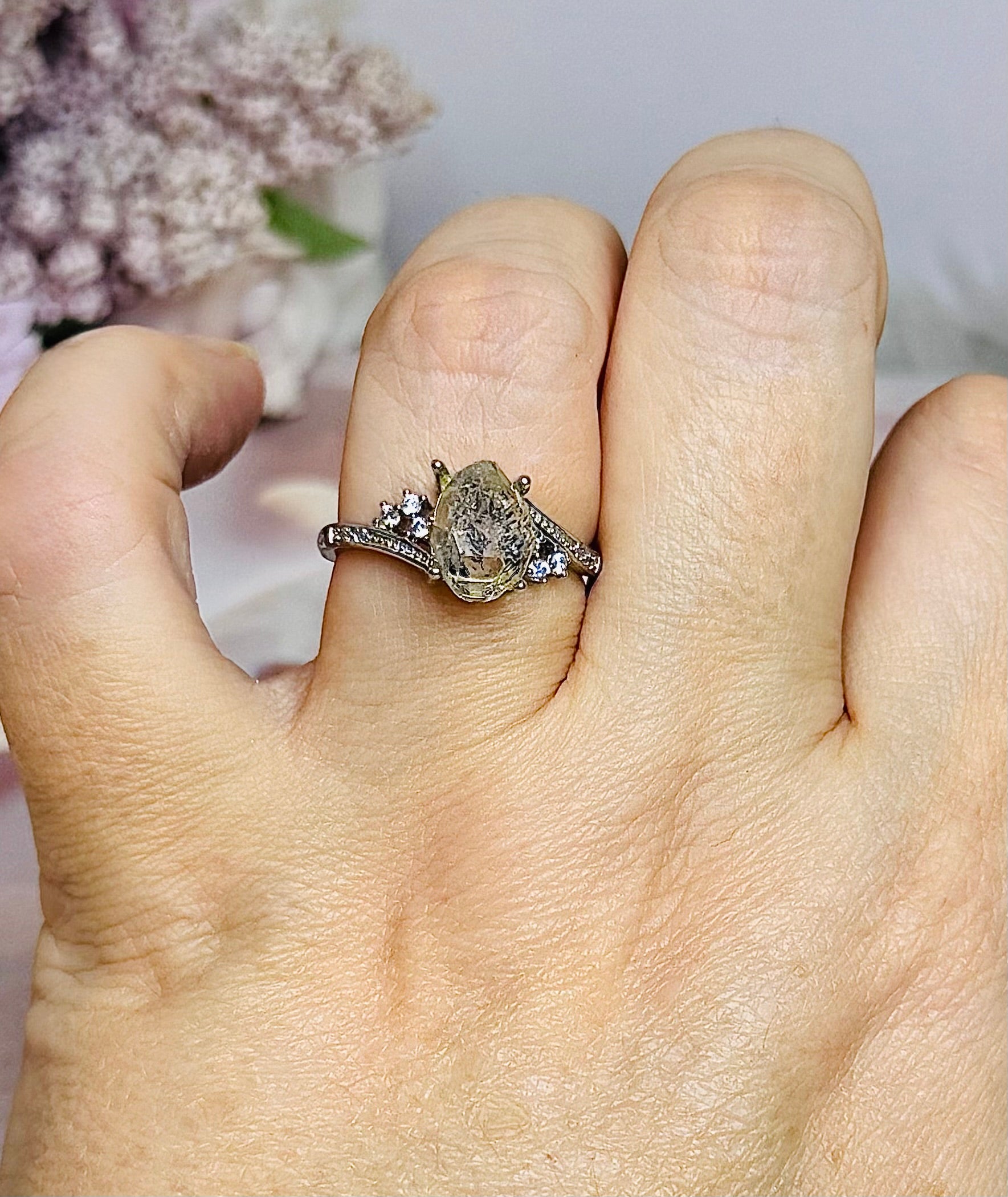 Herkimer Diamond Adjustable Silver Ring In Gift Bag