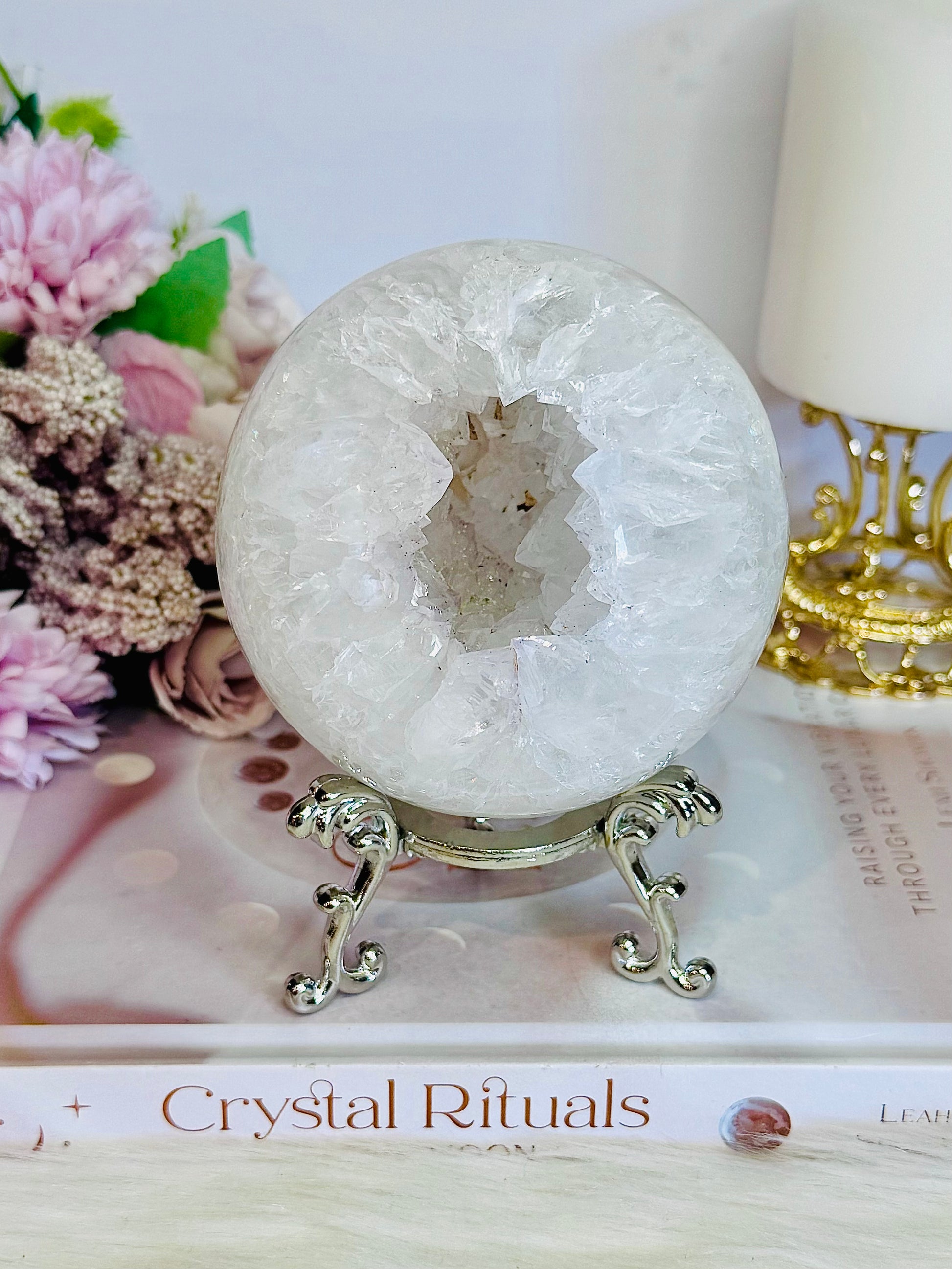 High Grade Absolutely Incredible Large Clear Quartz Druzy Sphere From Brazil 845grams
