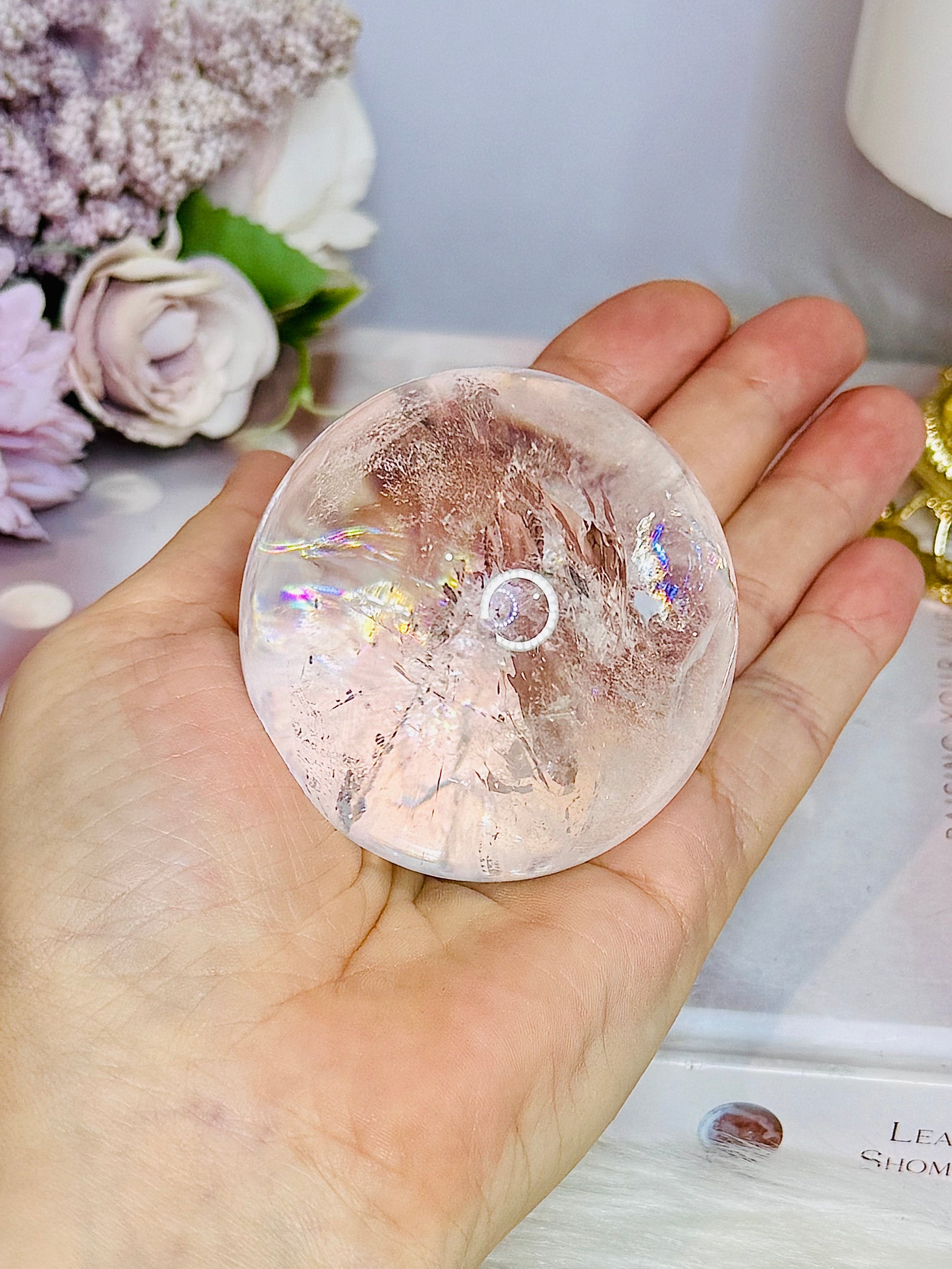 High Grade Clear Quartz Sphere Full of Rainbows 266g