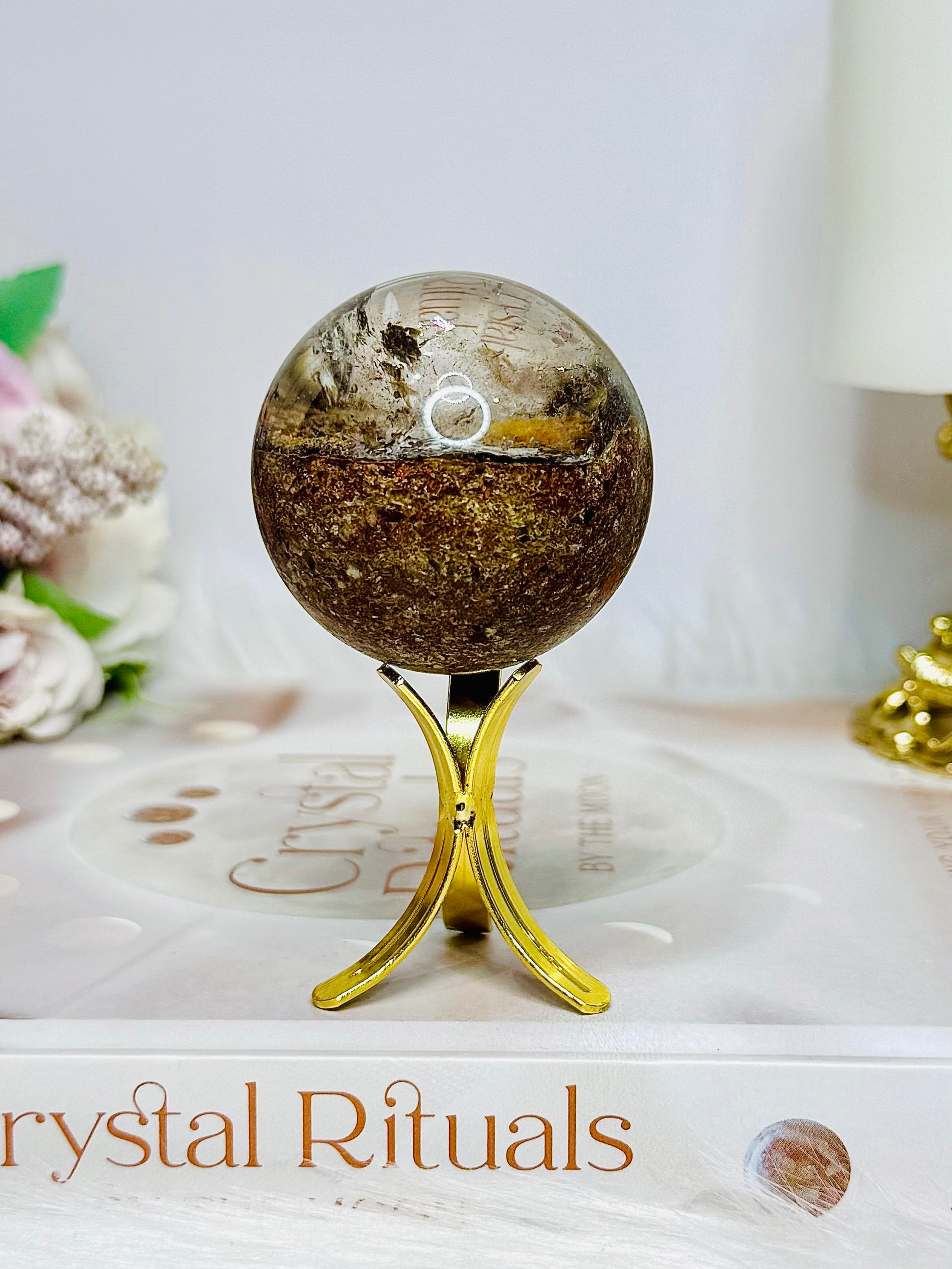 High Grade Garden Phantom Quartz | Lodolite Sphere on Stand 106g