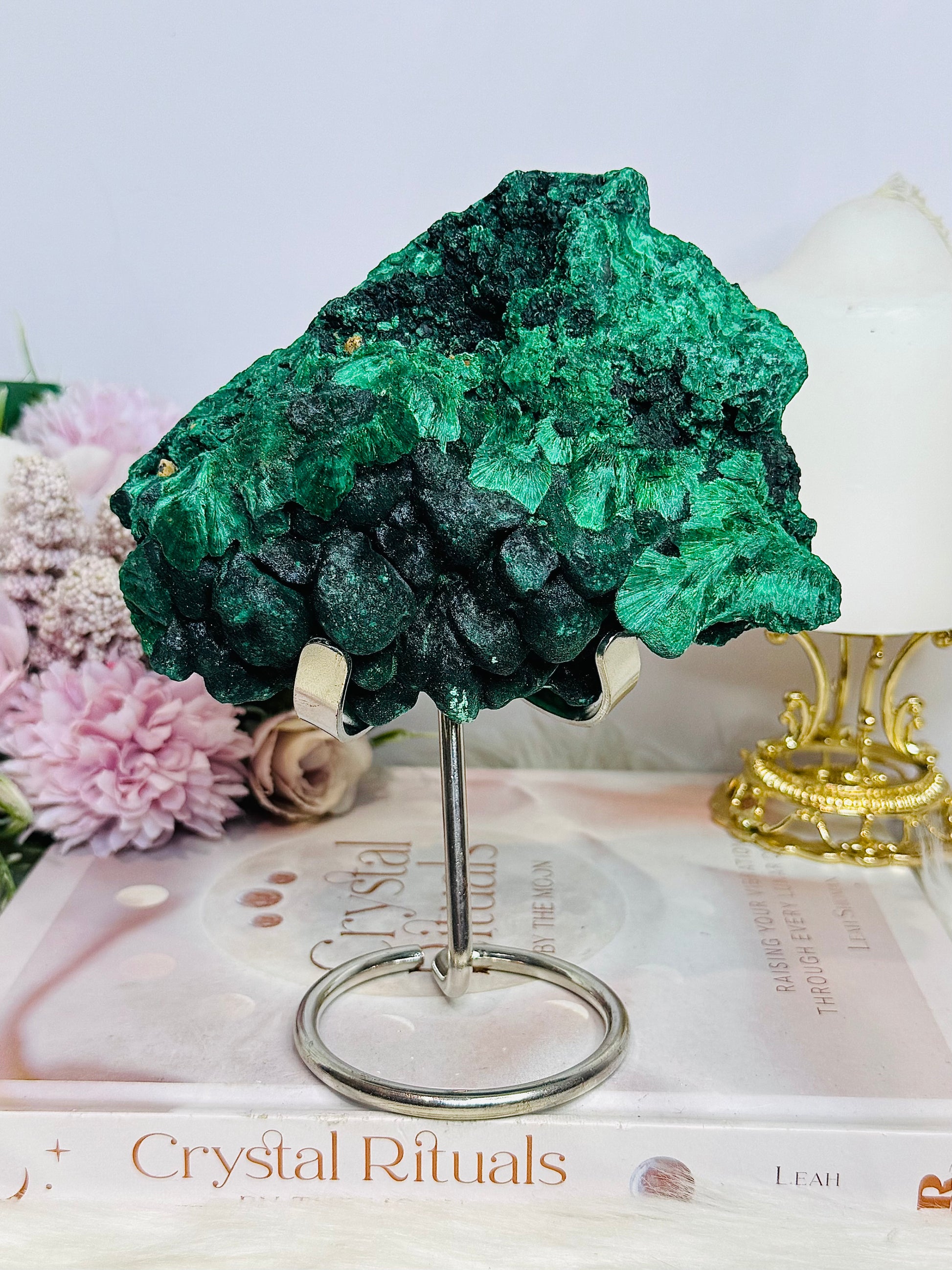 High Grade Velvet Botryoidal Malachite Natural Specimen on Stand 882g 15cm