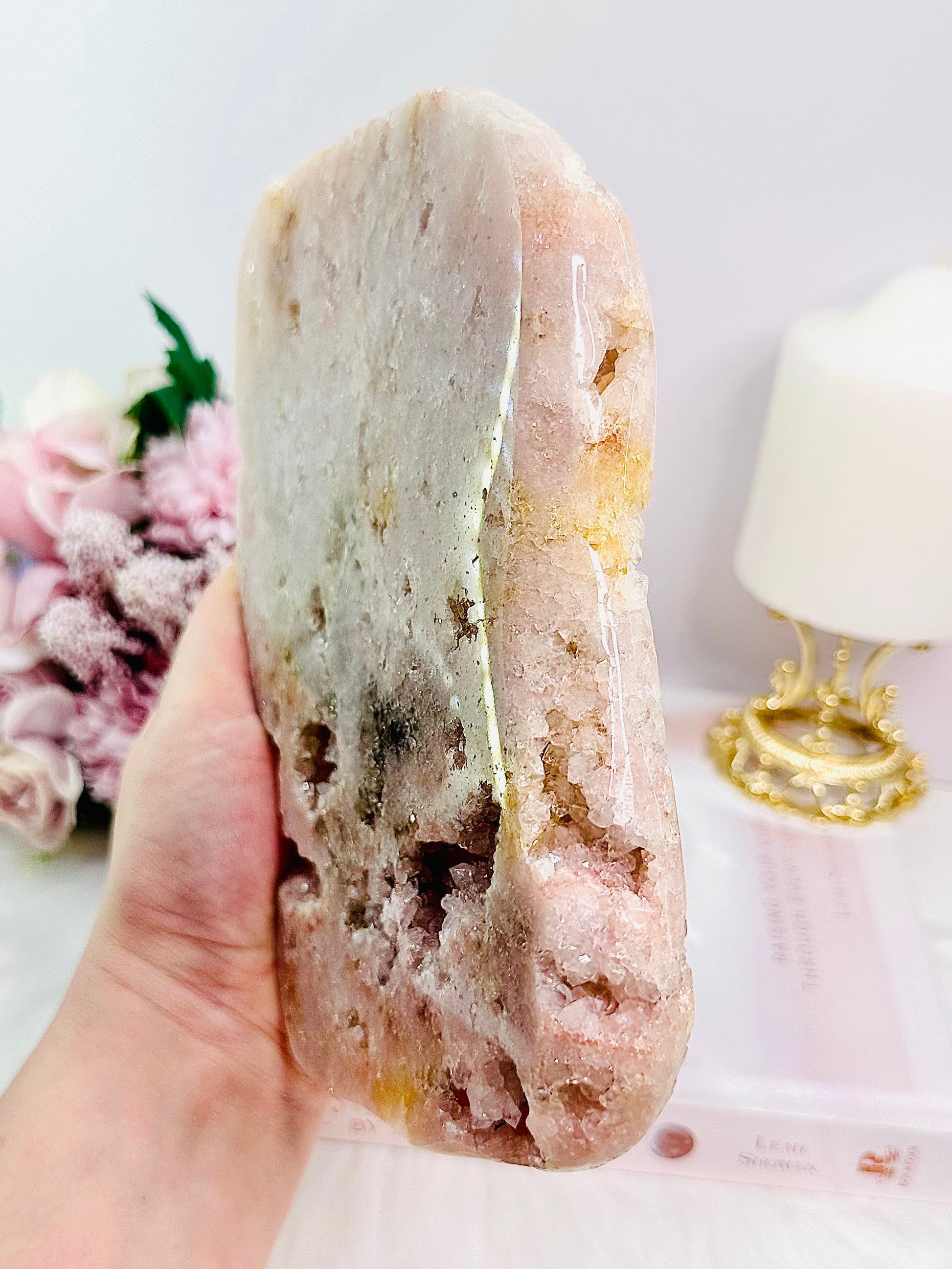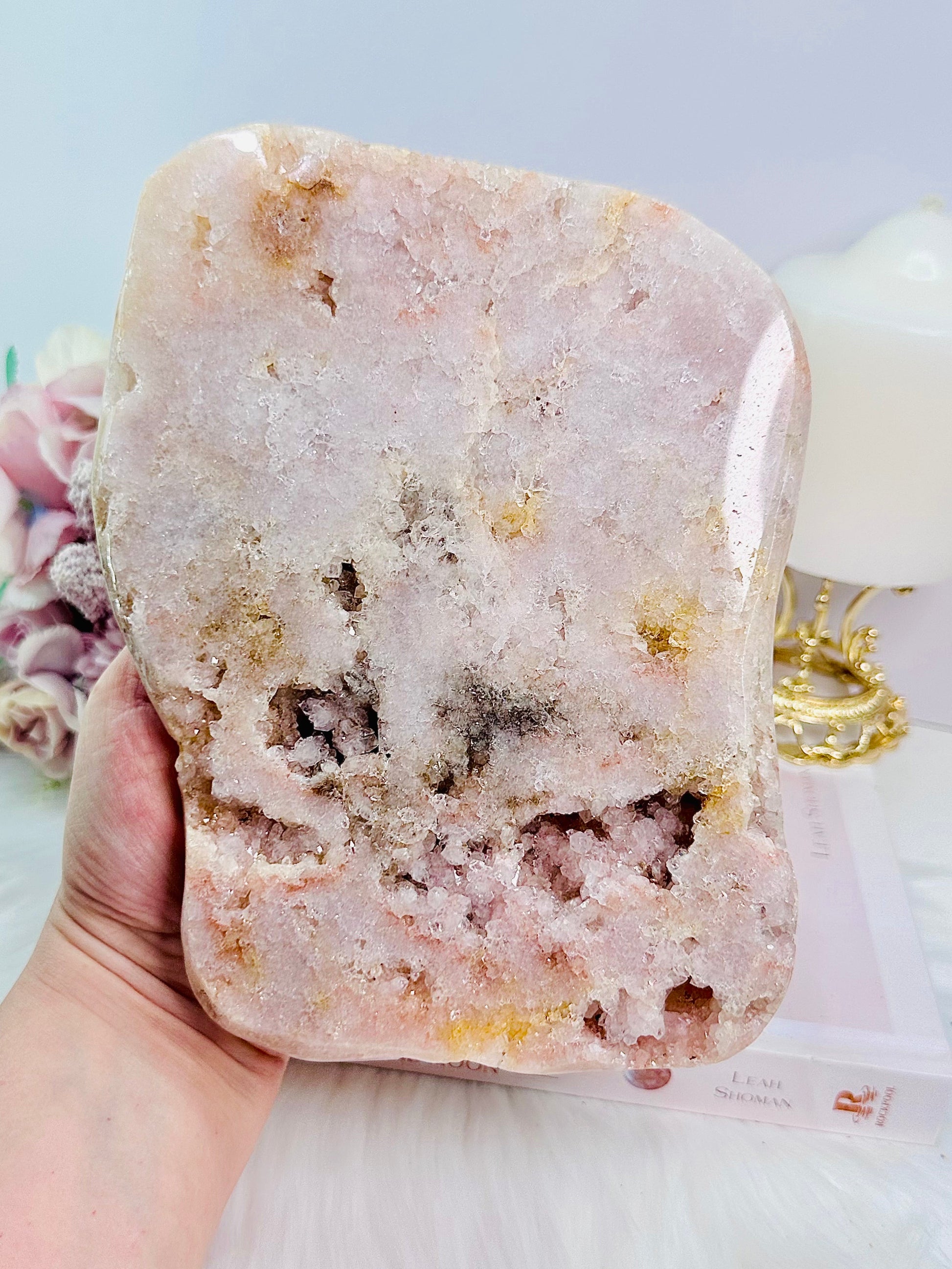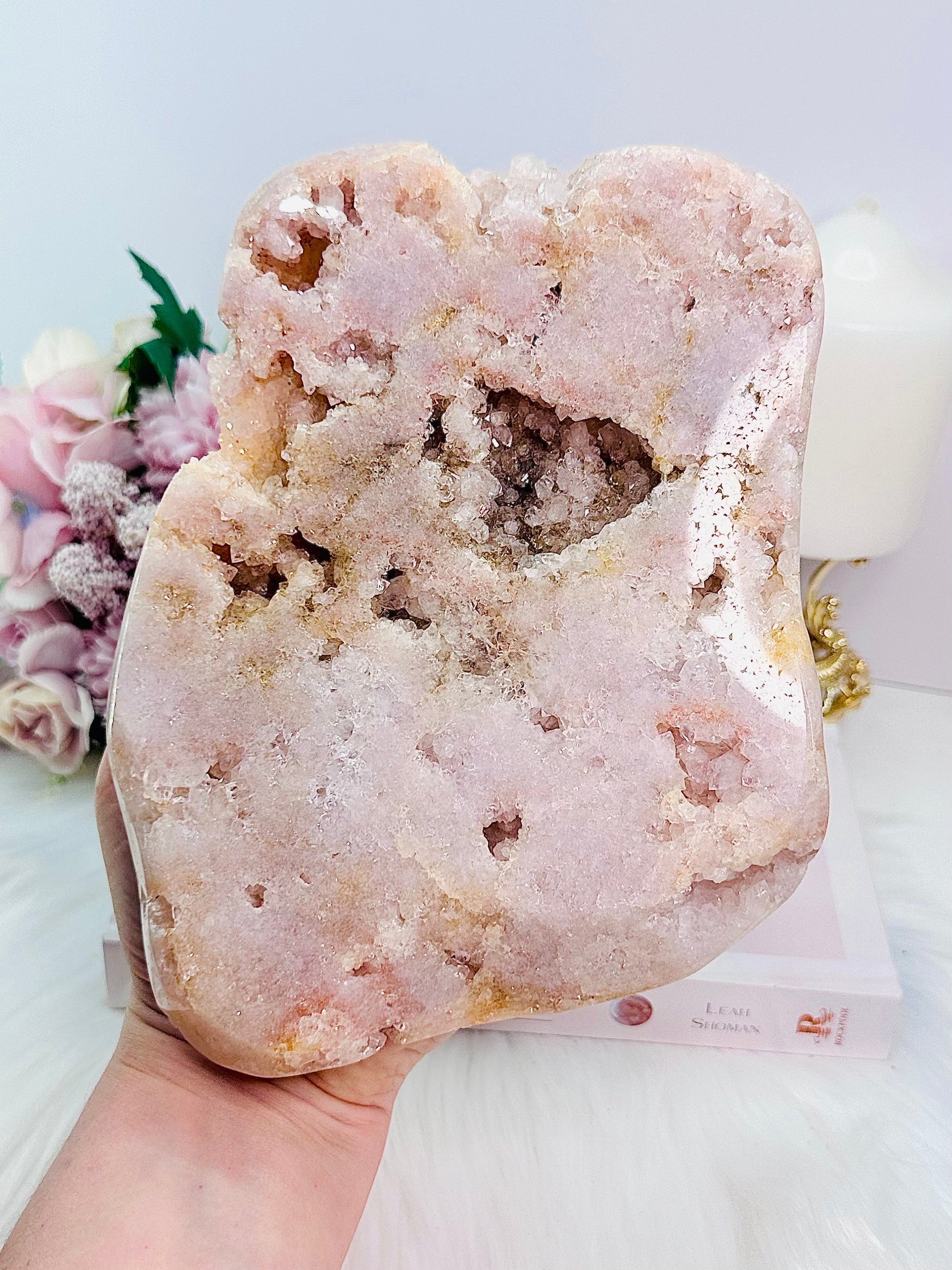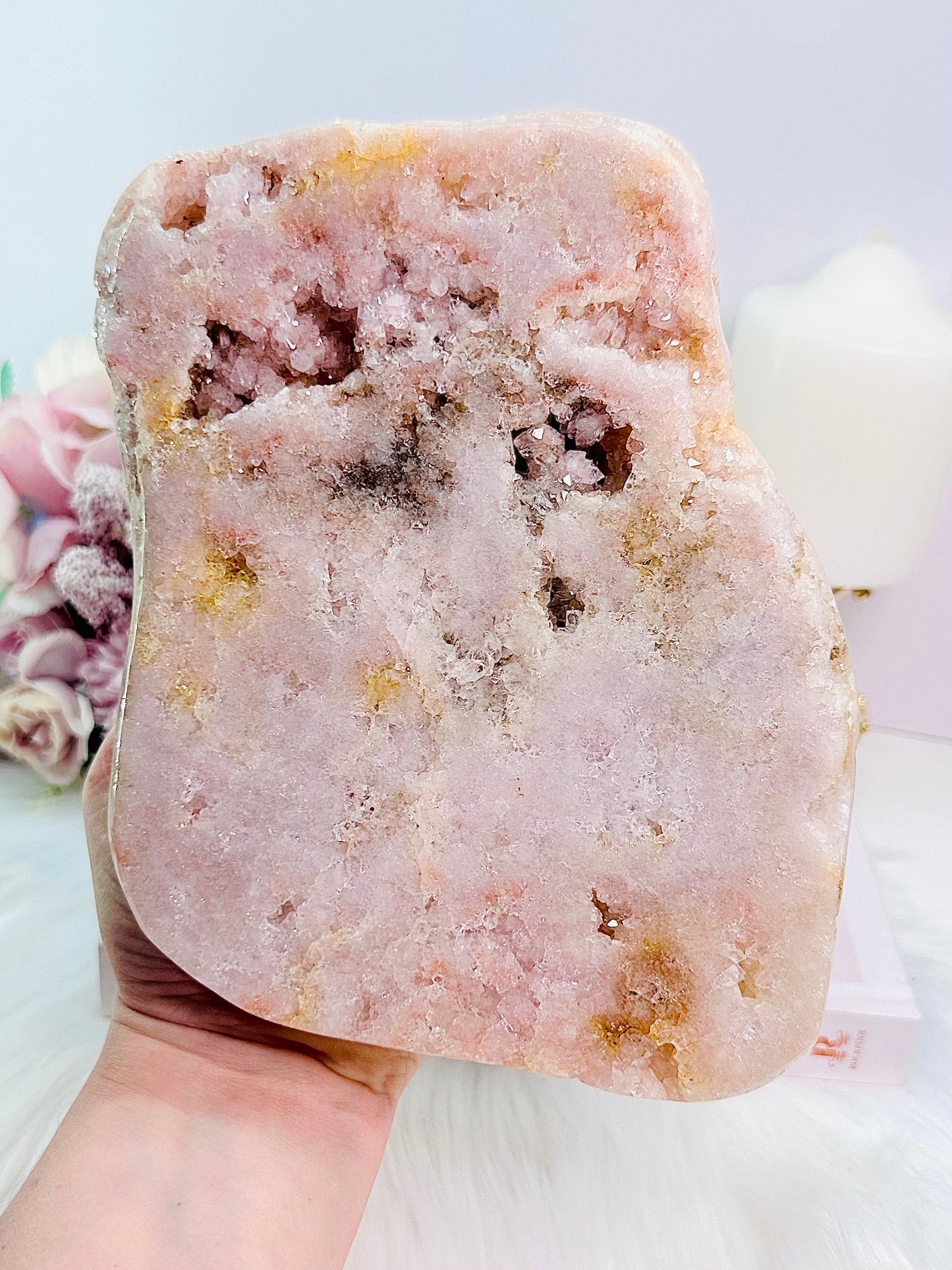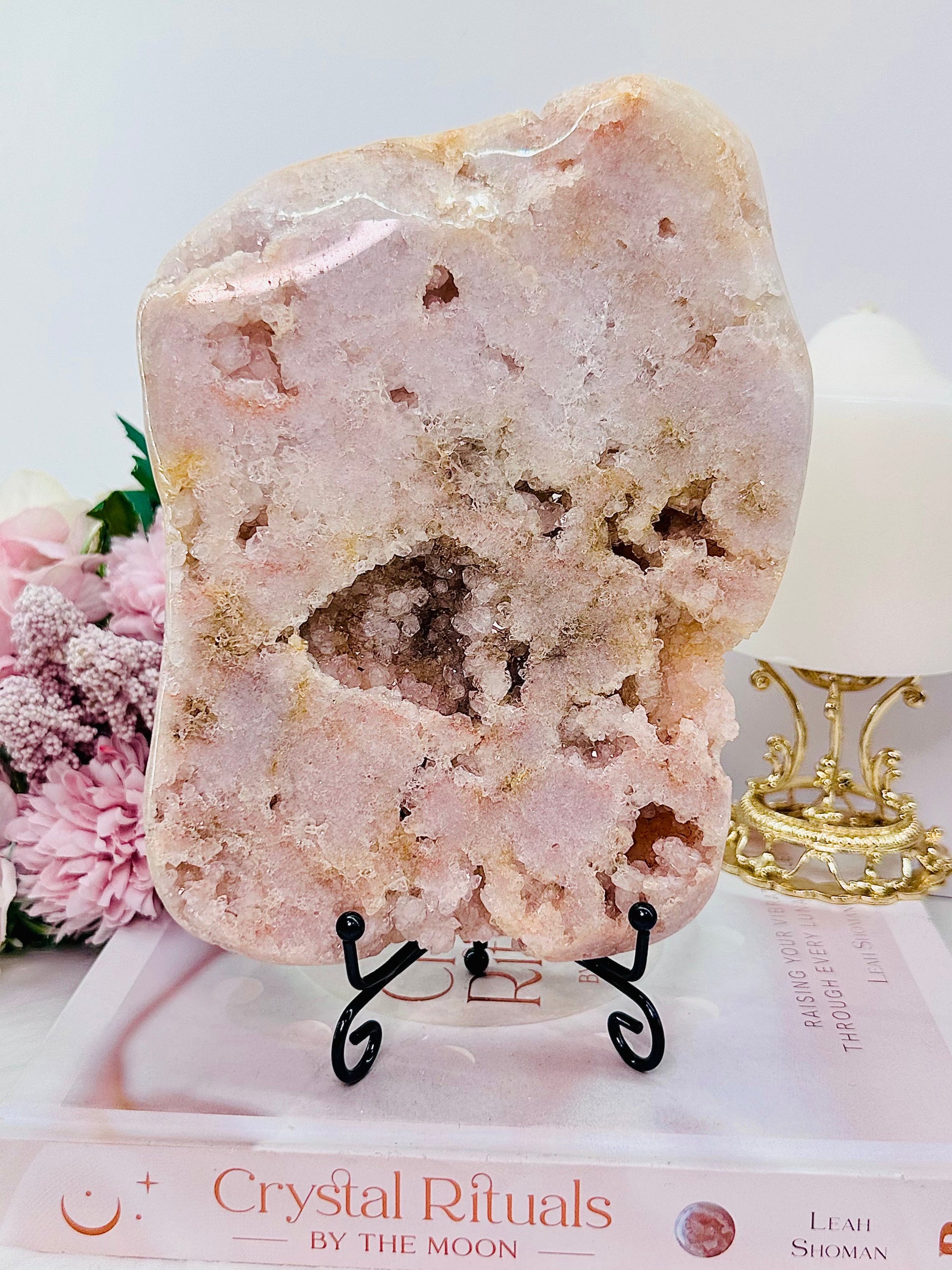 Huge 20cm Chunky 1.2KG Druzy Pink Amethyst Slab | Platter from Argentina On Stand