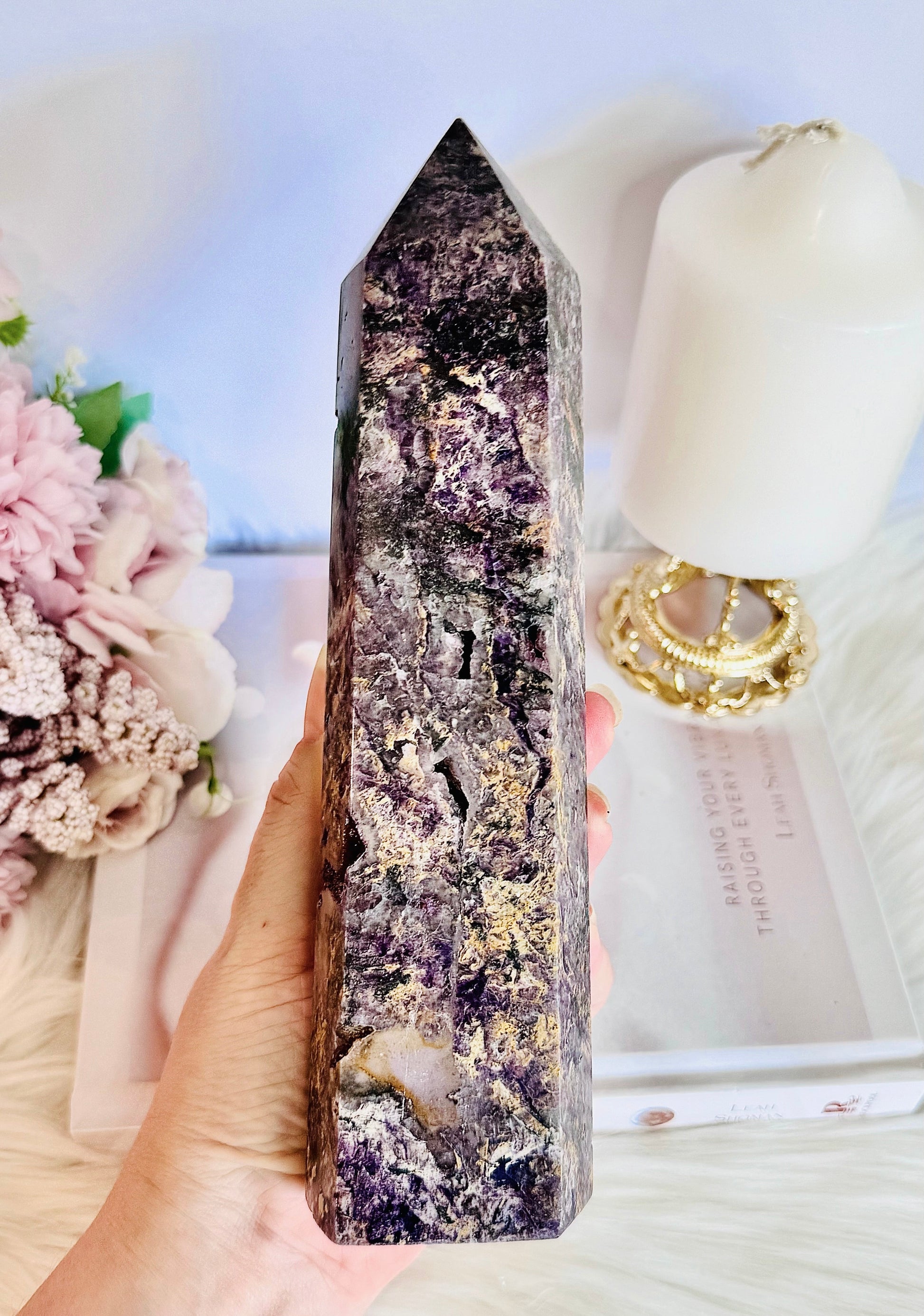 Huge Chunky 1.08KG 21.5cm Natural Charoite Carved Tower | Generator