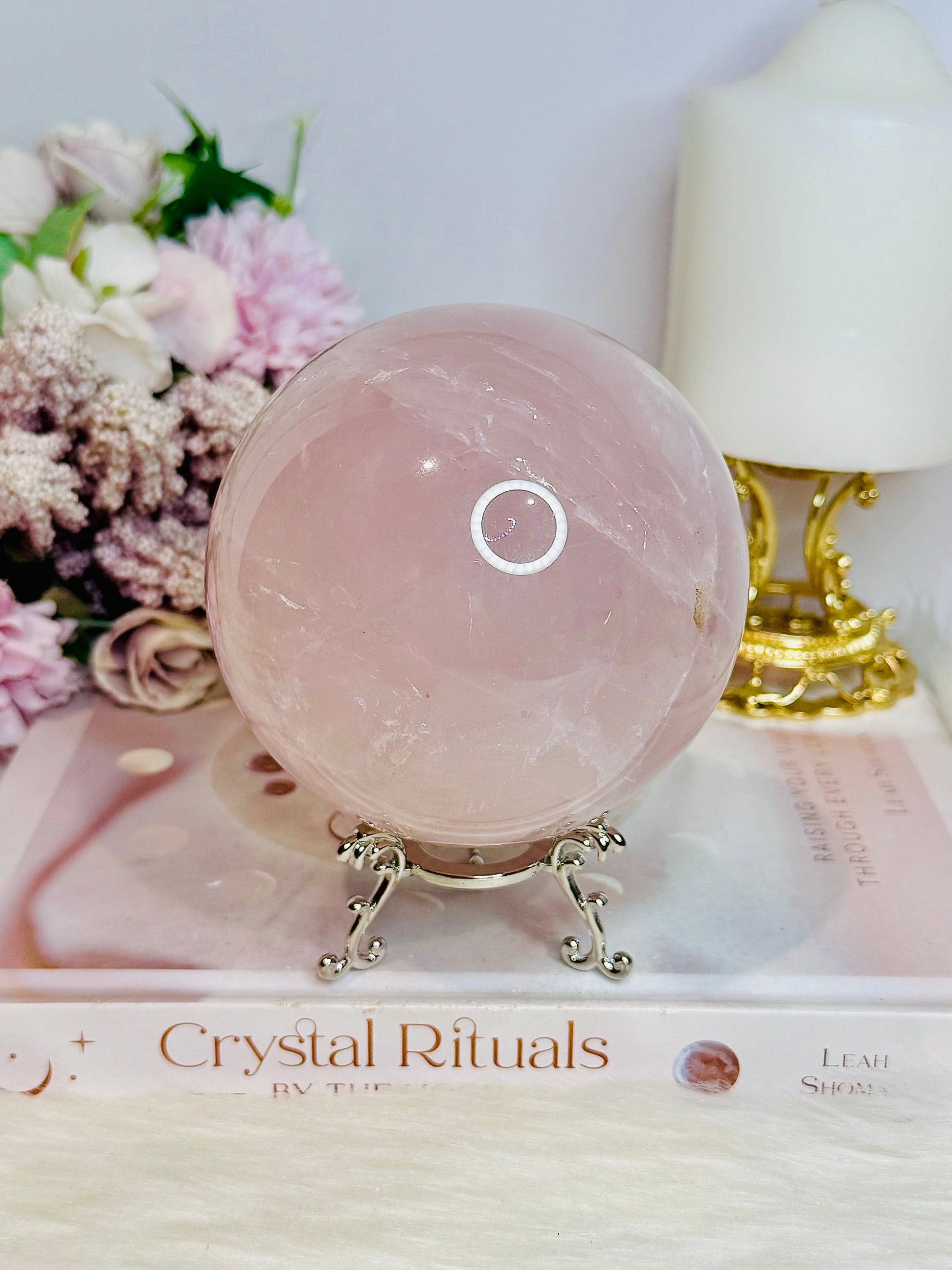 Huge Lavender Rose Quartz Sphere with Rainbows 1.06KG