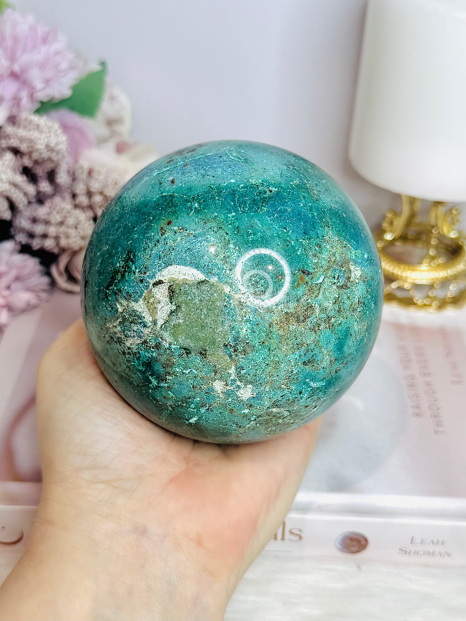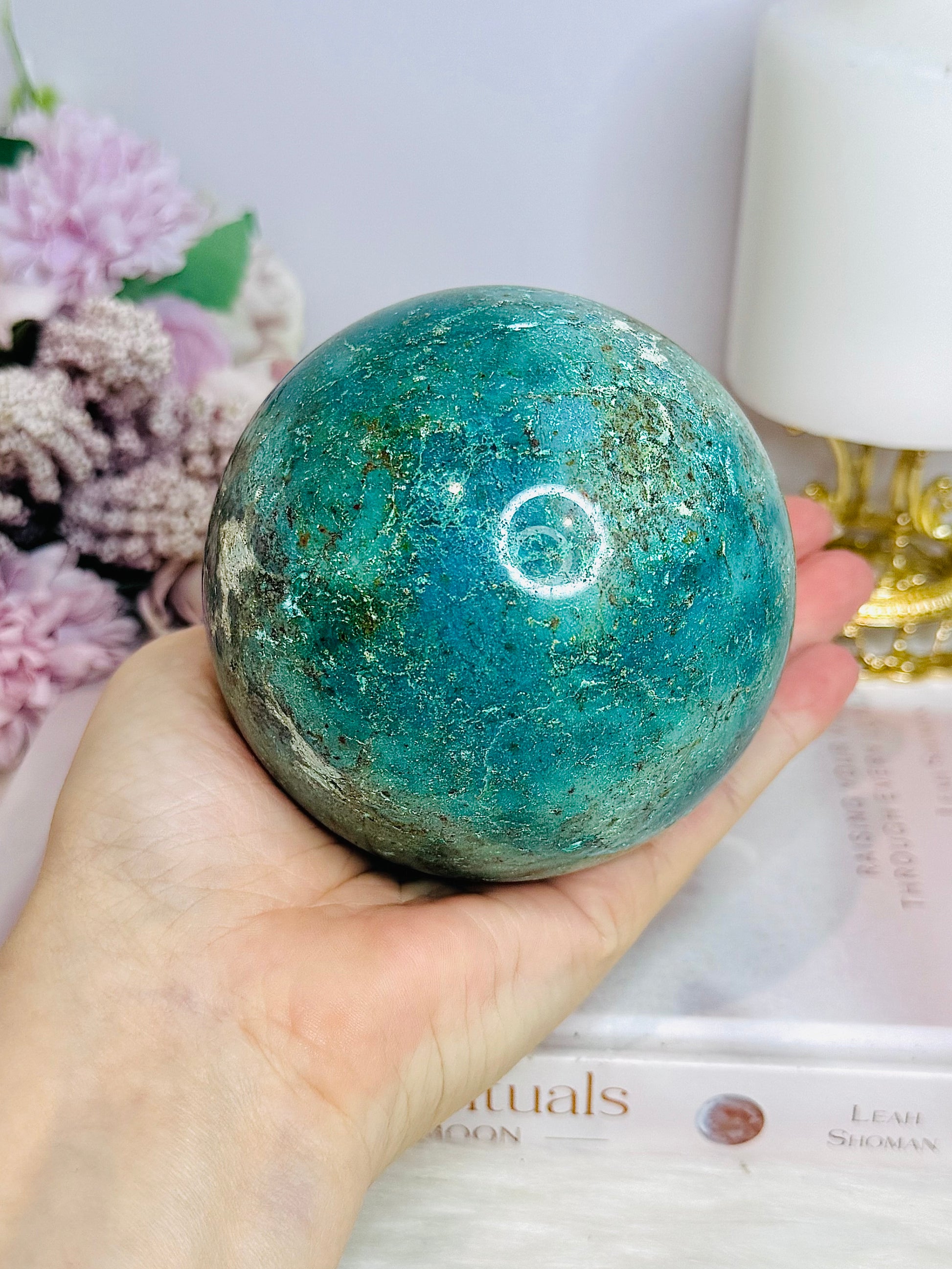 Huge Natural Chrysocolla Sphere On Stand 962g
