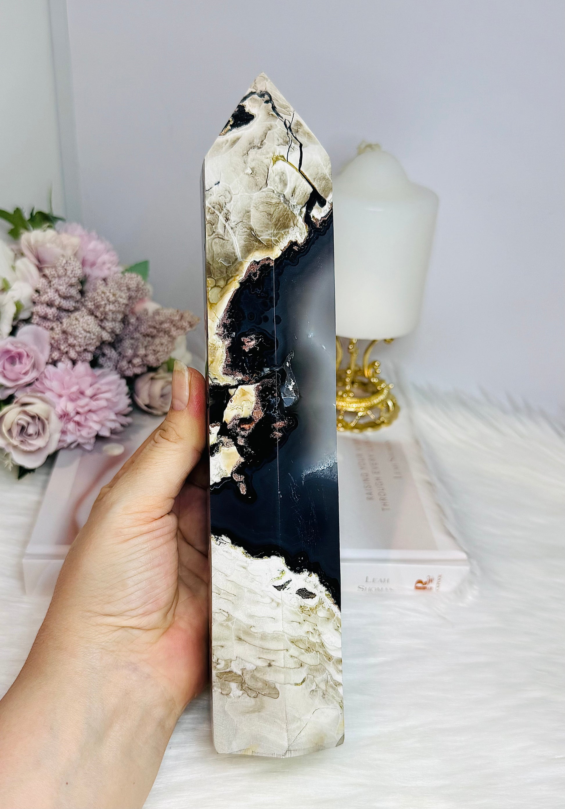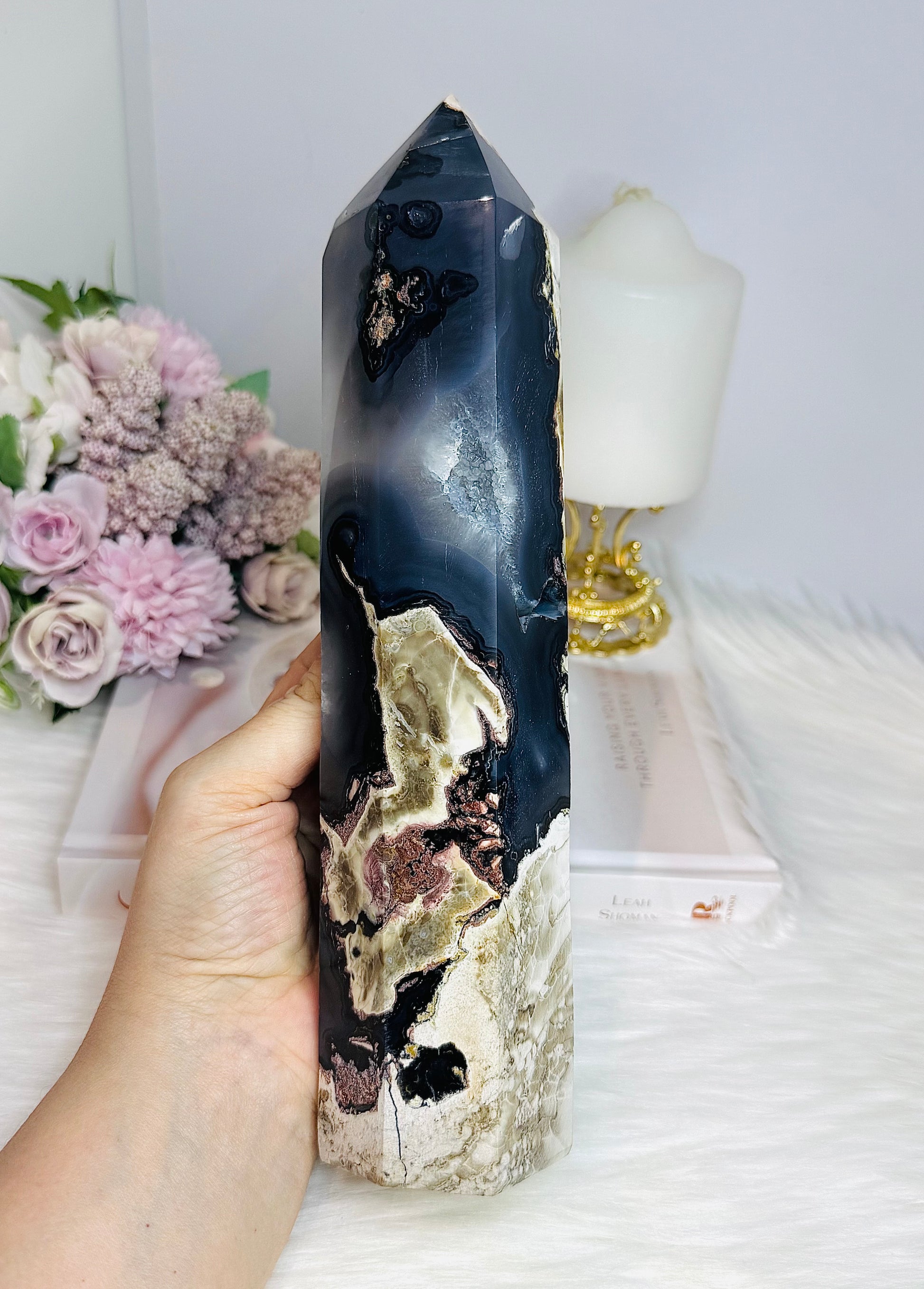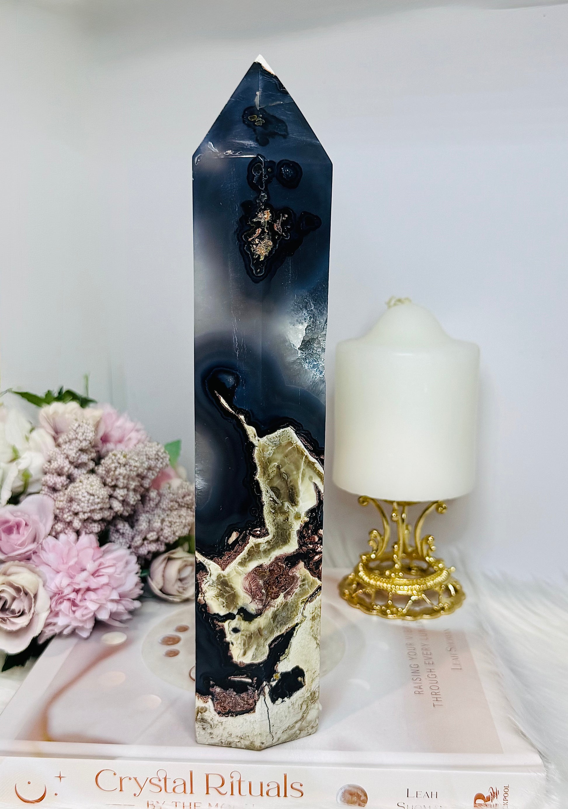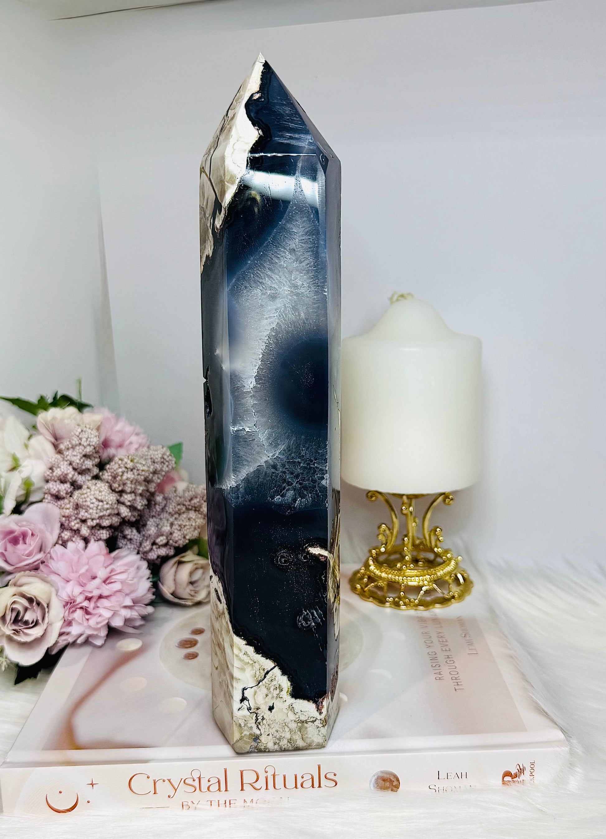 Huge Natural Volcano Agate Druzy Tower ~ UV Reactive 25cm 1.09KG