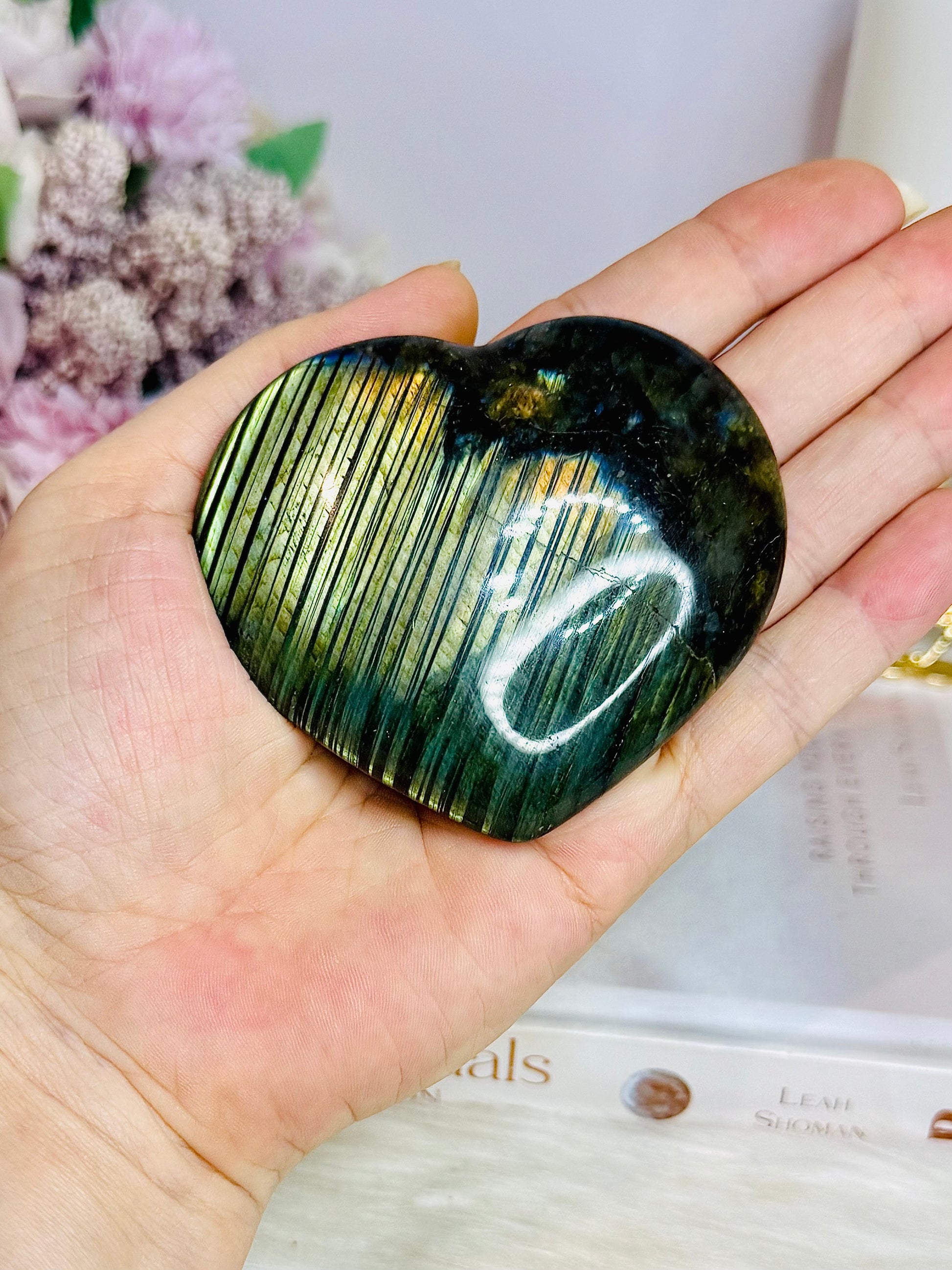 Manifestation ~ Labradorite crystal's hallmark is transformation and change. Viewed as a power stone, allowing one to see through illusions and determine the actual form of your dreams and goals. It is used in magic for manifestation, scrying, and protection - largely associated with the divine feminine.