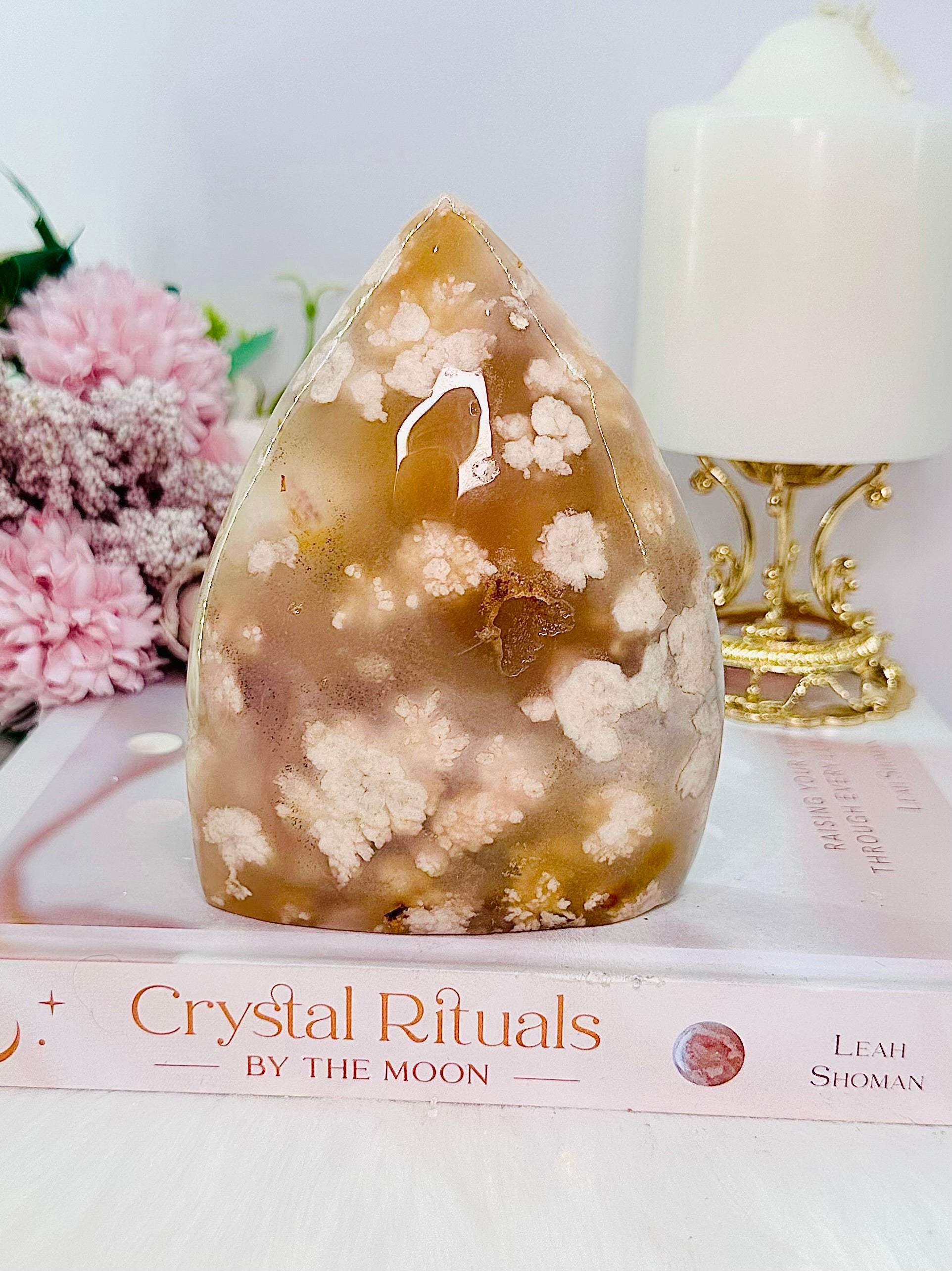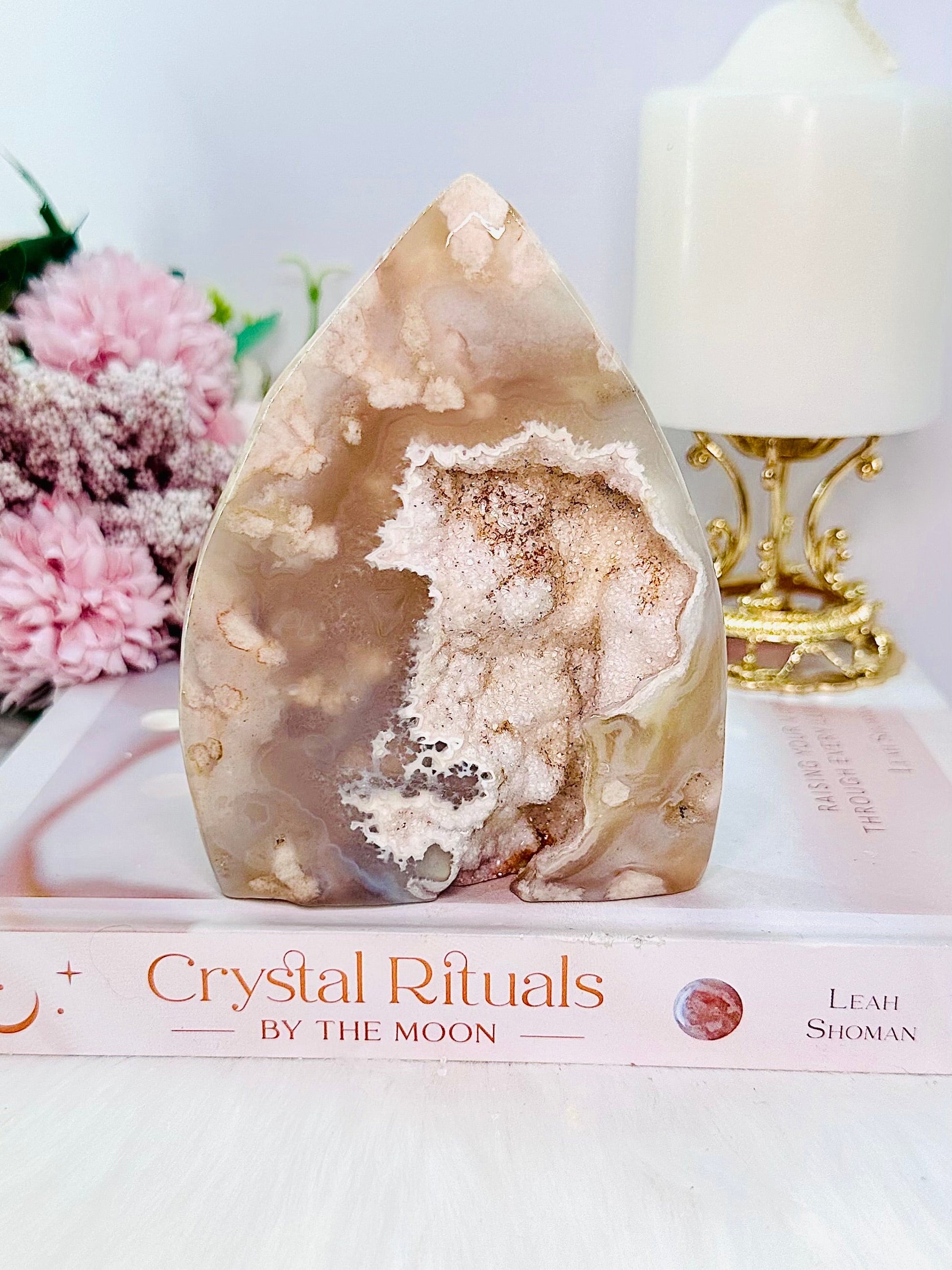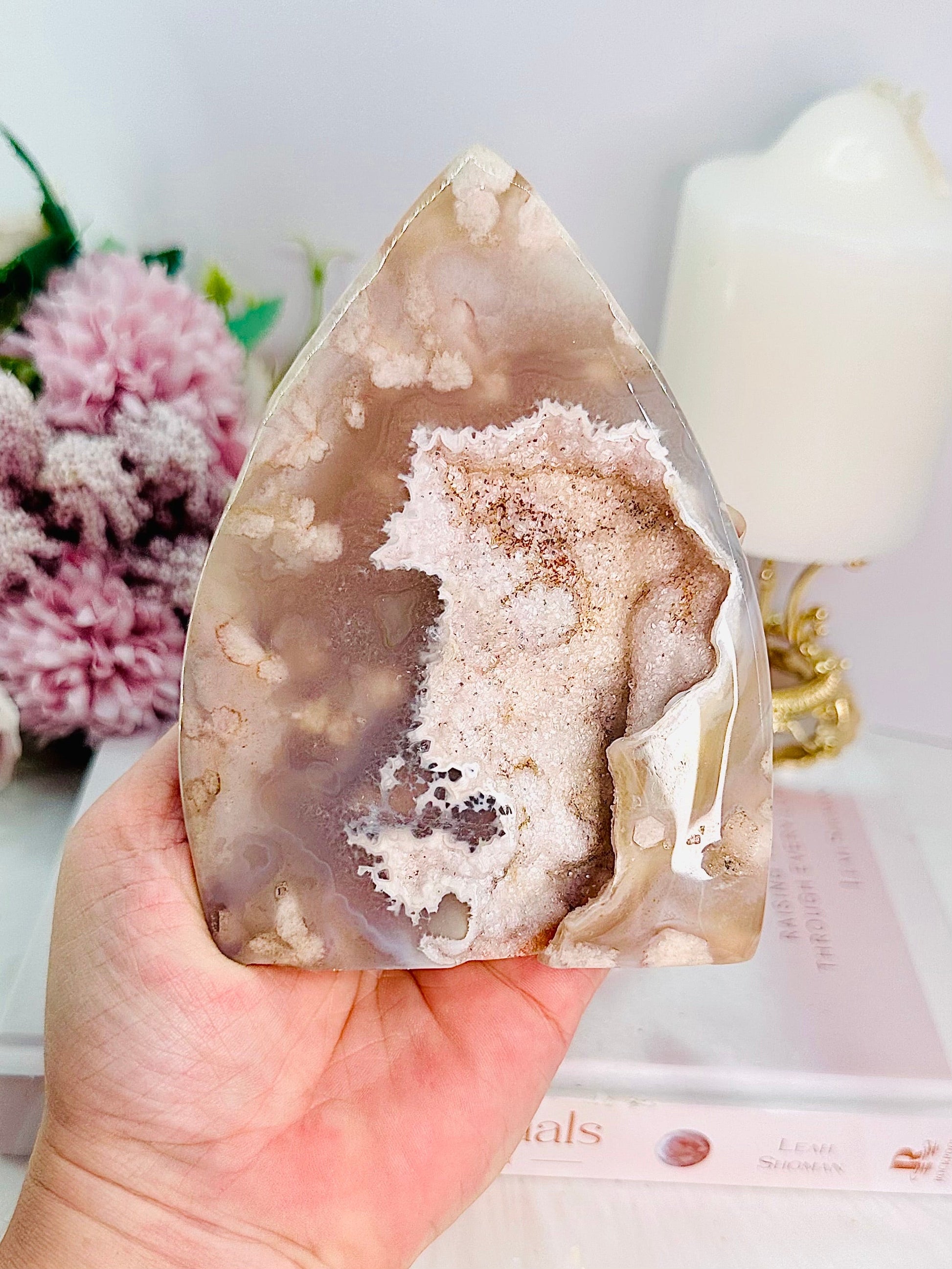 Large 13cm 415gram Druzy Flower Agate Freeform | Flame Carving