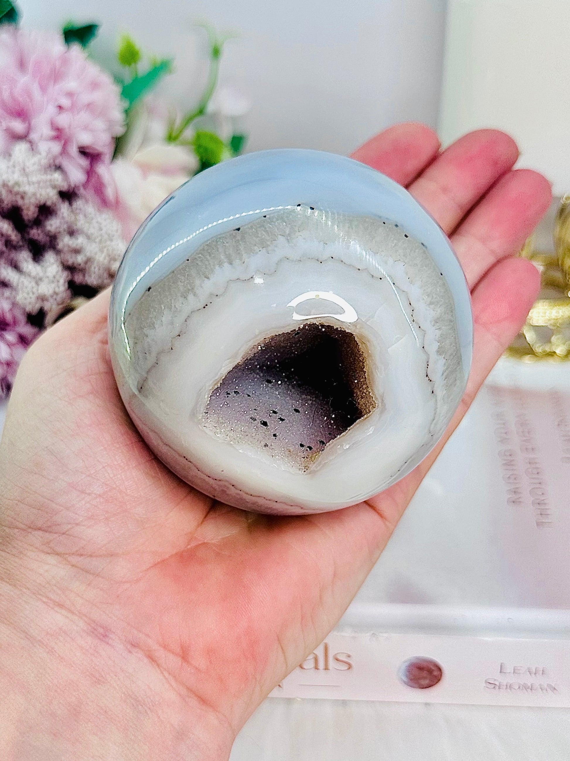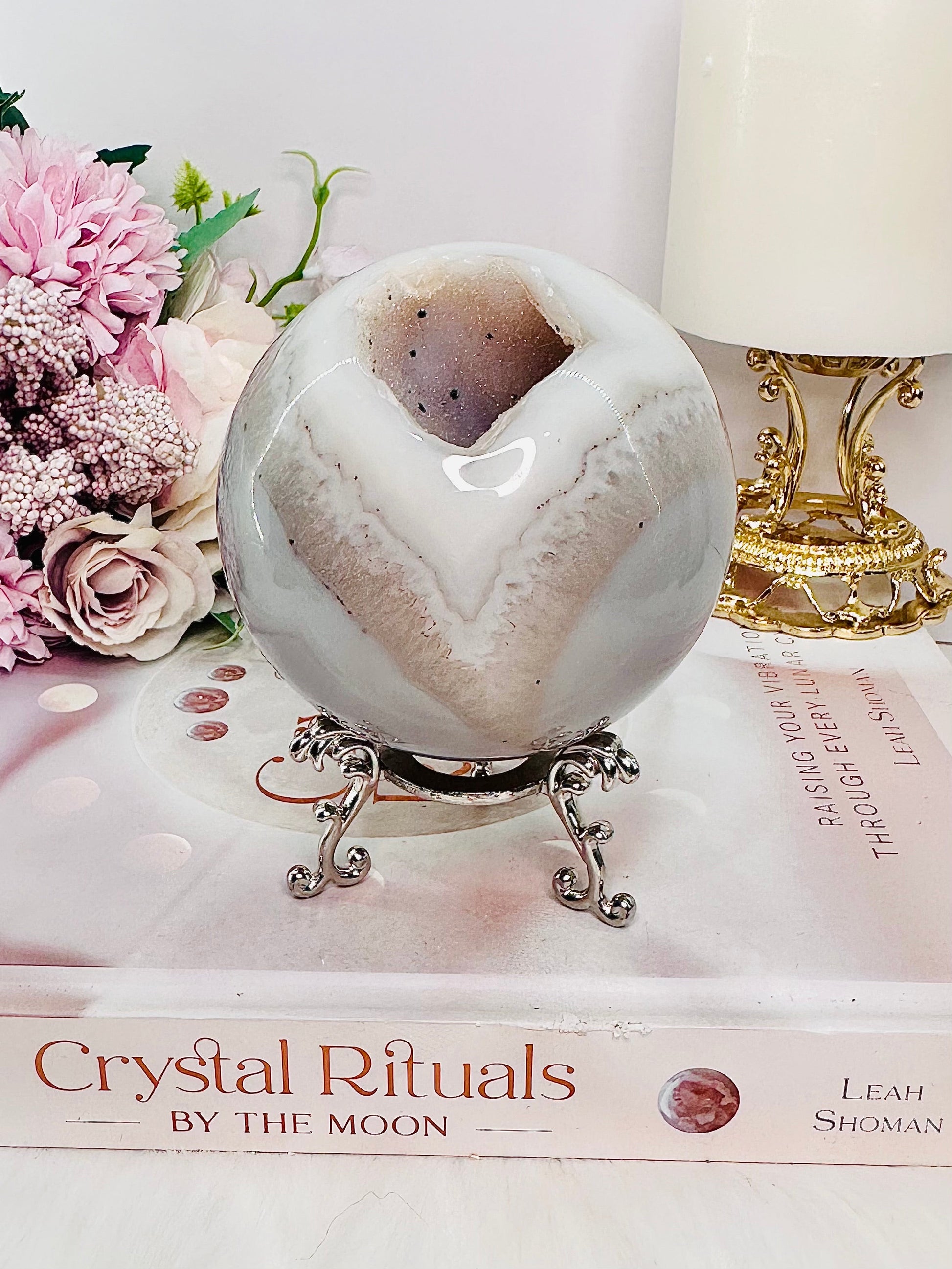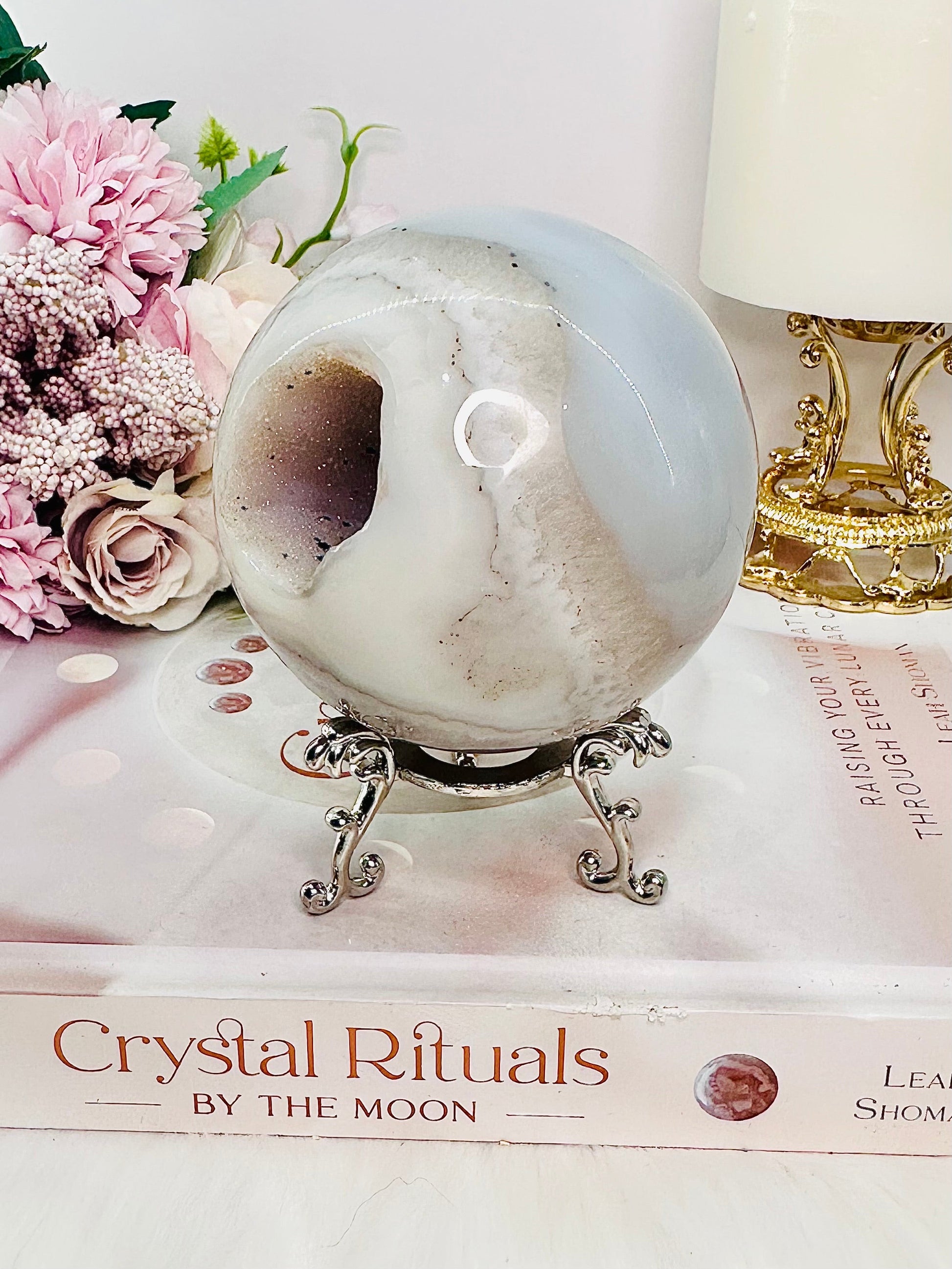 Large 529gram Sugar Druzy Agate Sphere on Stand