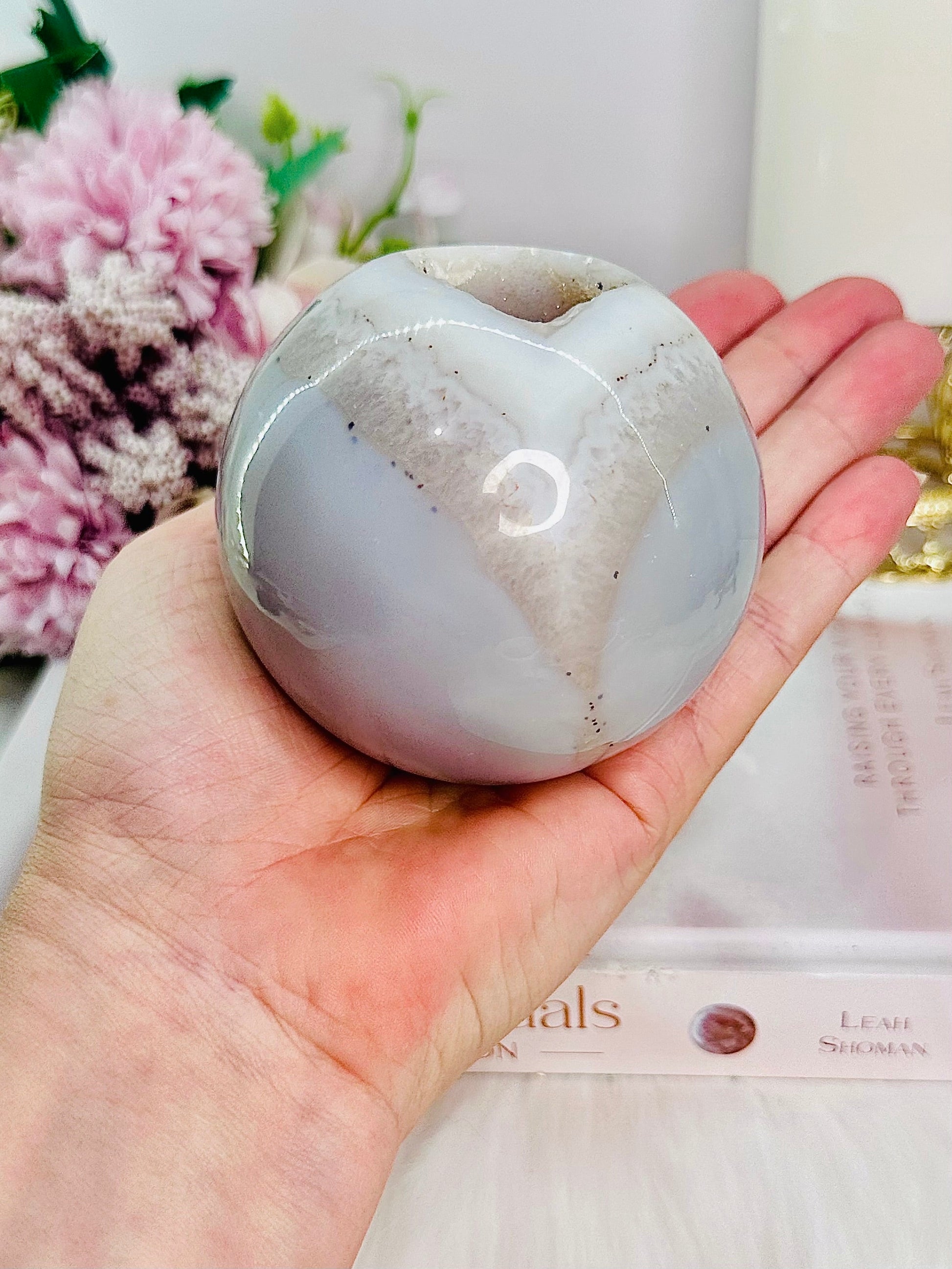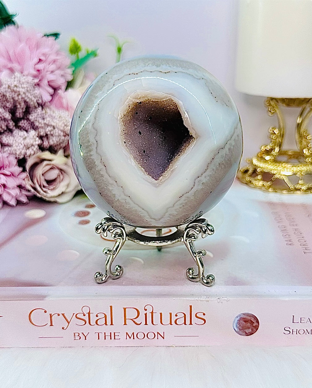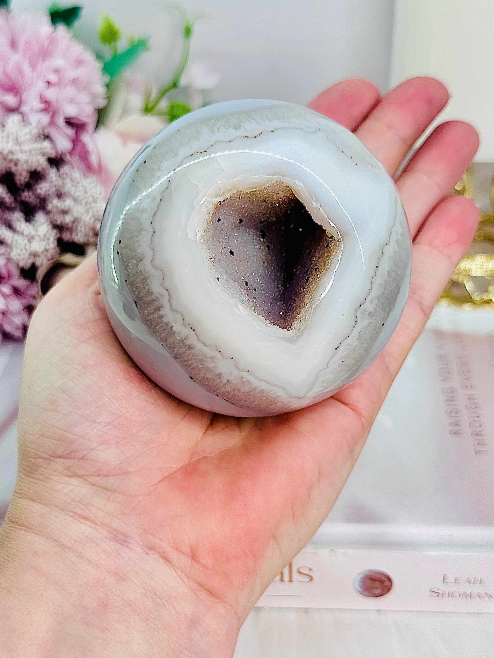 Large 529gram Sugar Druzy Agate Sphere on Stand