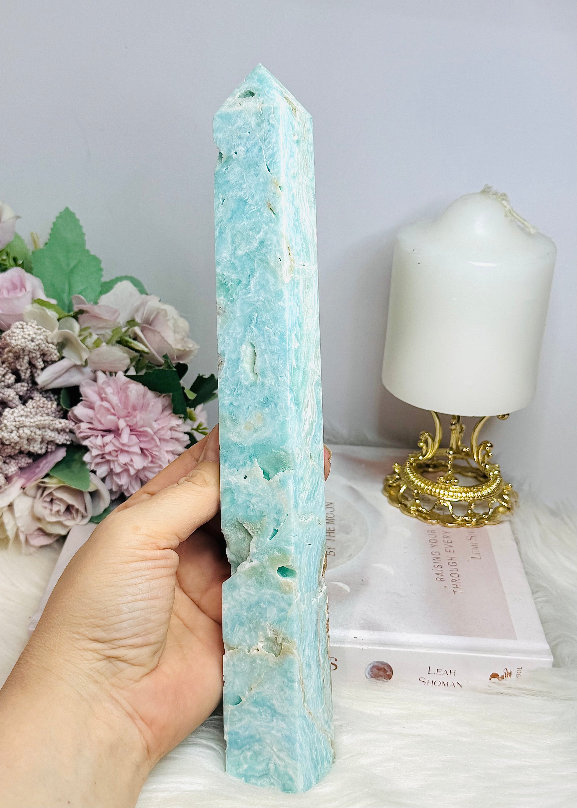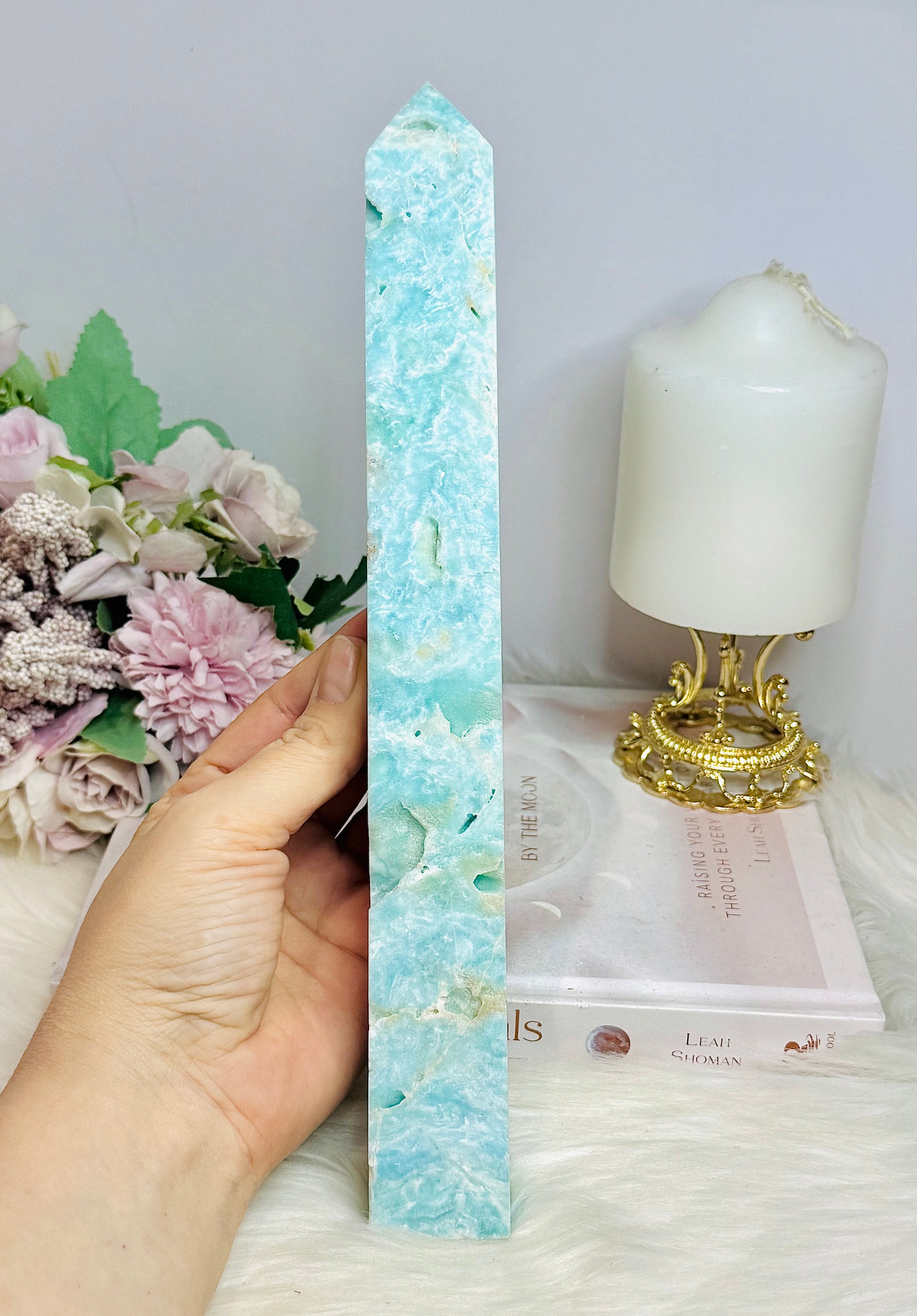 Large Blue Hemimorphite Druzy Raw Tower 26.5cm