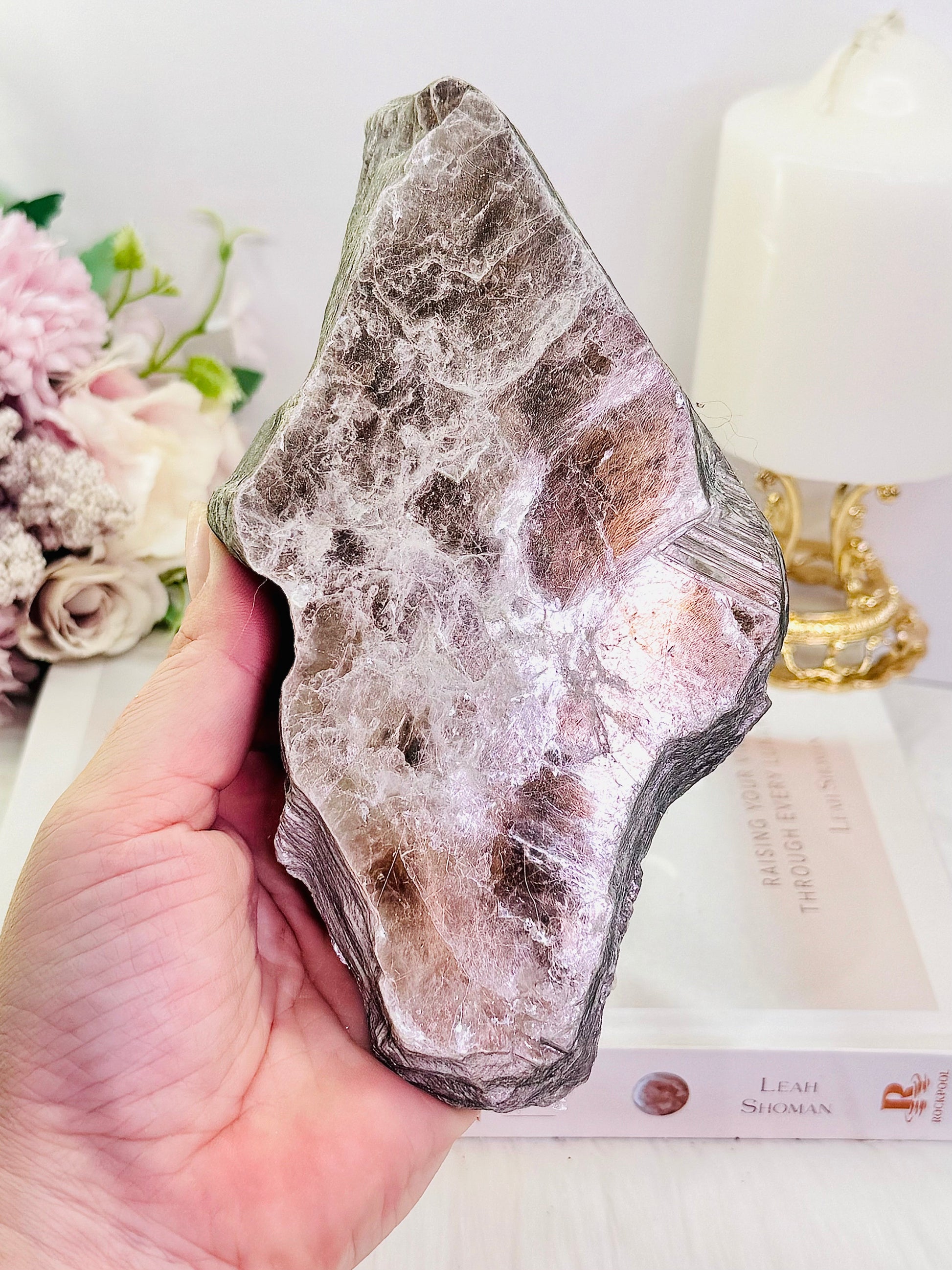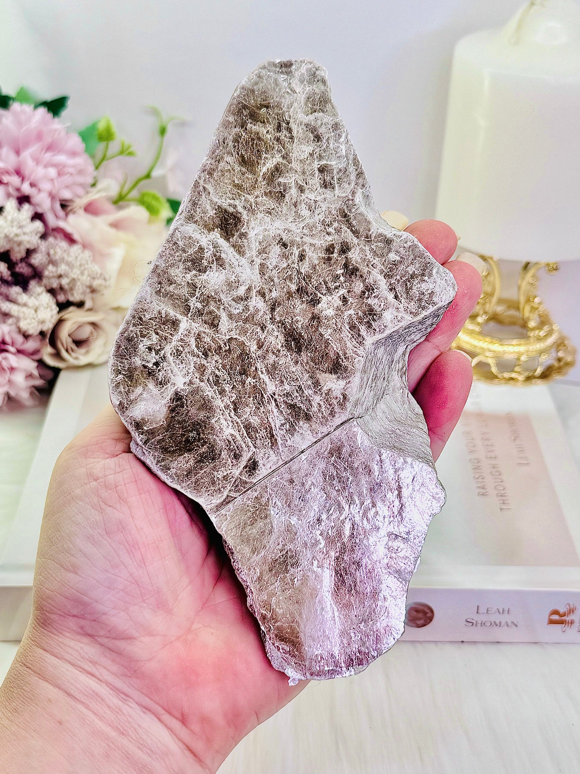 Large Chunky 17cm Shiny Purple Mica Natural Slab On Stand