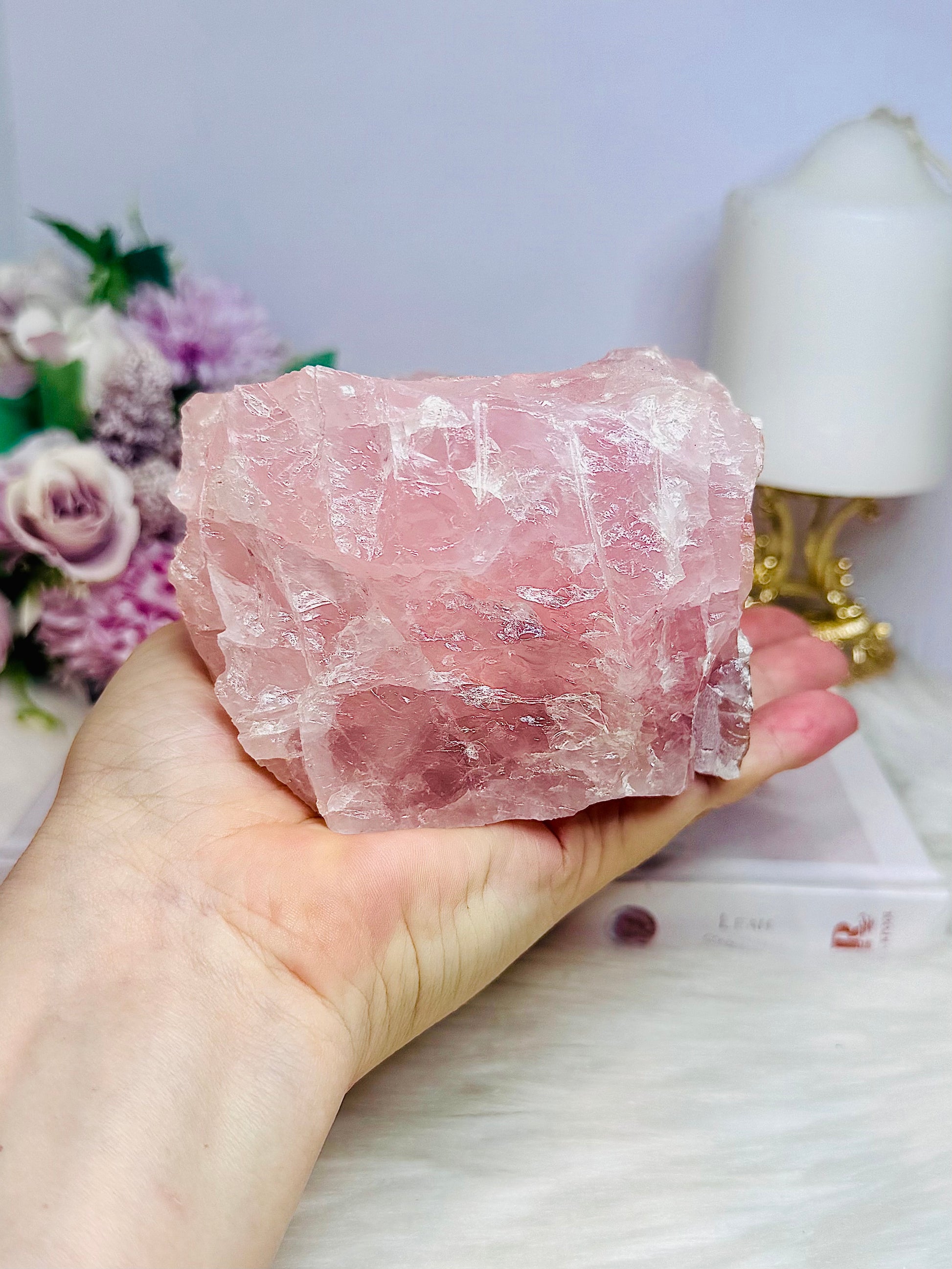 Metaphysically ~ Opening the Heart: Rose quartz releases emotional blockages, promoting compassion, love, and creativity in the heart. Self-Love and Acceptance: Rose Quartz encourages self-love, self-acceptance, and forgiveness, helping individuals cultivate positive relationships with themselves and others.