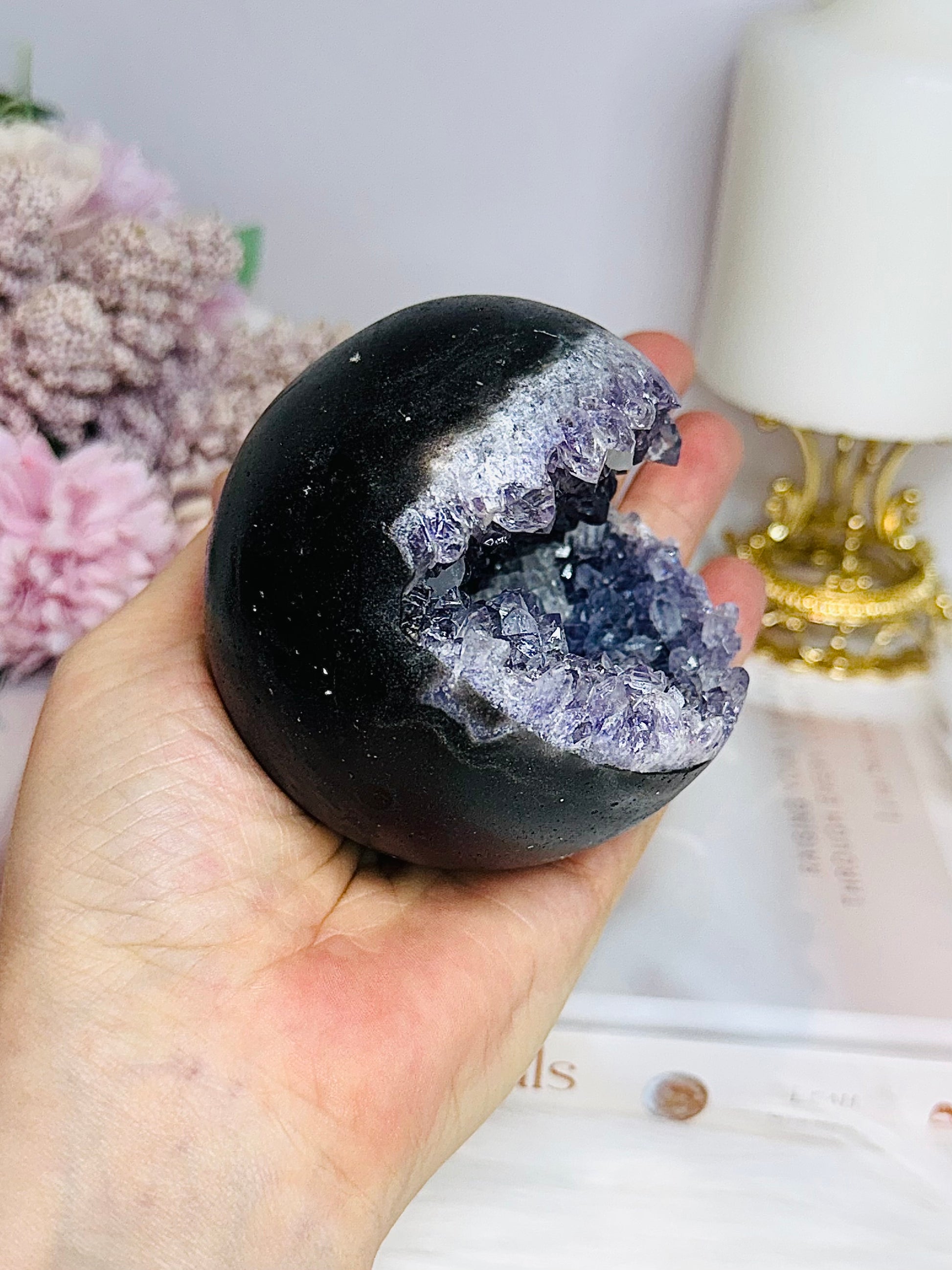Spiritually ~ The magical properties of the amethyst gemstone/ crystal bring peace and calmness. It can promote intuition and creativity. Amethyst is also known for its ability to balance one's chakra energy. Thus, allowing someone to feel more grounded in their life while still exploring new ideas or things they find interesting. The third eye is considered to be a source of power and wisdom. Crystal practitioners believe a person can use amethysts to enhance or sharpen spiritual visions and enlightenment.