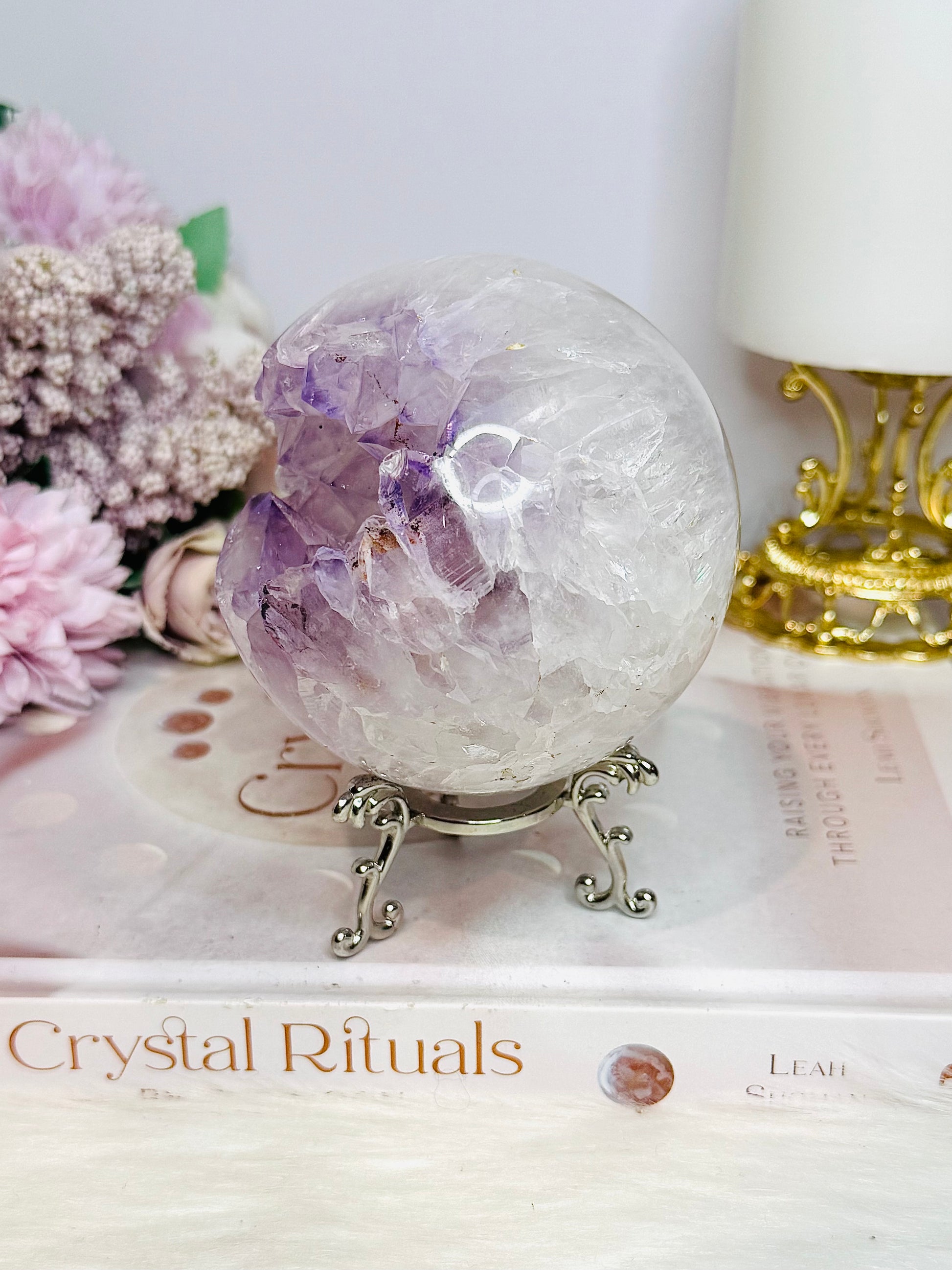 Large Druzy Amethyst Sphere on Stand 618g