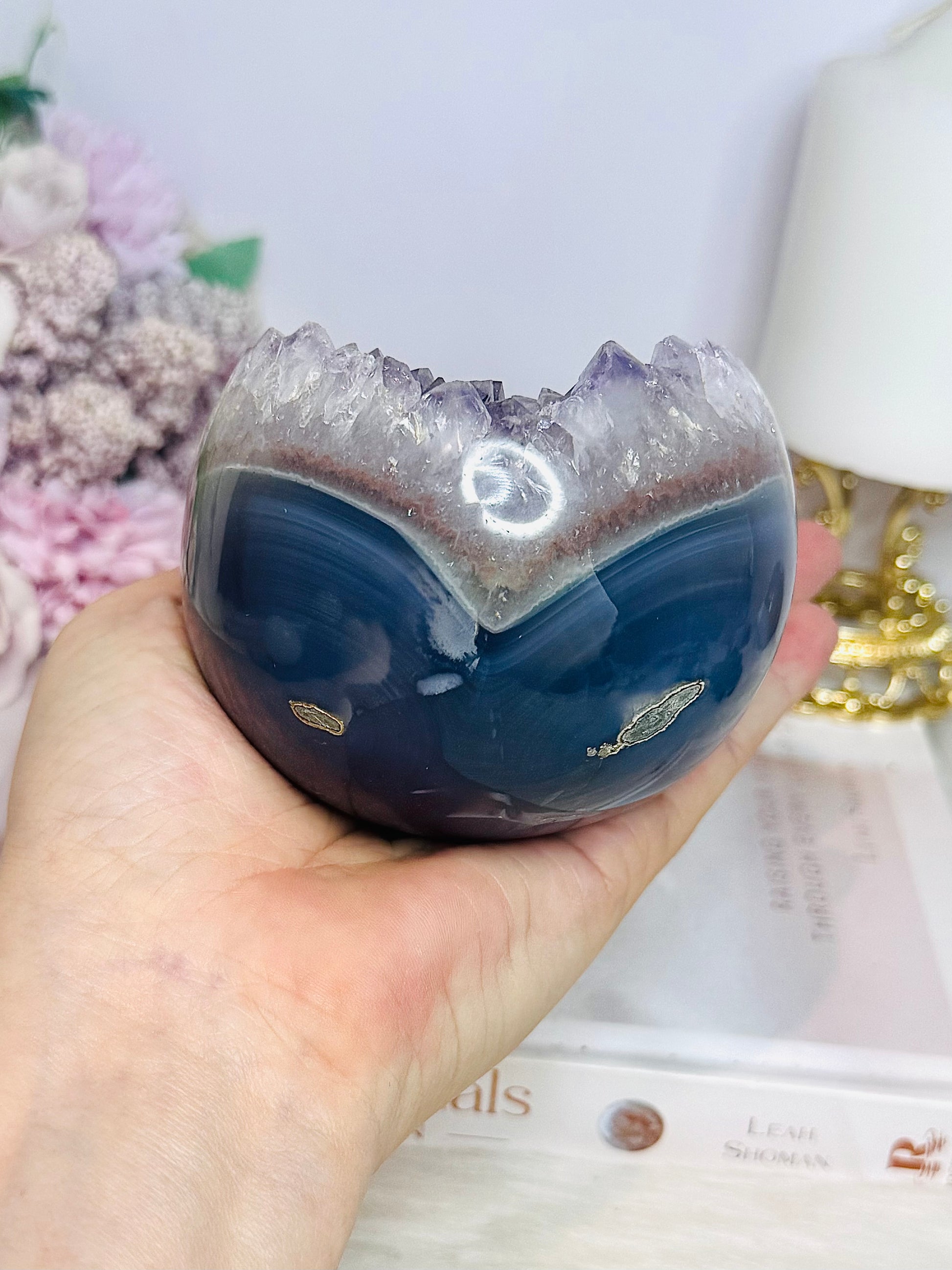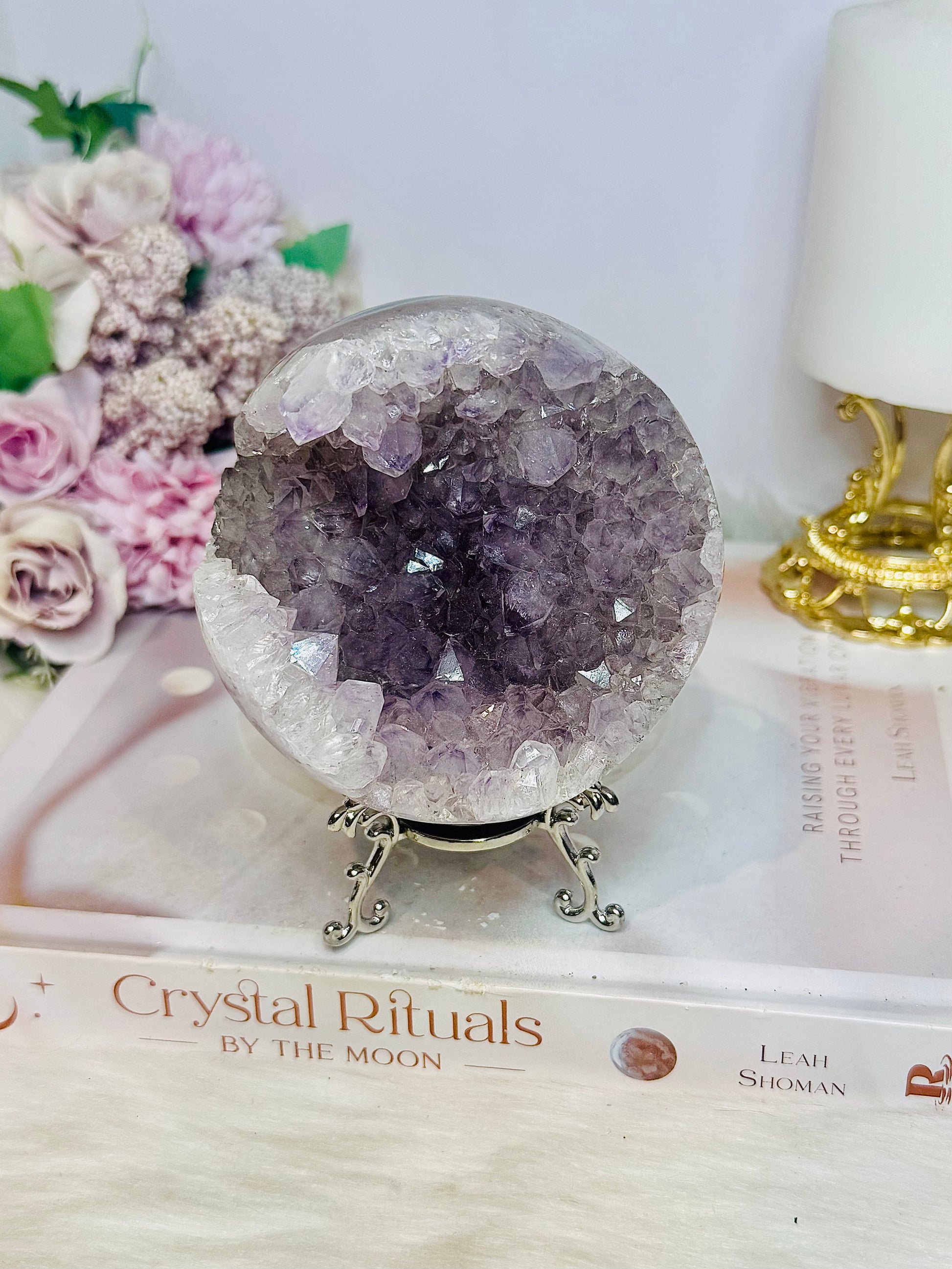 Large Druzy Amethyst X Agate Sphere On Stand 620g