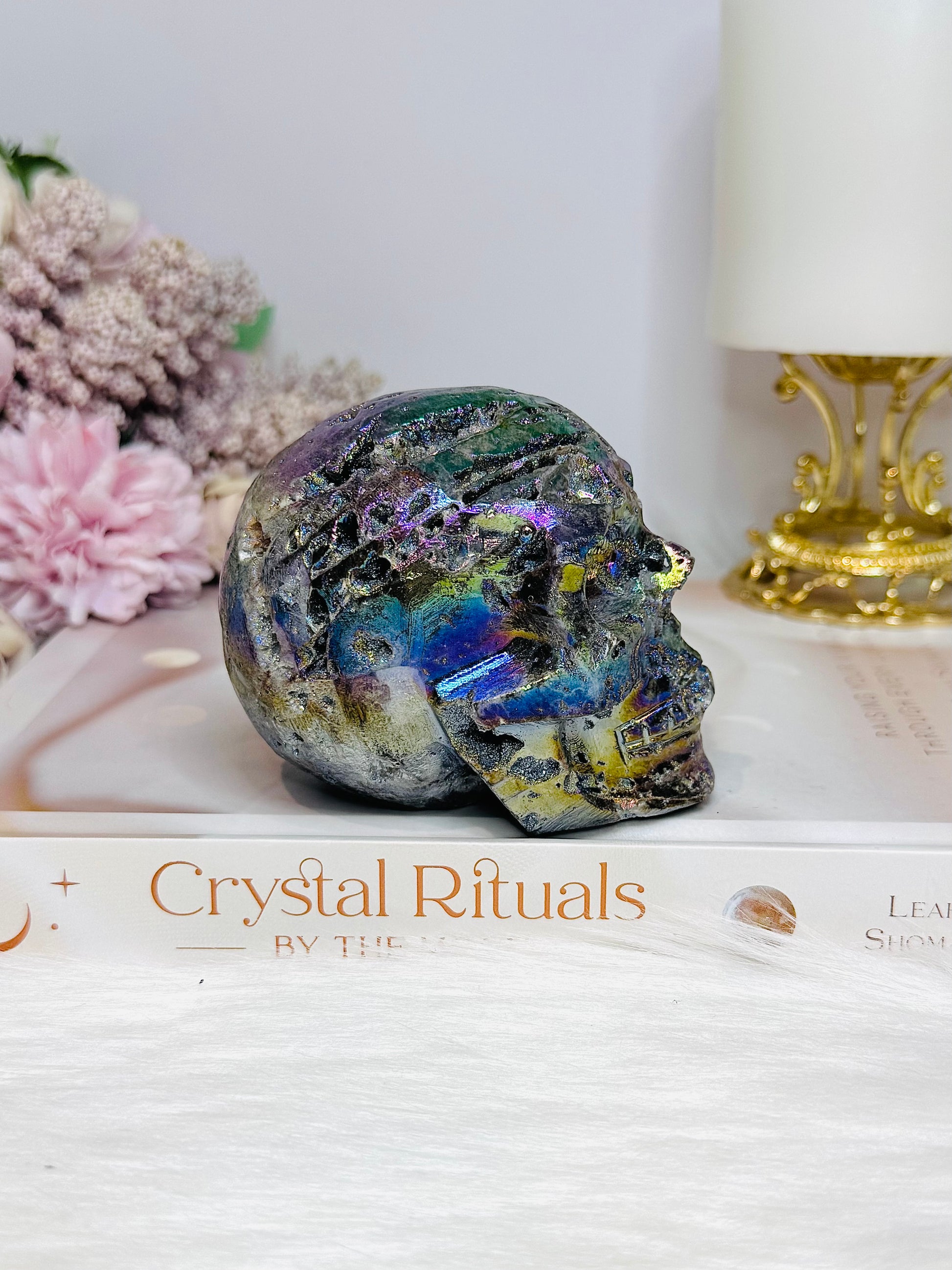 Large Druzy Aura Sphalerite Carved Skull 8cm 425g