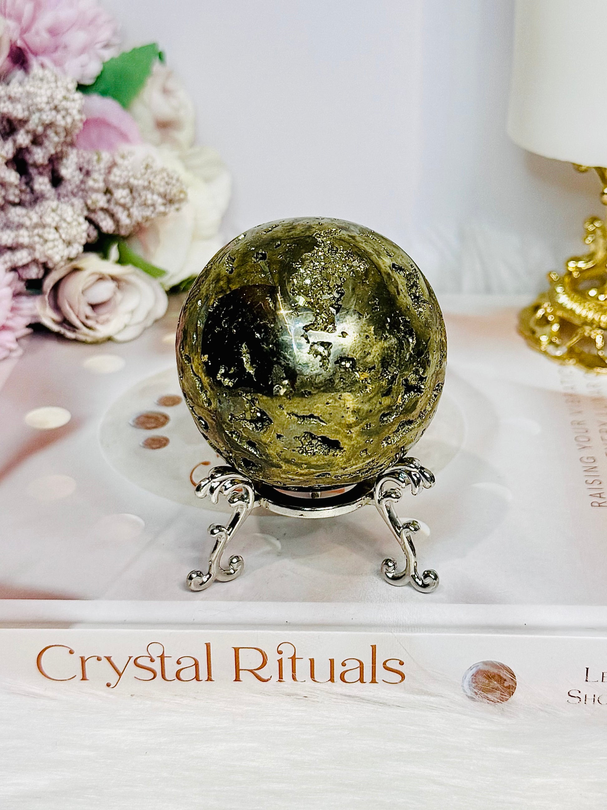 Large Druzy Pyrite Sphere on Stand 426g