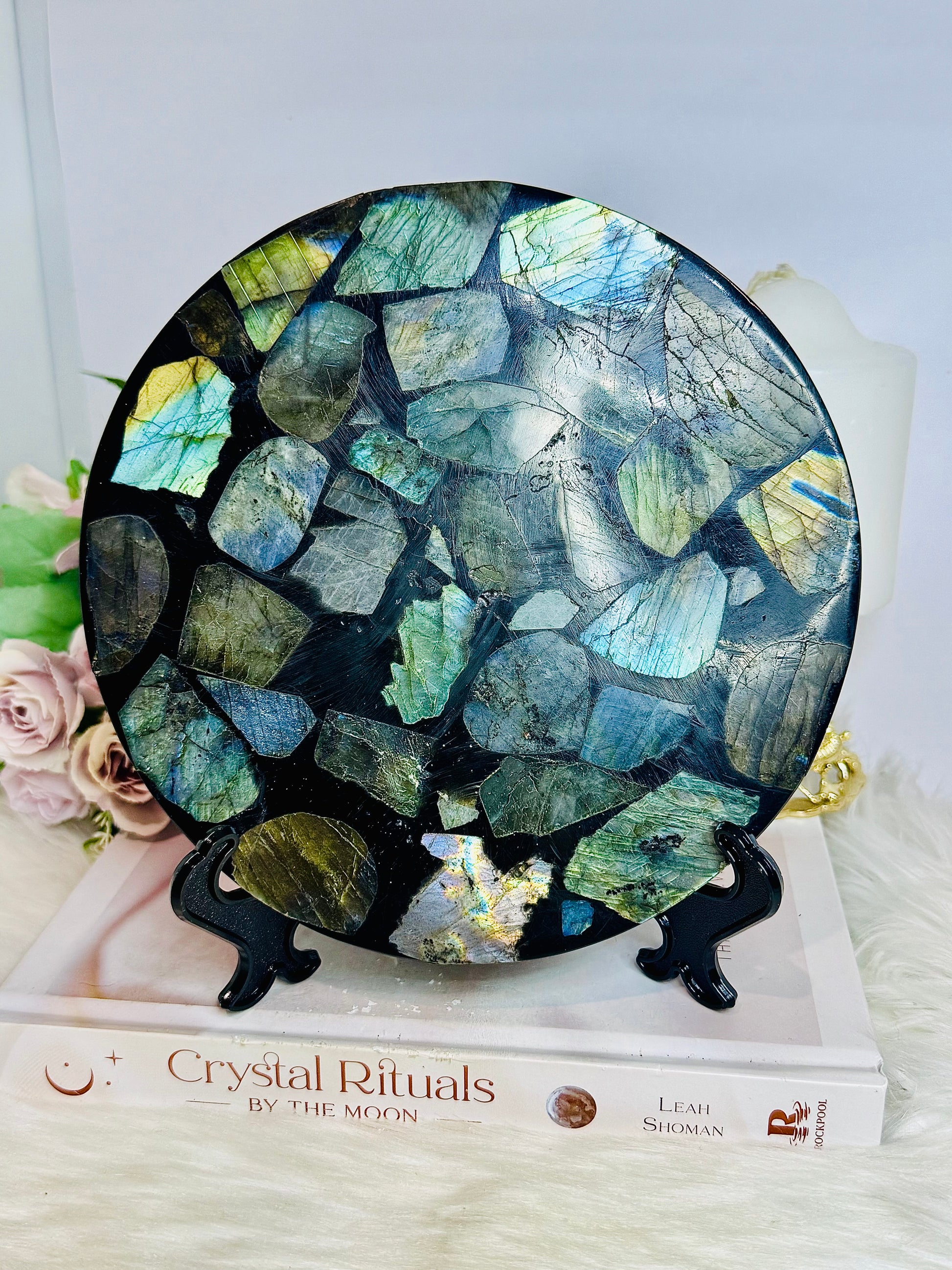 Large Labradorite Plate on Stand 440g 15cm