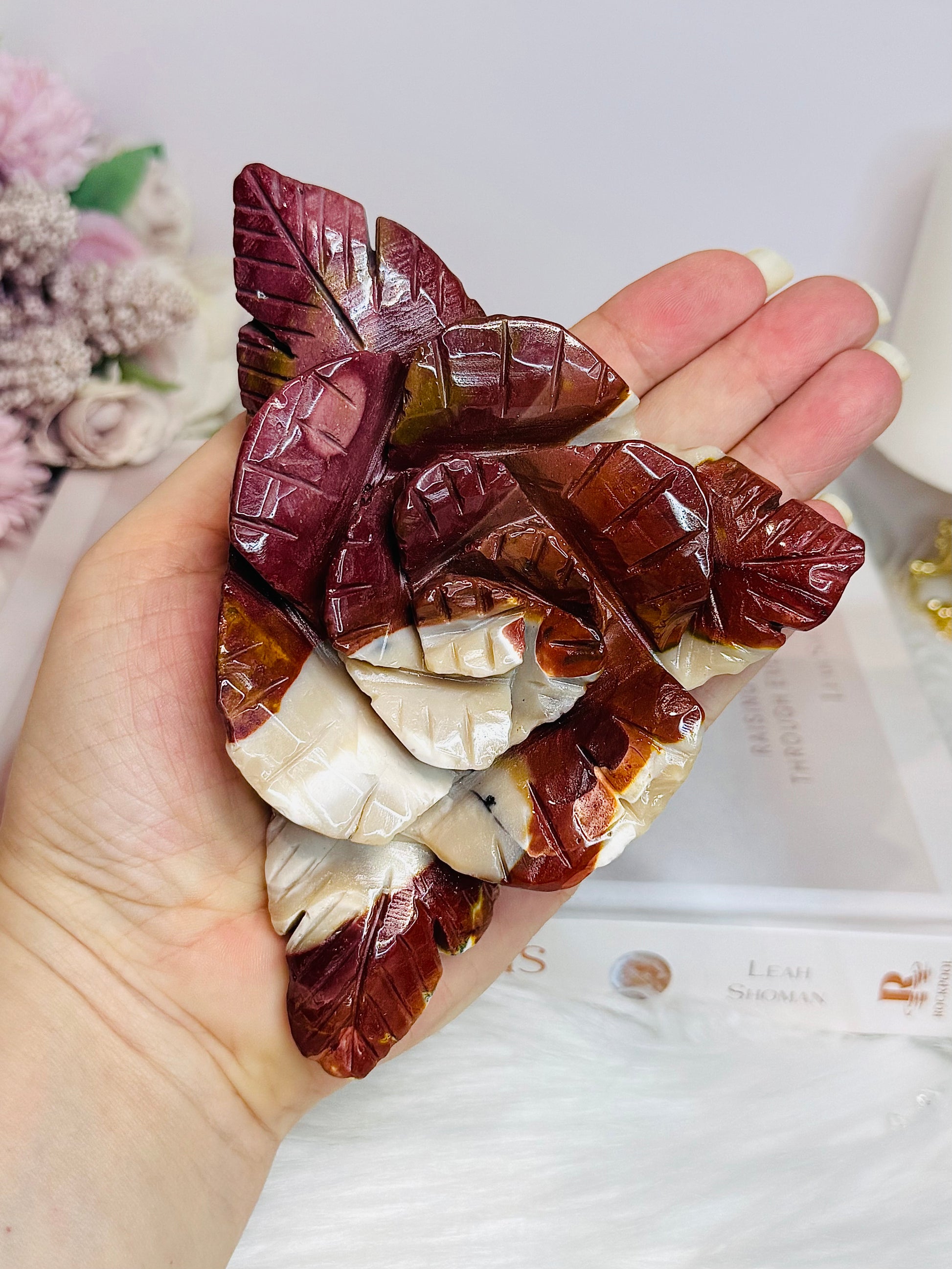 Large Mookaite Jasper Carved Flower on Stand 18cm 428g