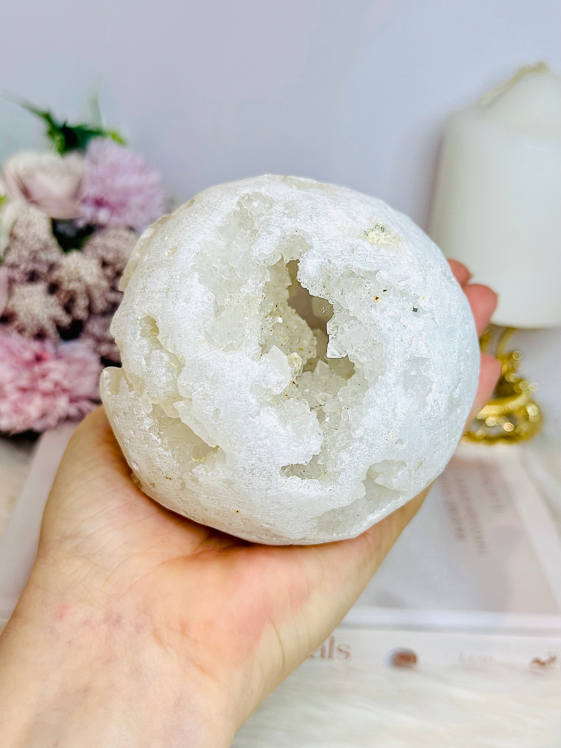 Large Moroccan Quartz Geode Druzy Sphere On Stand 734g