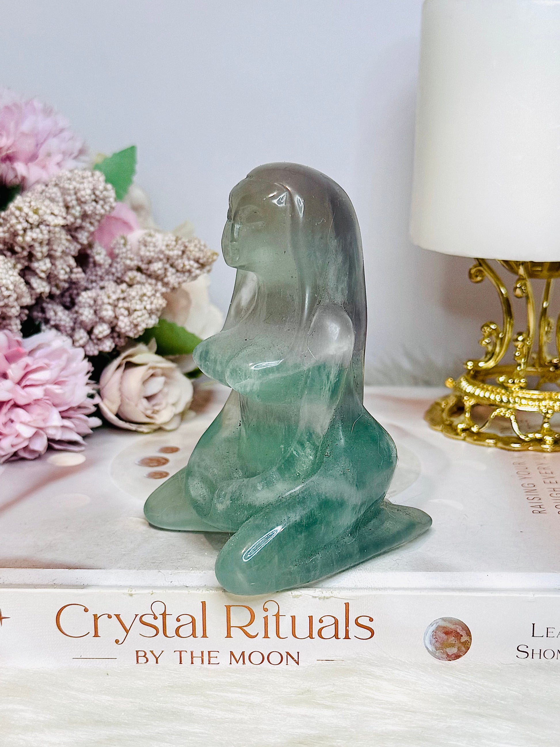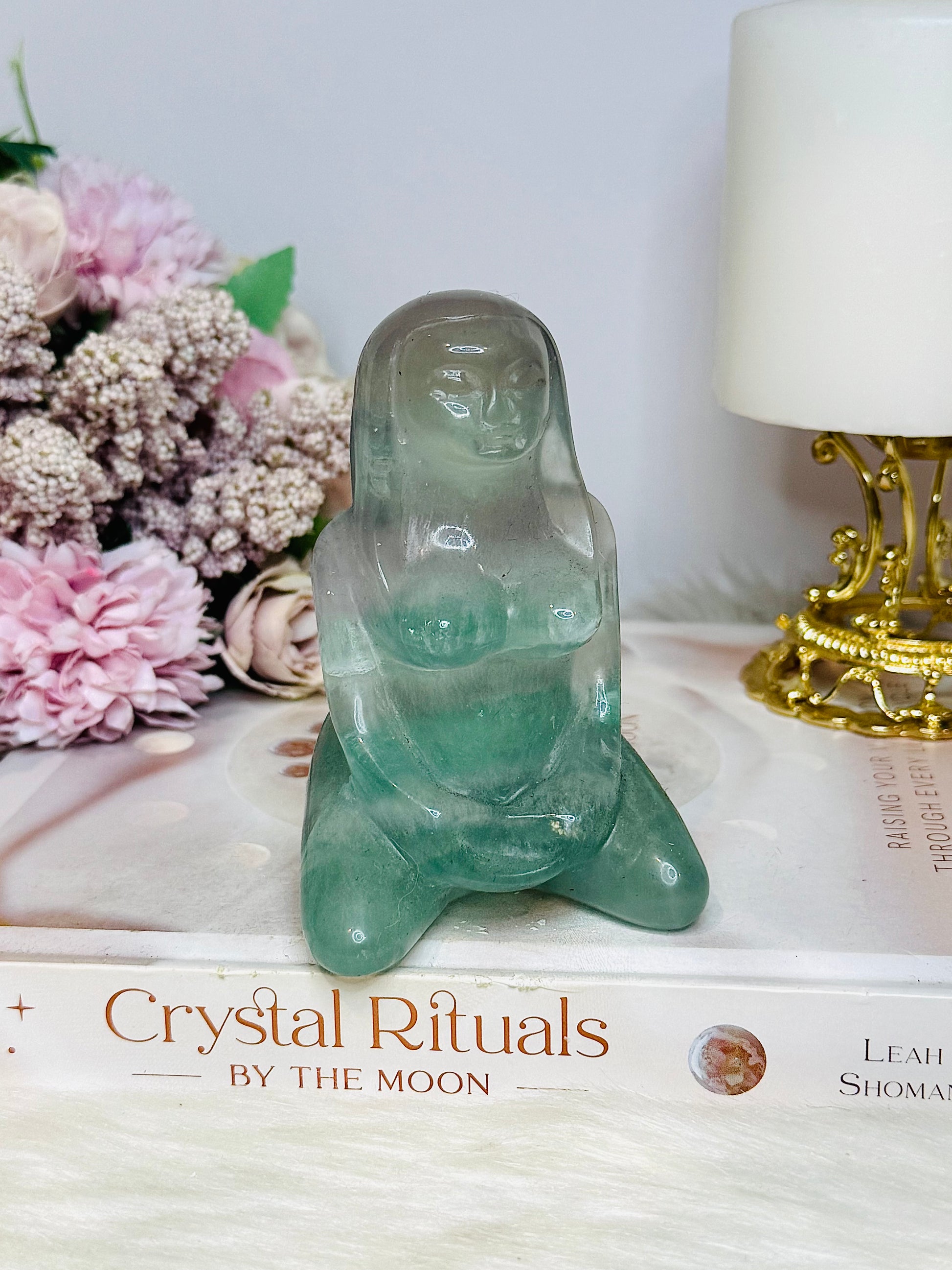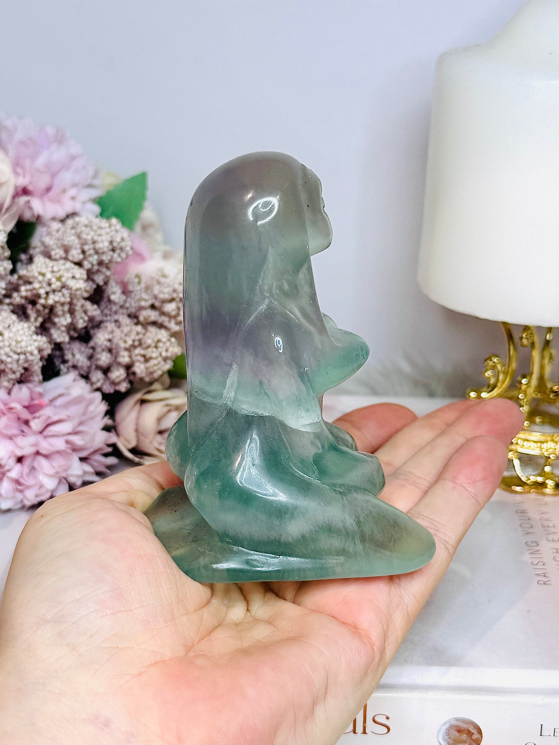 Large Mother Earth Fluorite Carving (chip on back foot) 10cm 396g