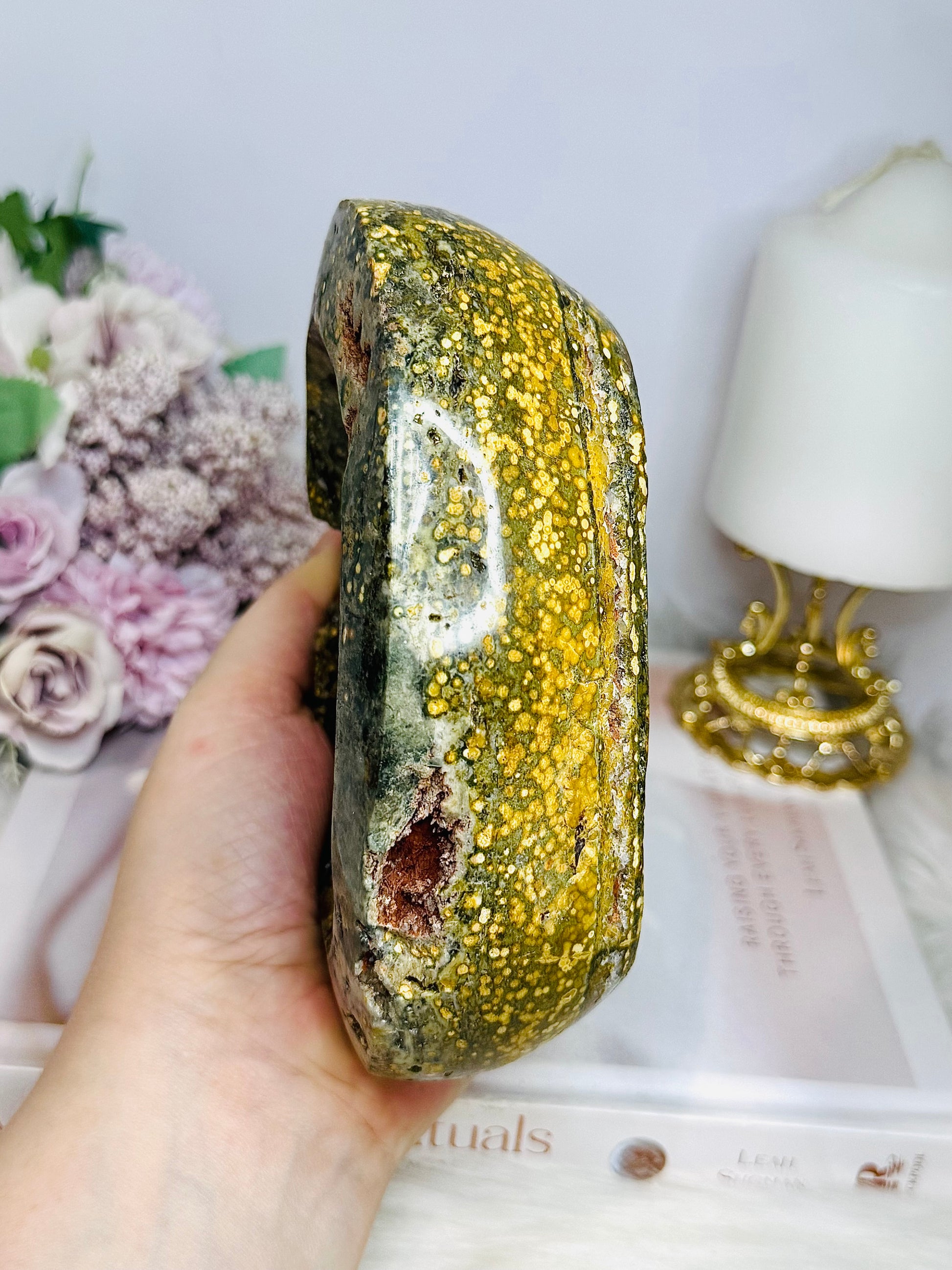 Large Orbicular Ocean Jasper Chunky Druzy Bowl 14cm 1.1KG