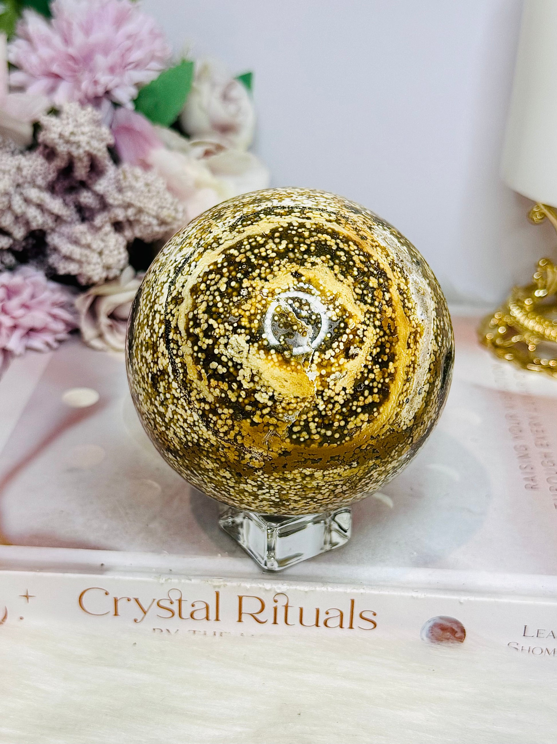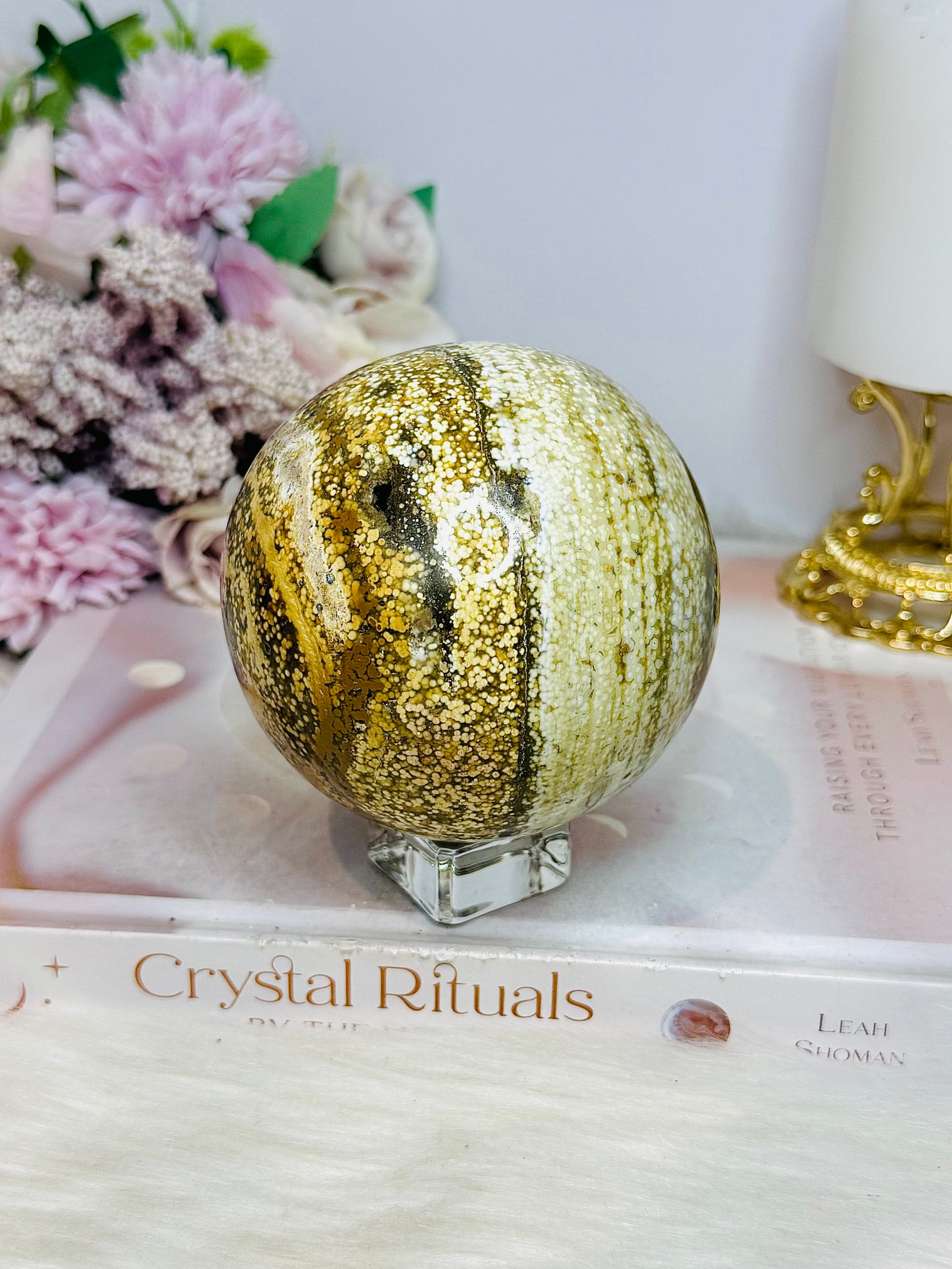 Large Orbicular Ocean Jasper Sphere On Stand 734g