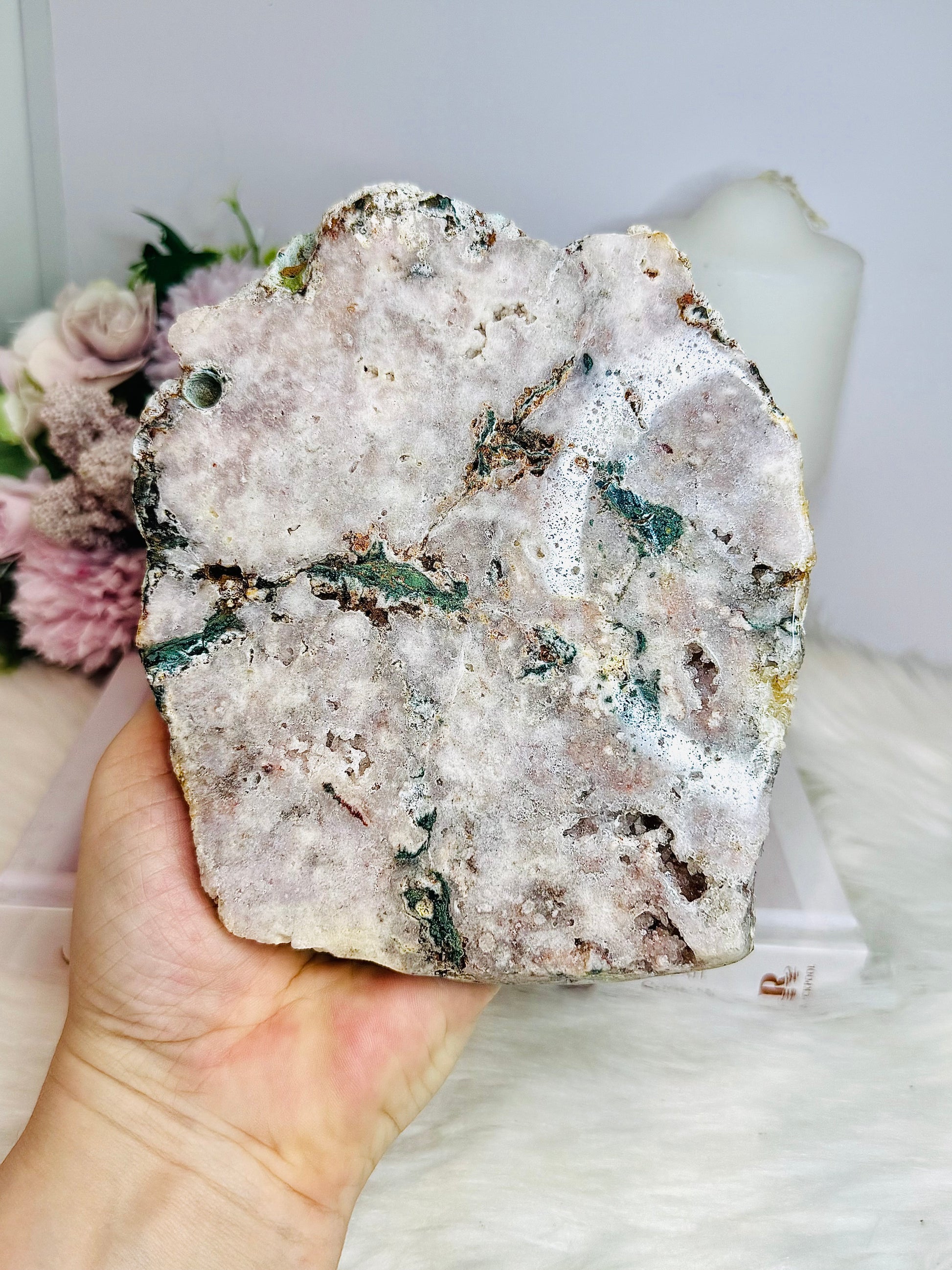 Large Pink Amethyst Natural Slab with Green Jasper Inclusions 16cm 665g