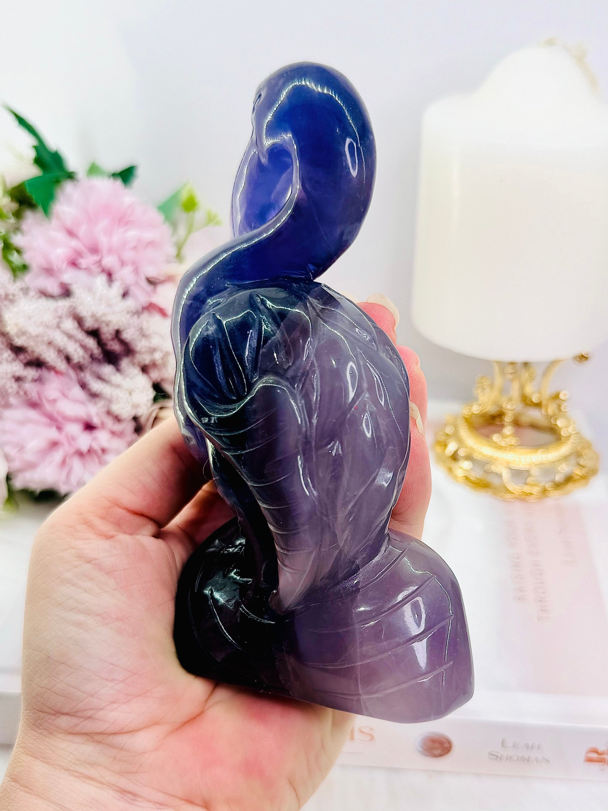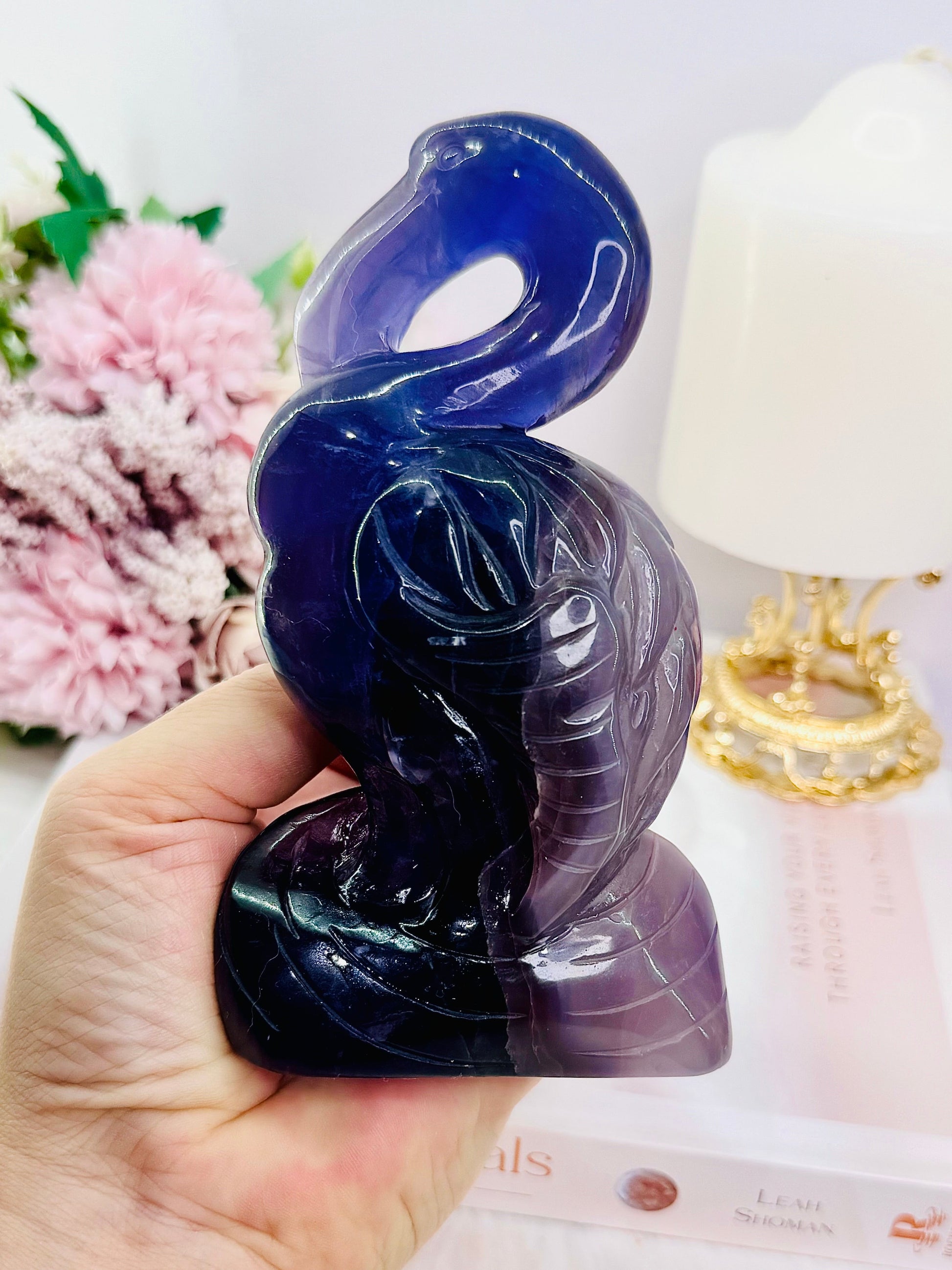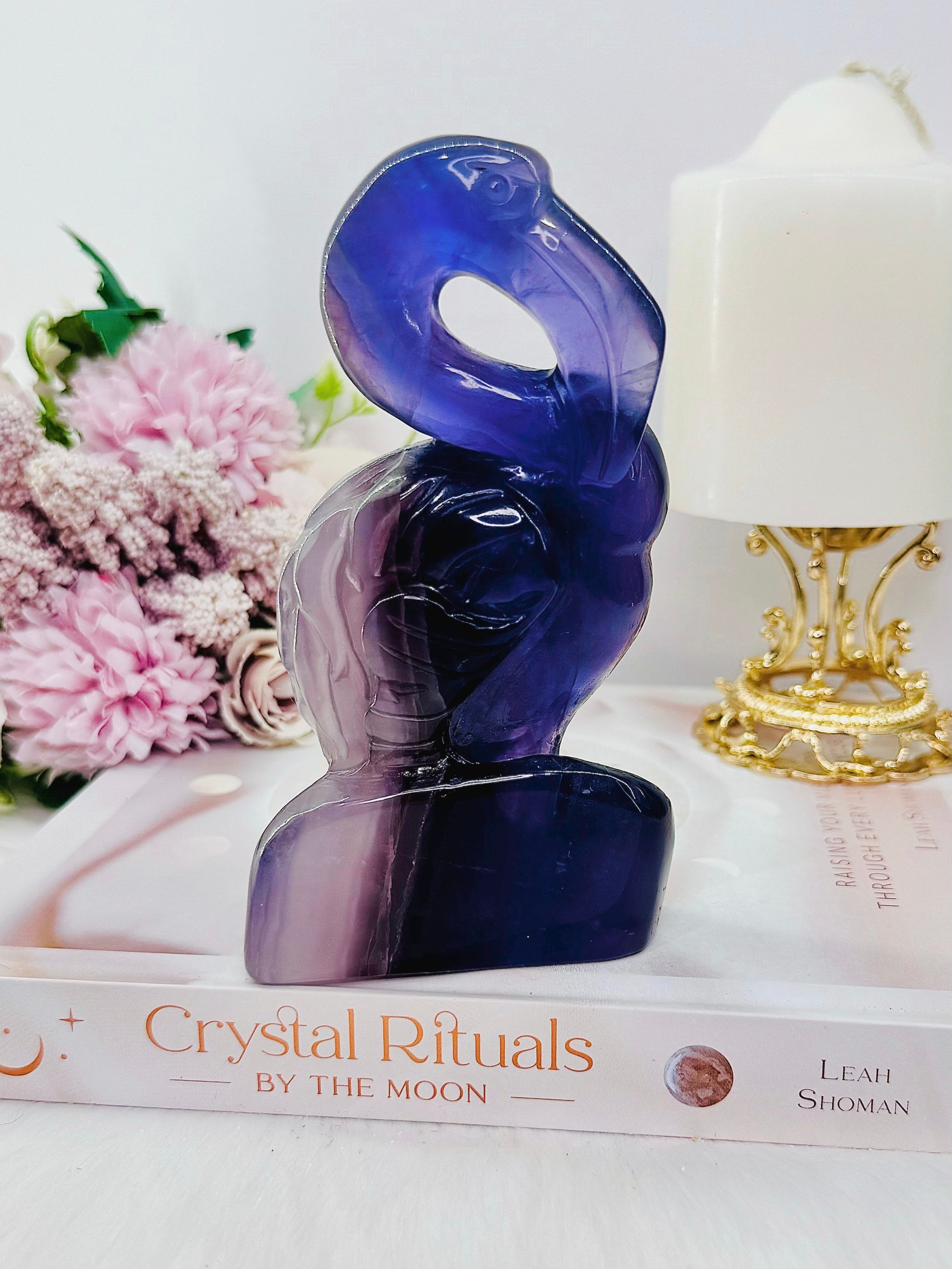Large Purple Fluorite Carved Flamingo 510gram 14cm