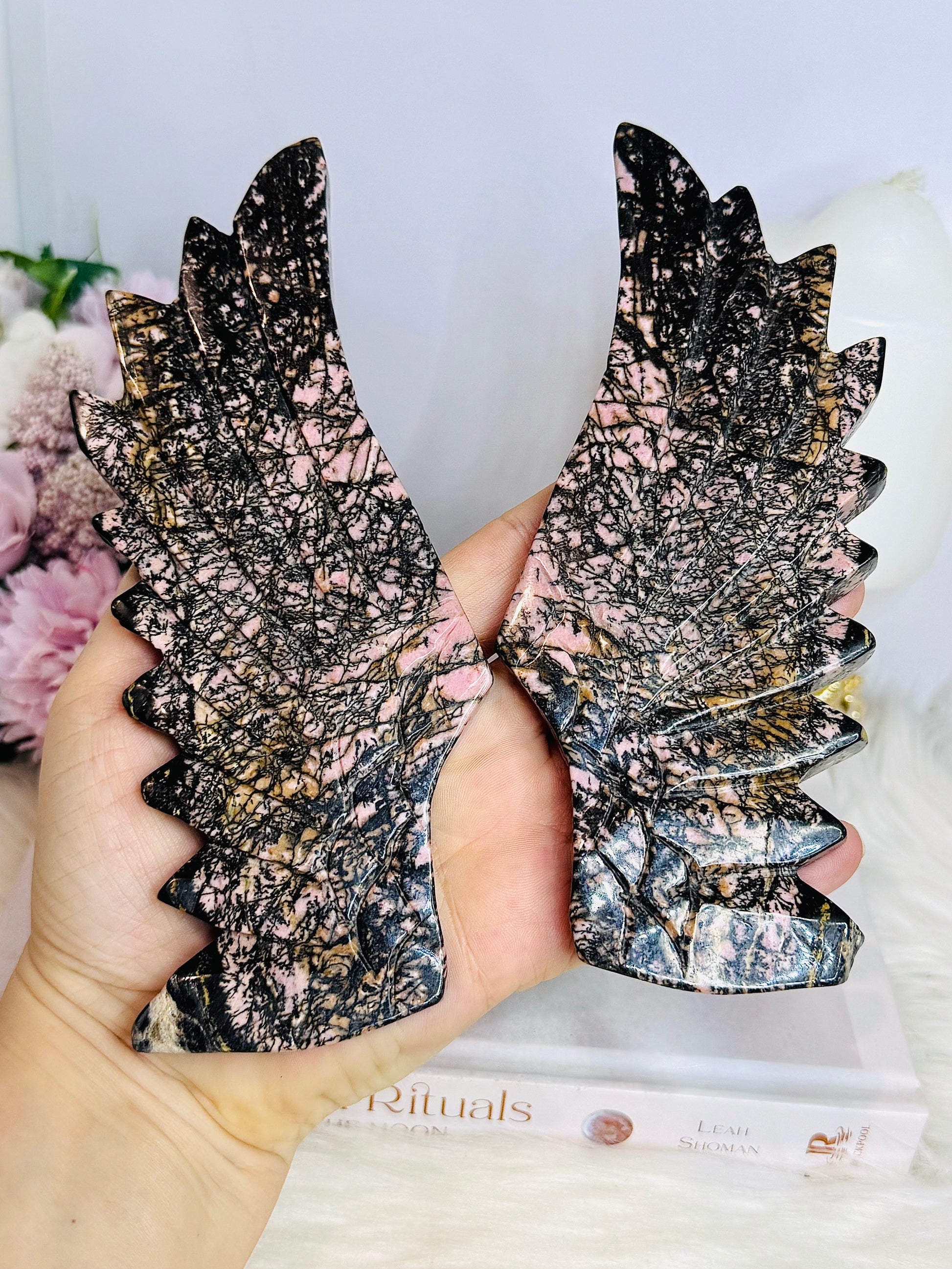 Large Rhodonite Carved Butterfly Wings On Stand 27cm 955g