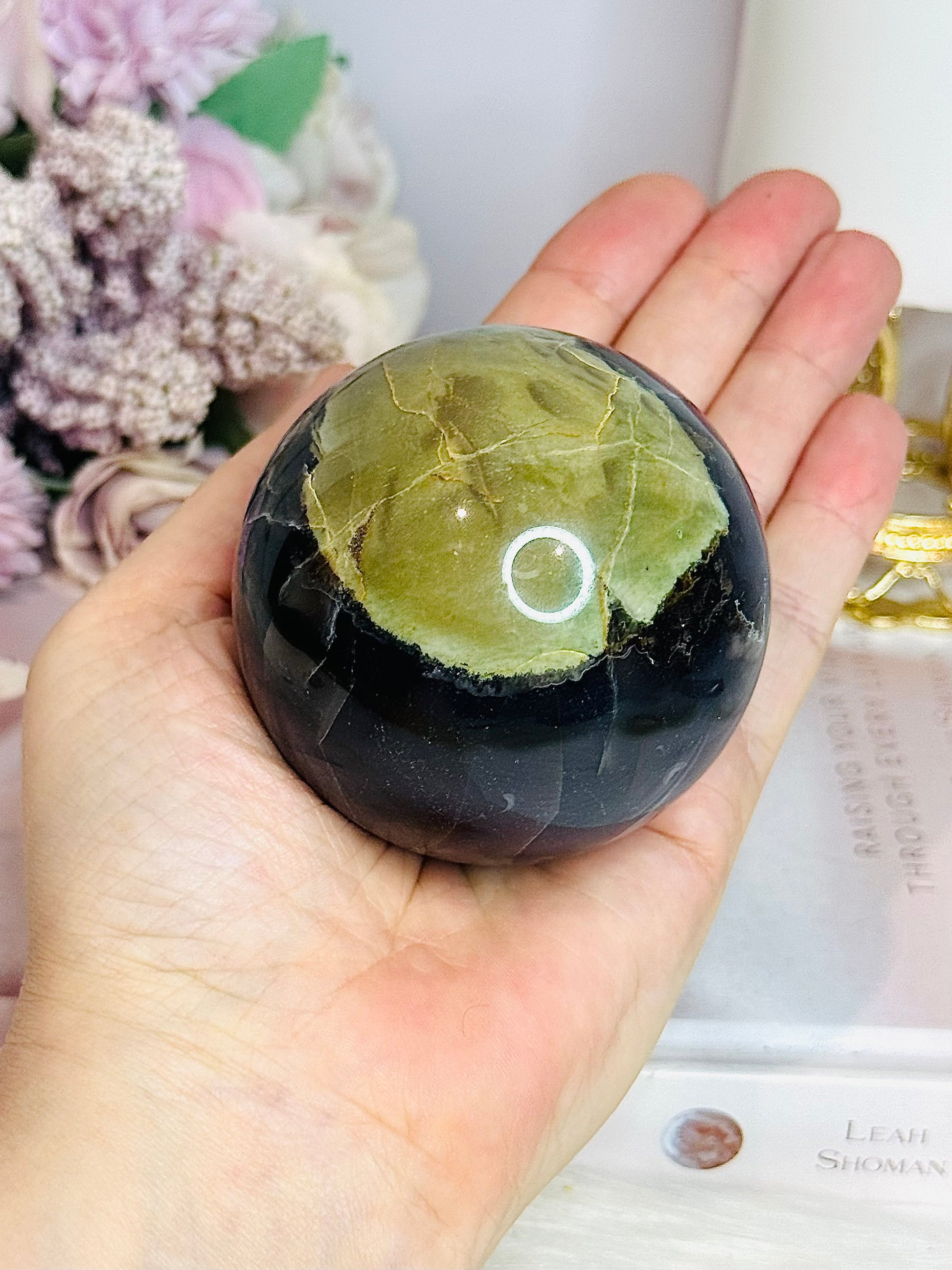 Large Volcano Agate (UV Reactive) Sphere On Stand 378g