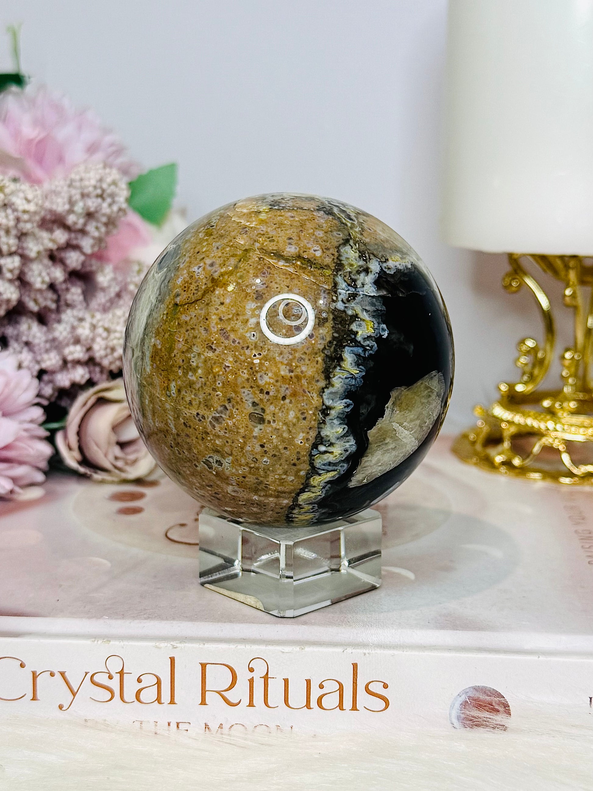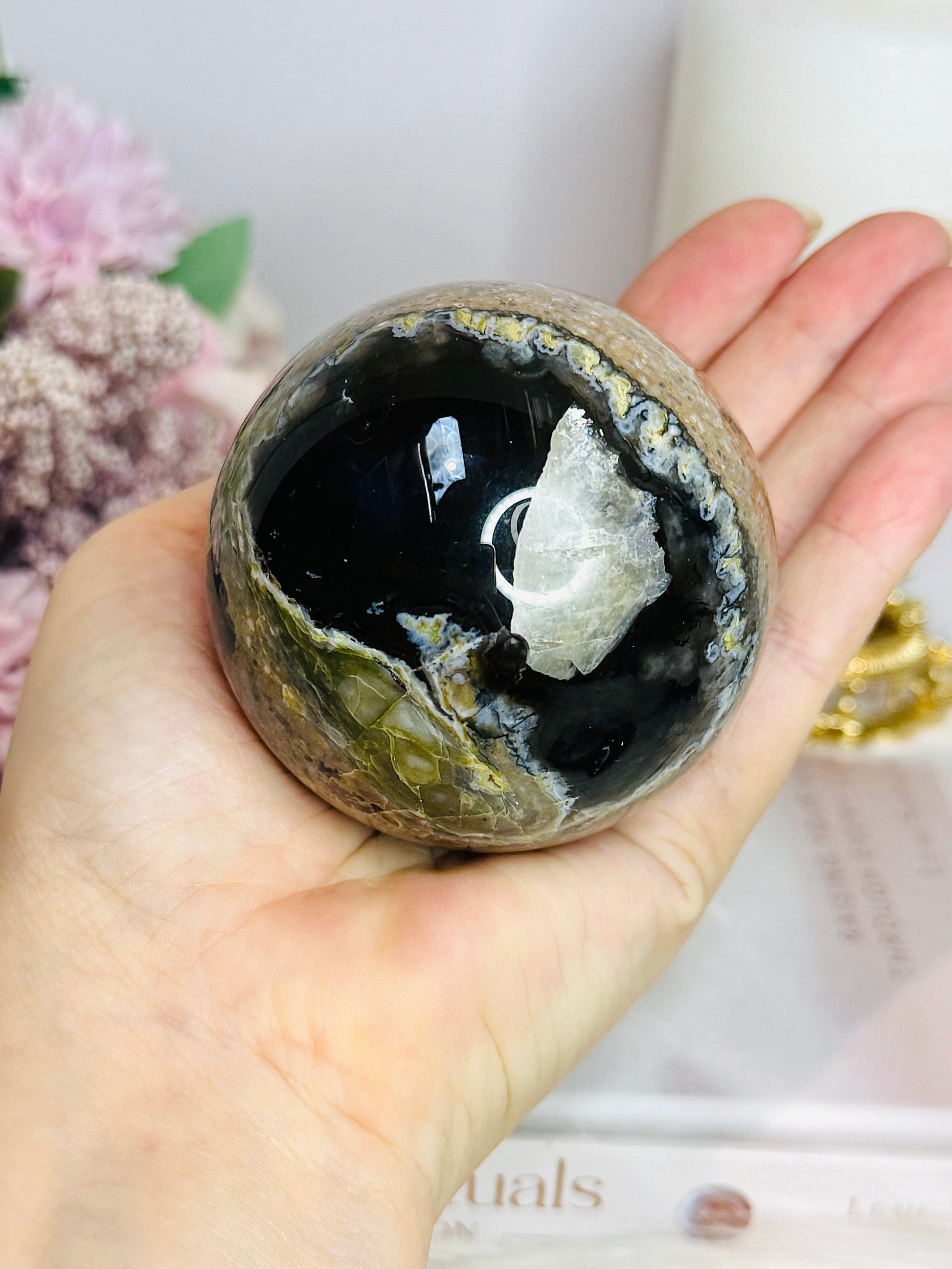 Large Volcano Agate (UV Reactive) Sphere On Stand 394g
