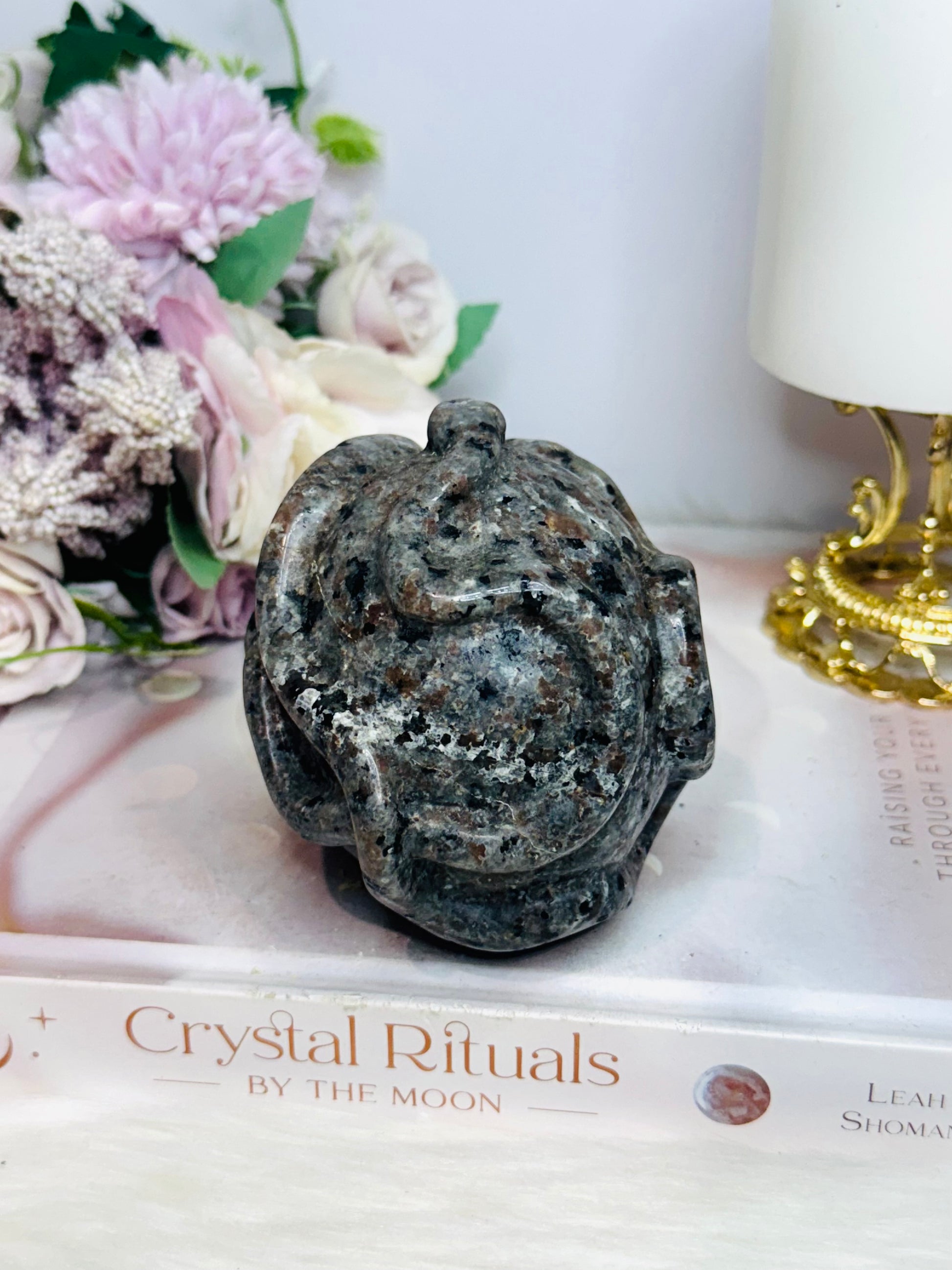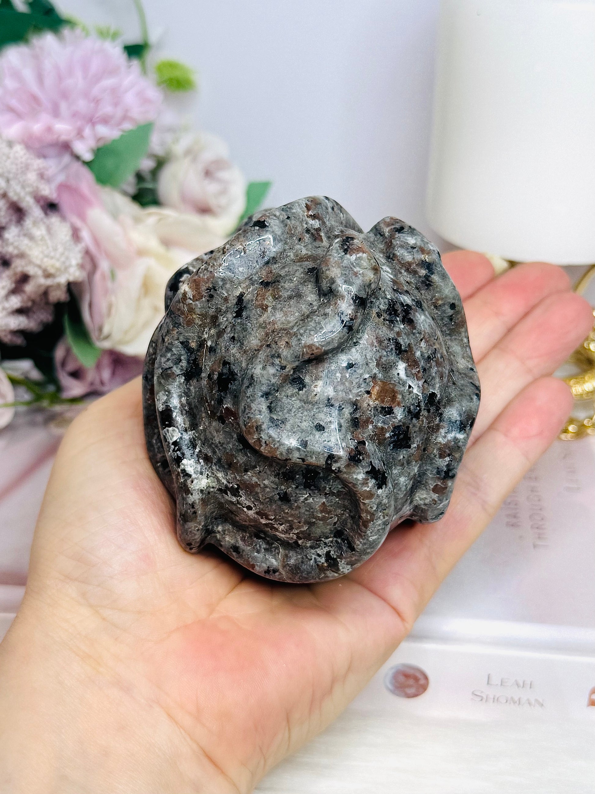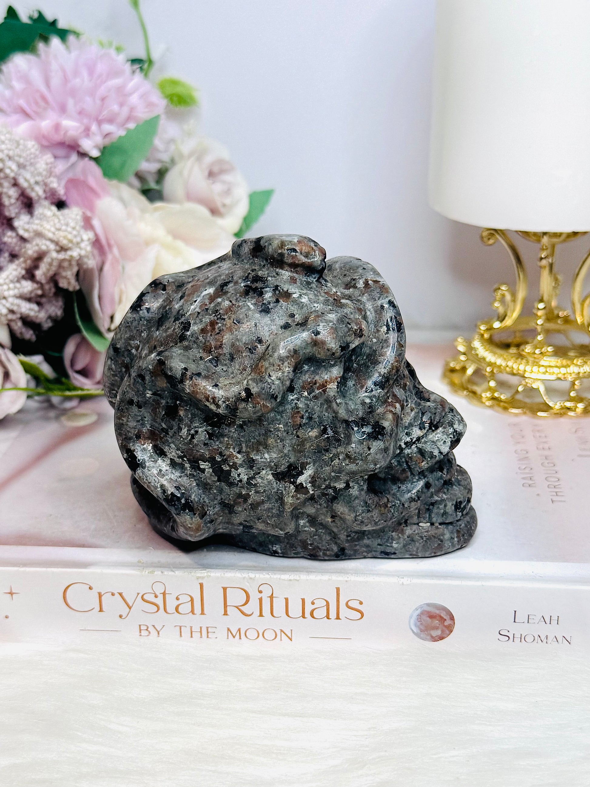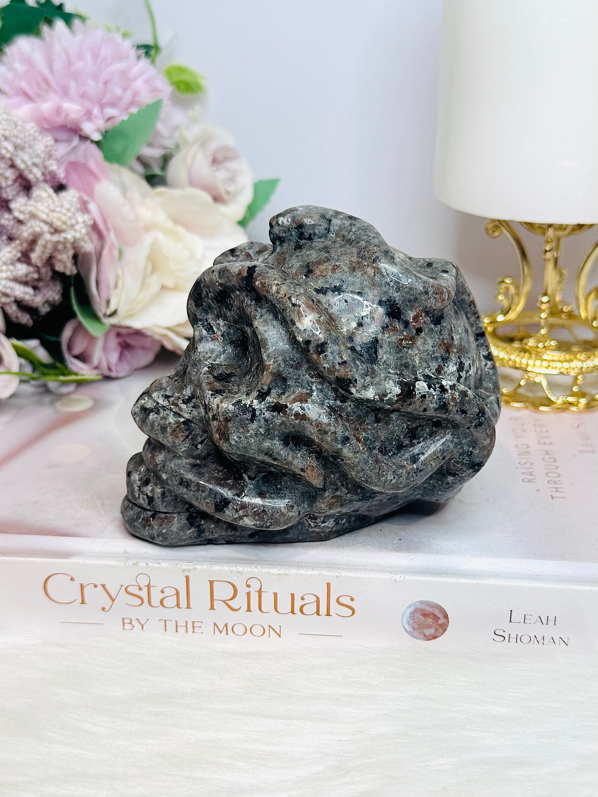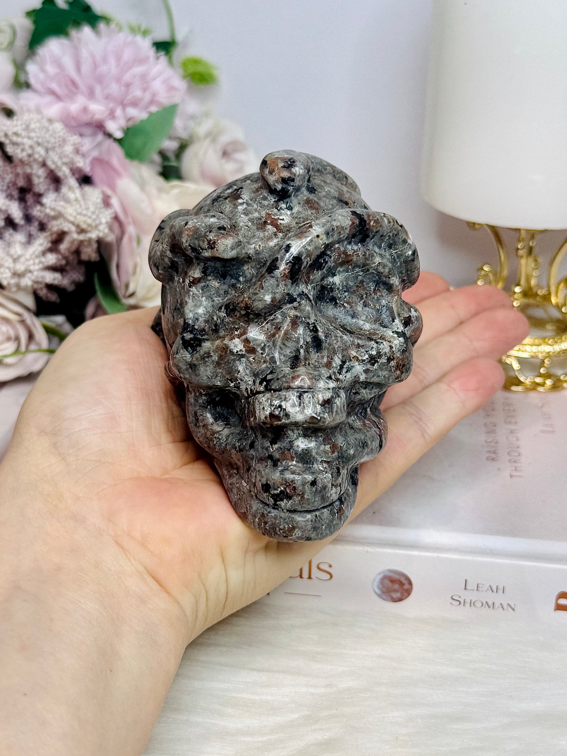 Large Yooperlite Carved Skull with Snake (UV Reactive) 617g