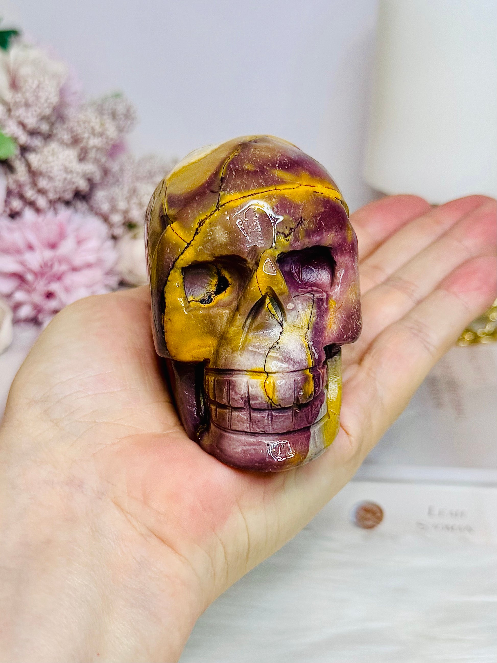 Mookaite Jasper Carved Skull 8.5cm 431g