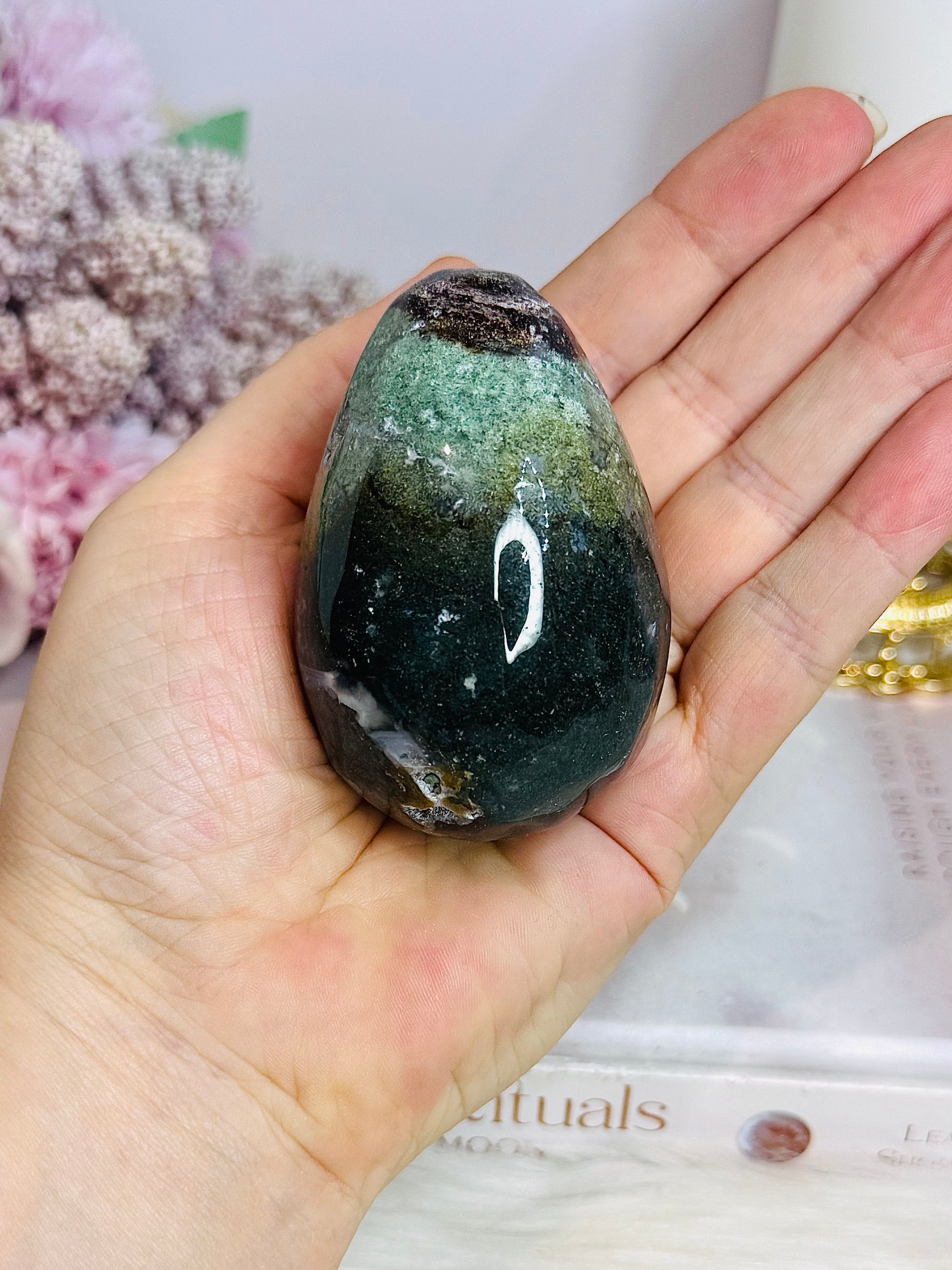 Spiritually ~ Moss agate can help to ground you during meditation, providing a deep connection to the earth. This can help to clear your mind and allow you to focus on your intentions. It can also provide support during difficult times, helping you to find peace and calm in the midst of chaos. Throughout history and across diverse cultures, moss has held a profound symbolic and spiritual meaning, often representing renewal, resilience, and the interconnectedness of all living things.