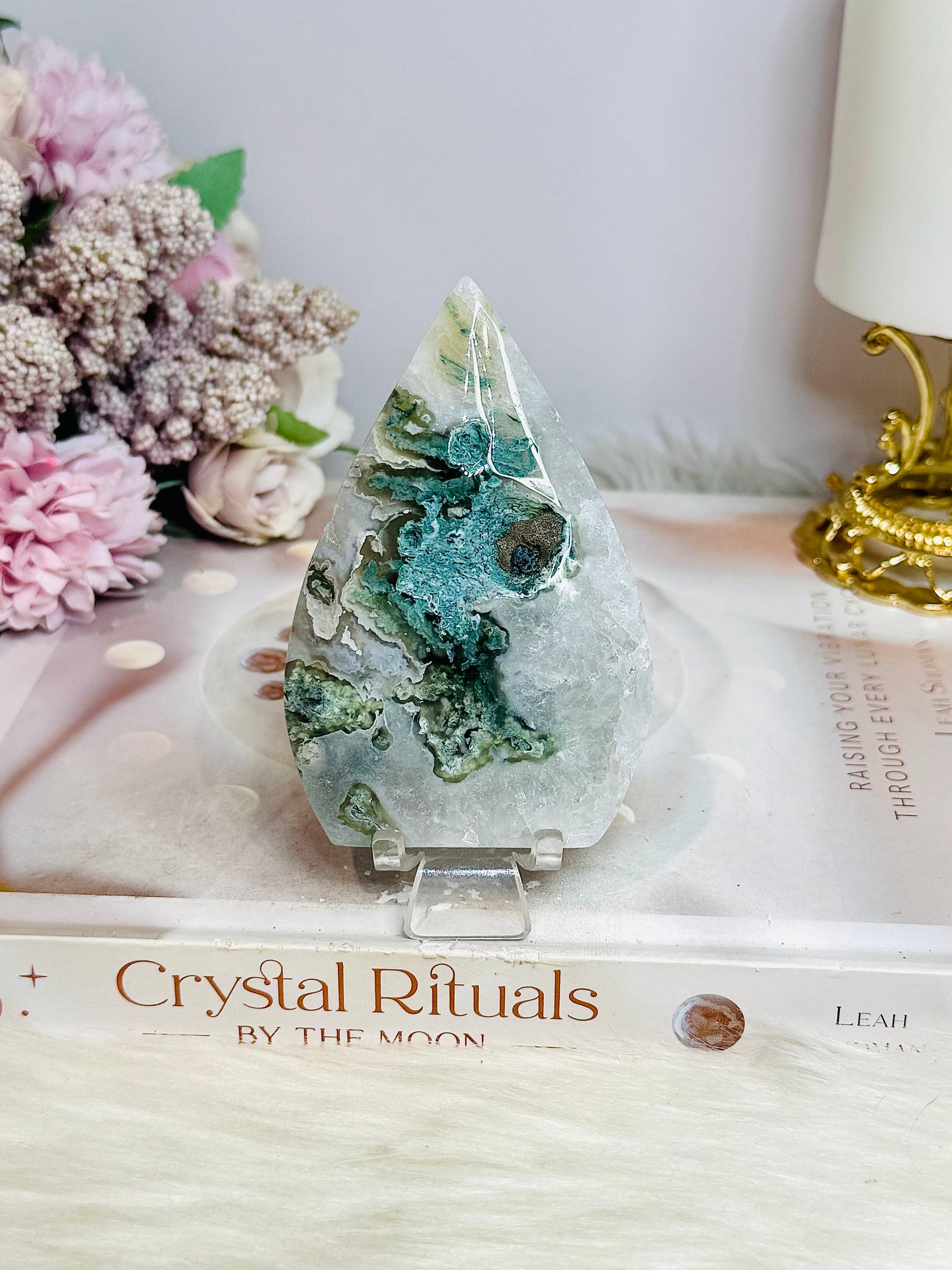 Moss Agate Flame | Freeform on Stand (does not stand on its own) 9cm