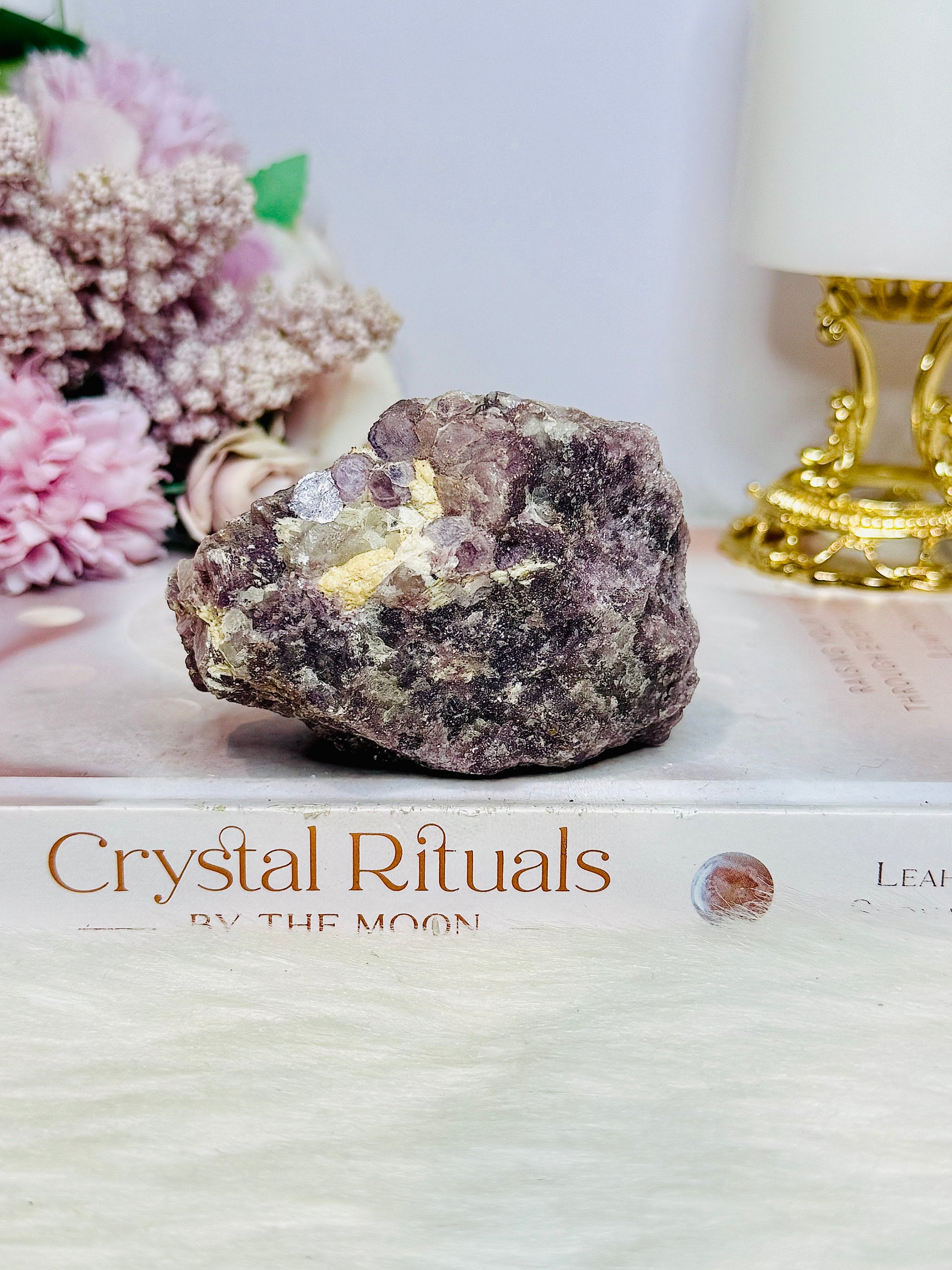 Energy ~ Lepidolite is a glorious stone for calming the body, mind, and soul. For those who often feel stressed or anxious, this gem will stabilize you instantly. It can also be used for clearing blockages in the crown, third eye, and heart chakra. Lepidolite can also be used to reduce the negative effects of EMFs.