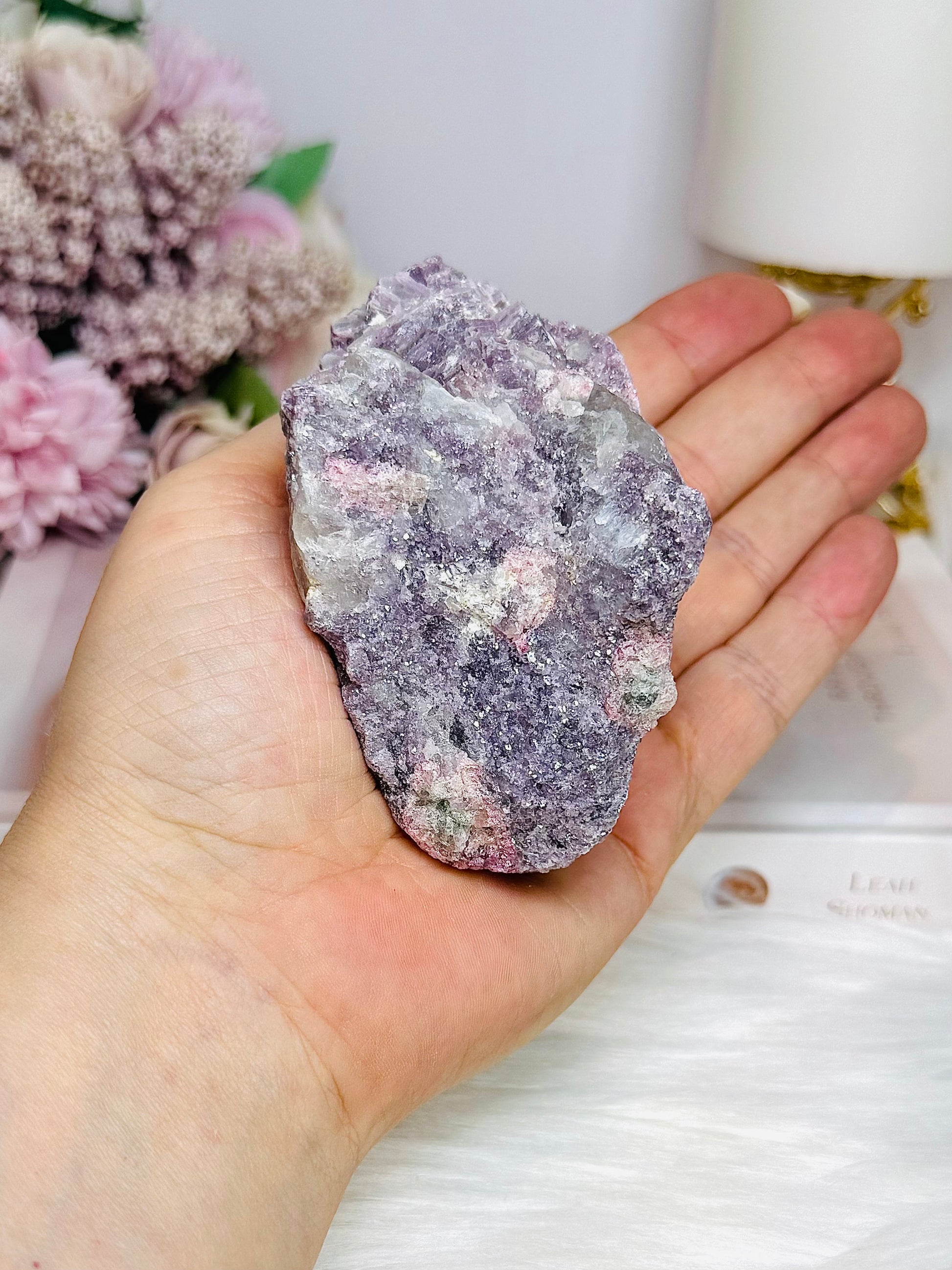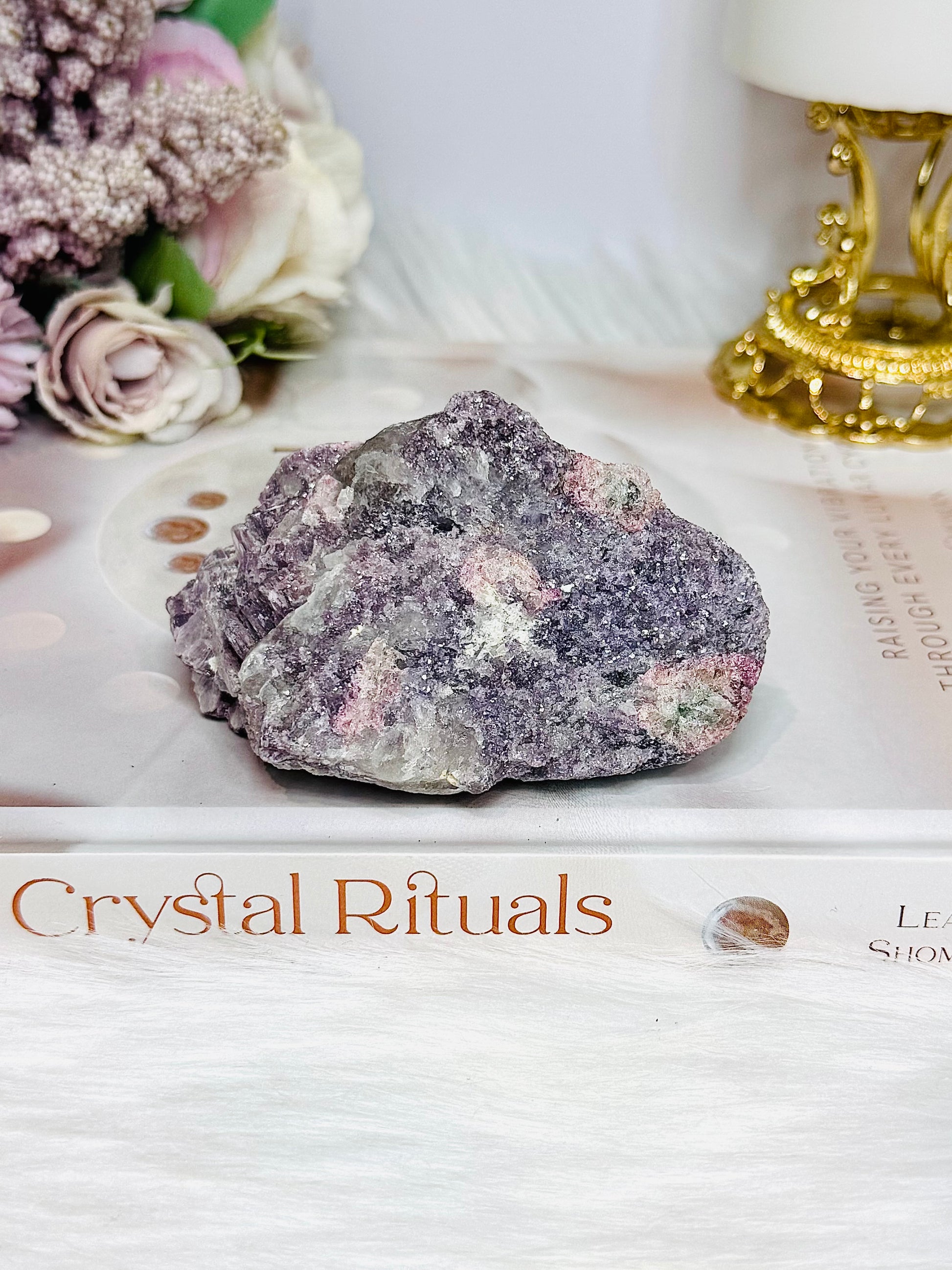 Natural Lepidolite with Pink Tourmaline Raw Specimen 8.5cm 245g