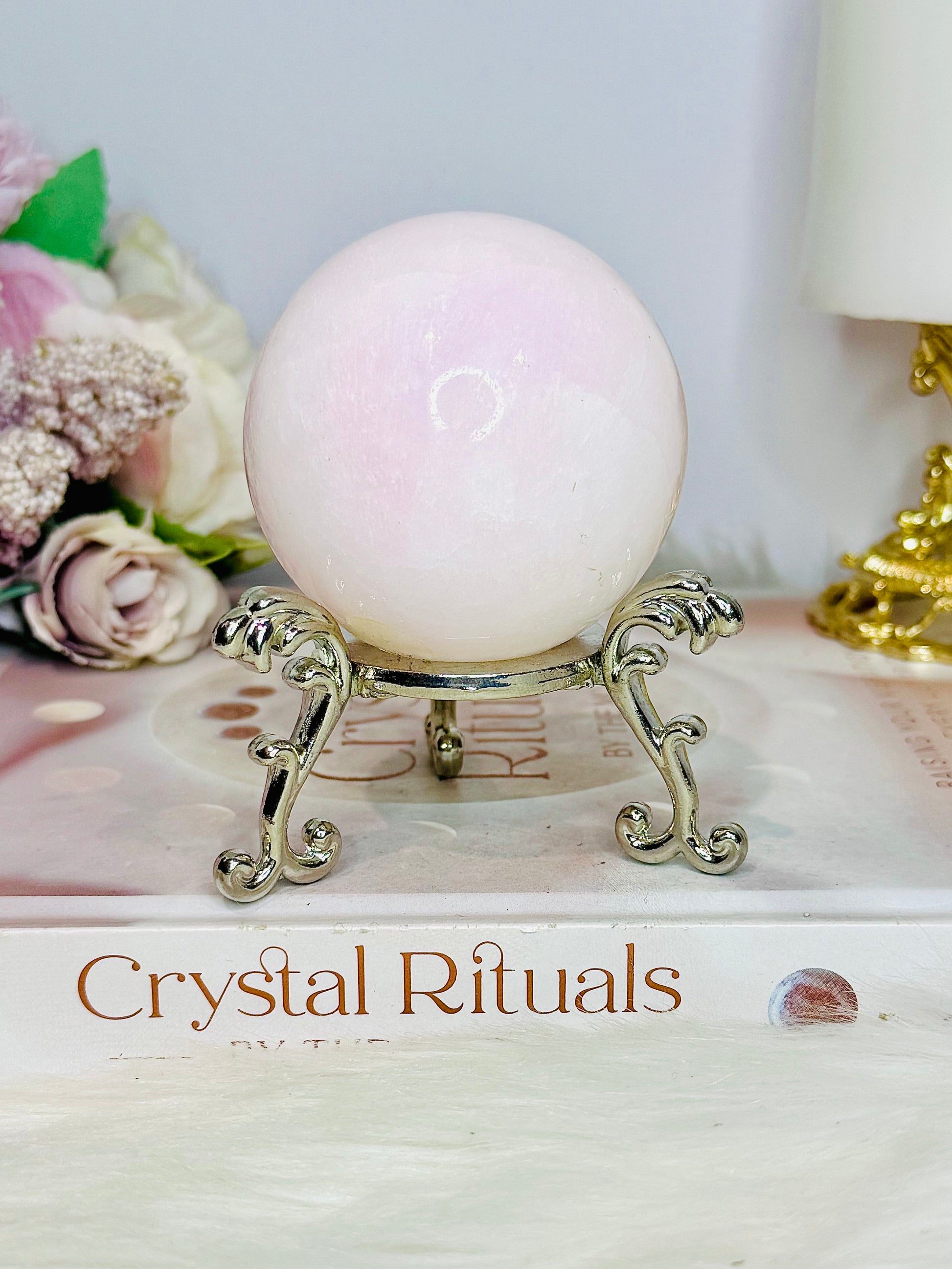 Natural Pink Mangano Calcite (UV Reactive) Sphere on Stand 291g