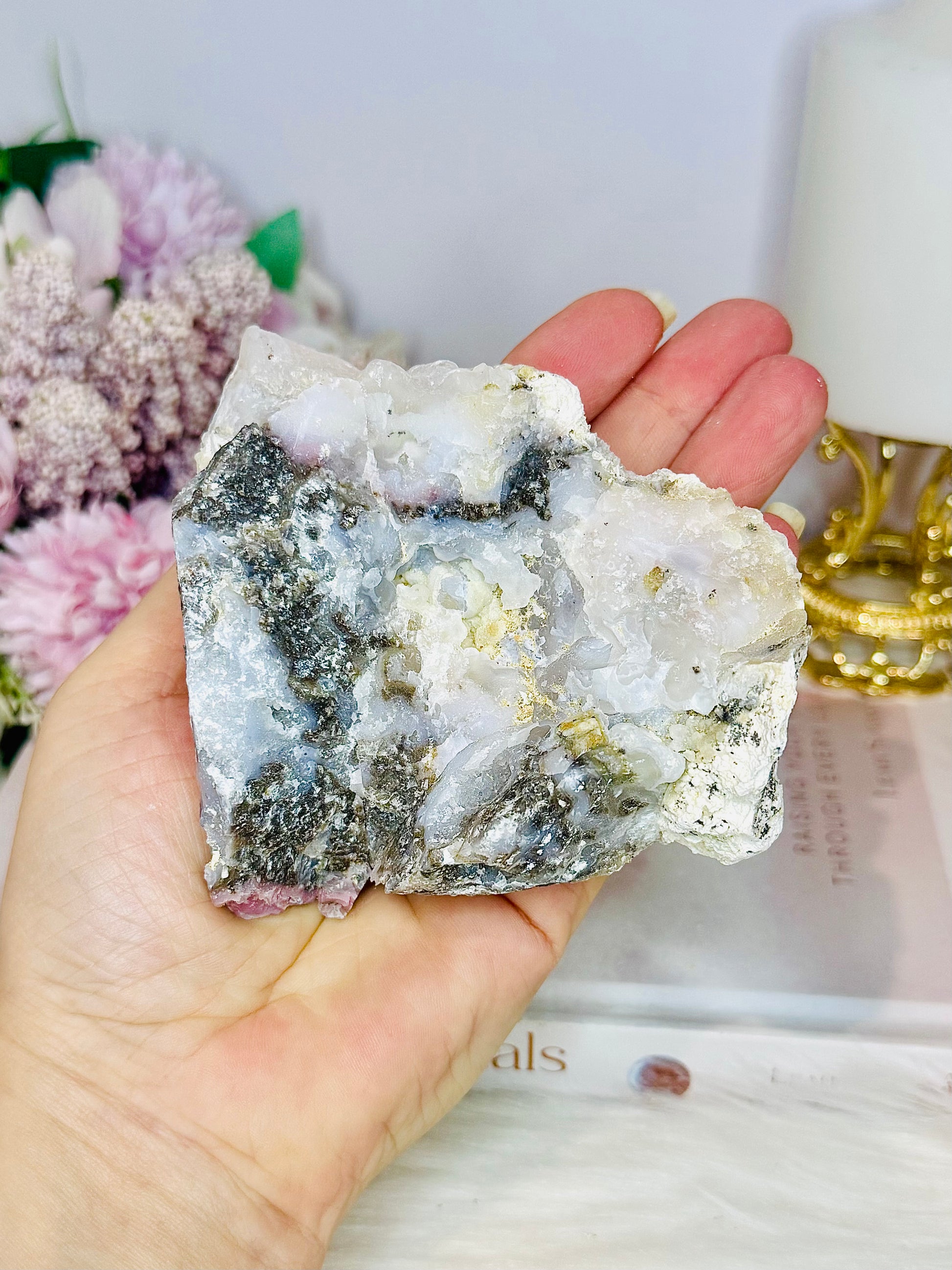 Heart Chakra ~ Pink opal is a captivating gemstone known for its gentle and nurturing energy. It resonates with the heart chakra, promoting love, compassion, and emotional healing. This beautiful crystal helps soothe anxiety, release past traumas, and bring a sense of peace and tranquillity to those who embrace it.