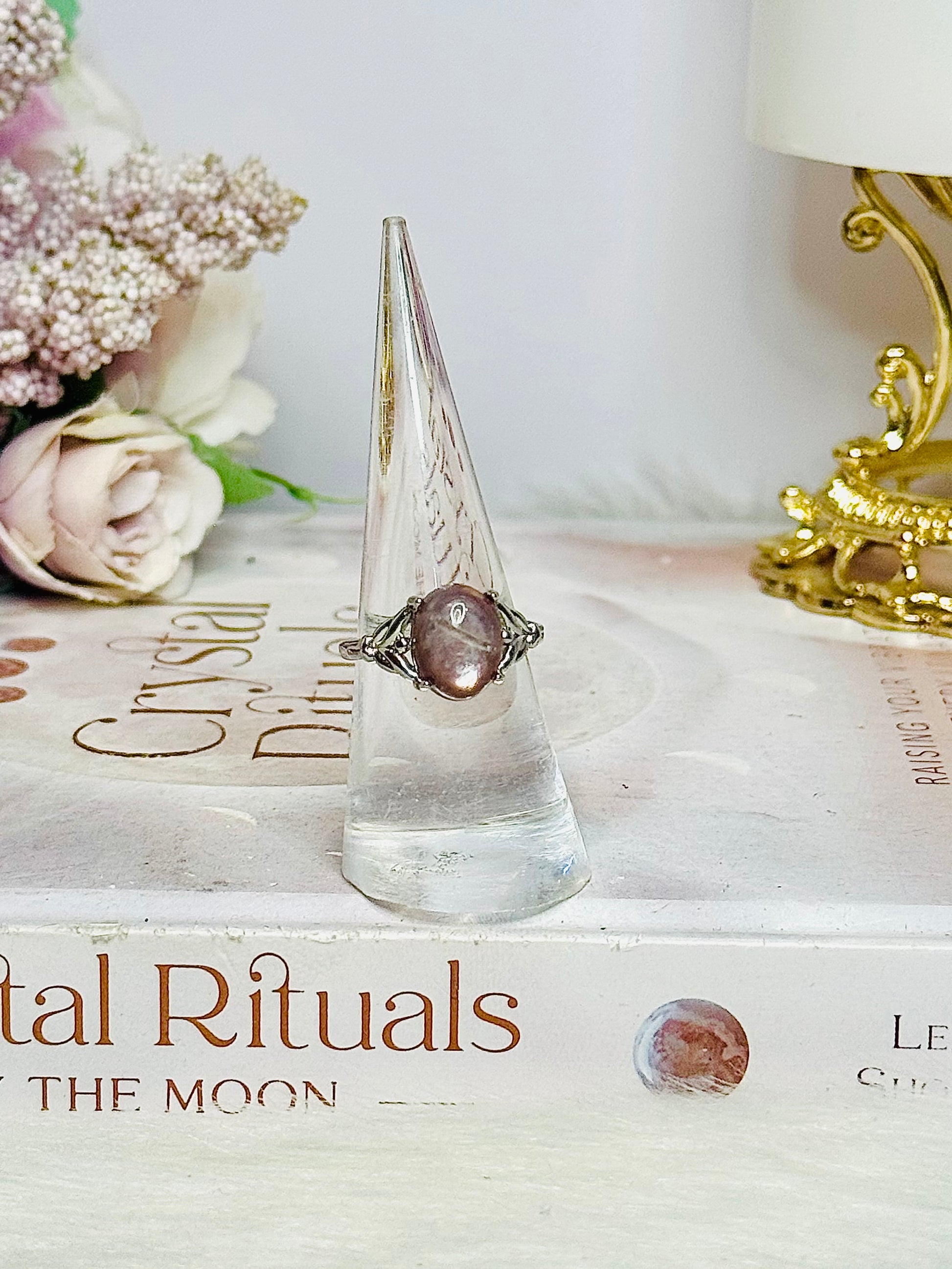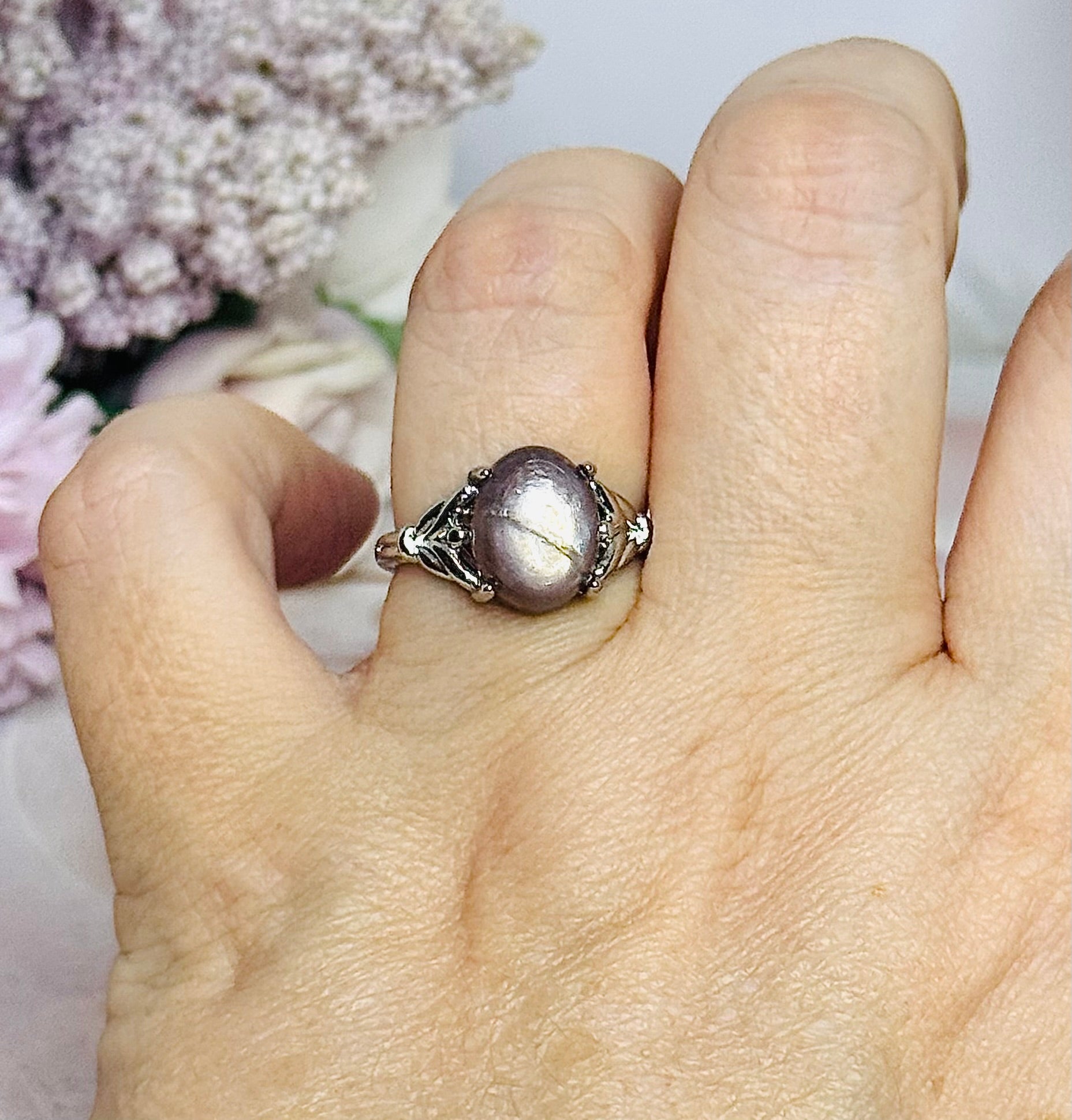Purple Mica Adjustable Silver Ring in Gift Bag