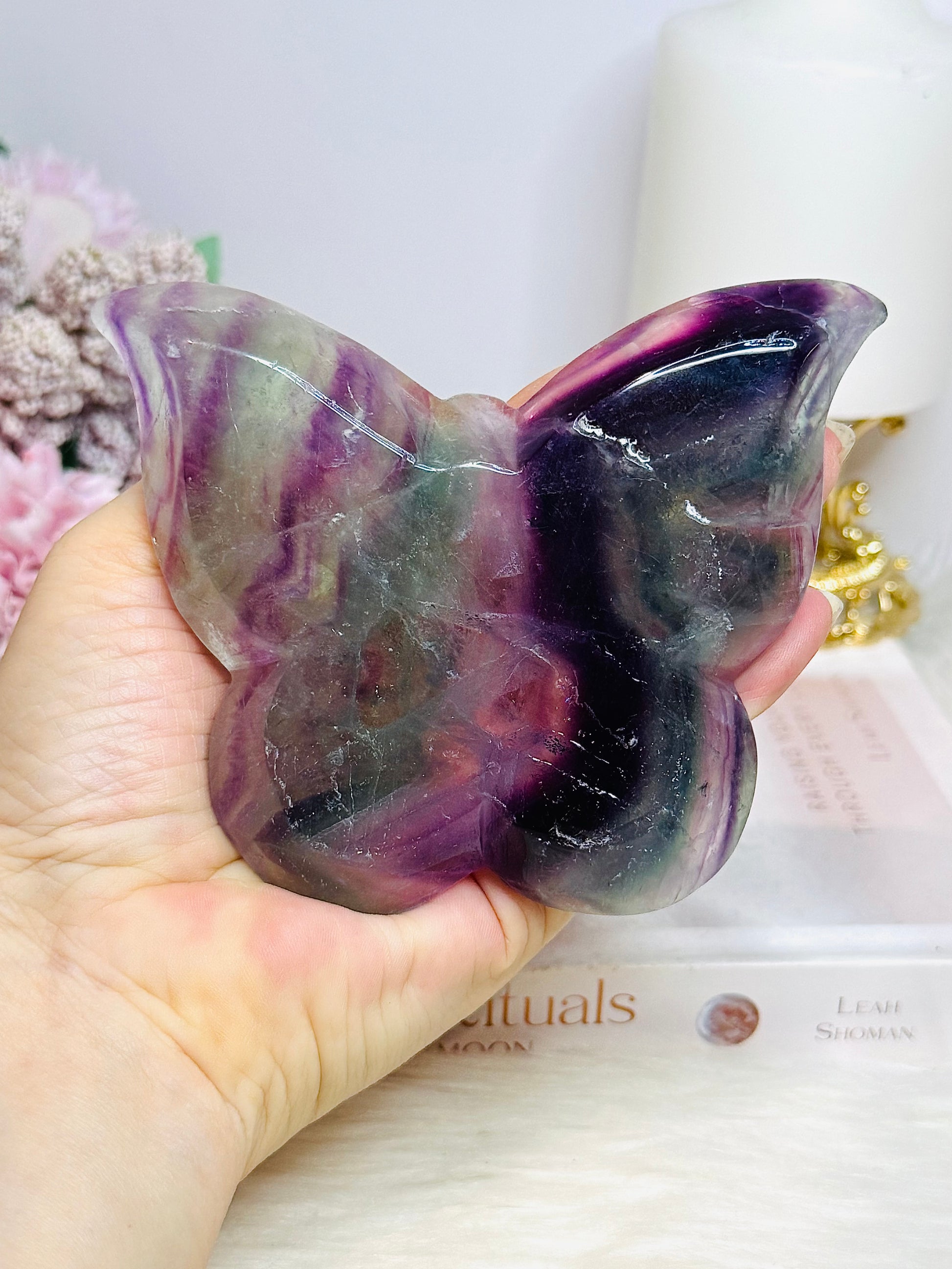 Rainbow Fluorite Carved Butterfly Bowl 9cm