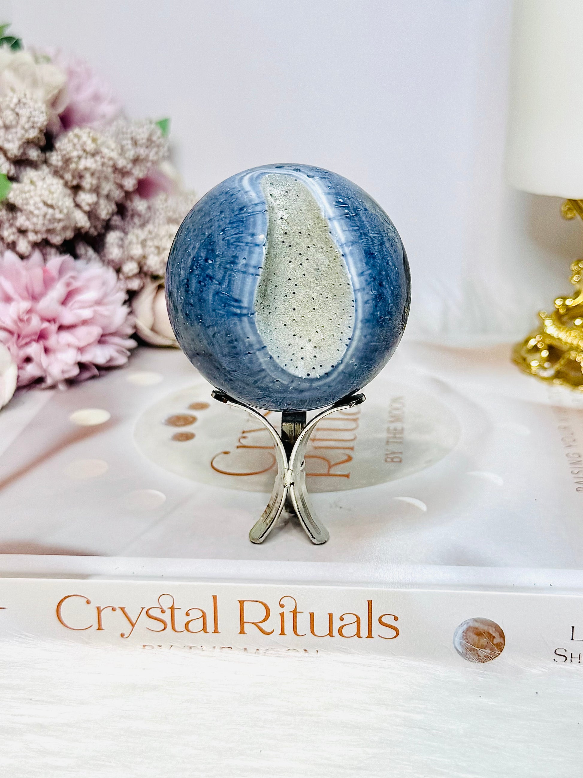 Rare Blue Coral Fossil Sphere on Stand 205g