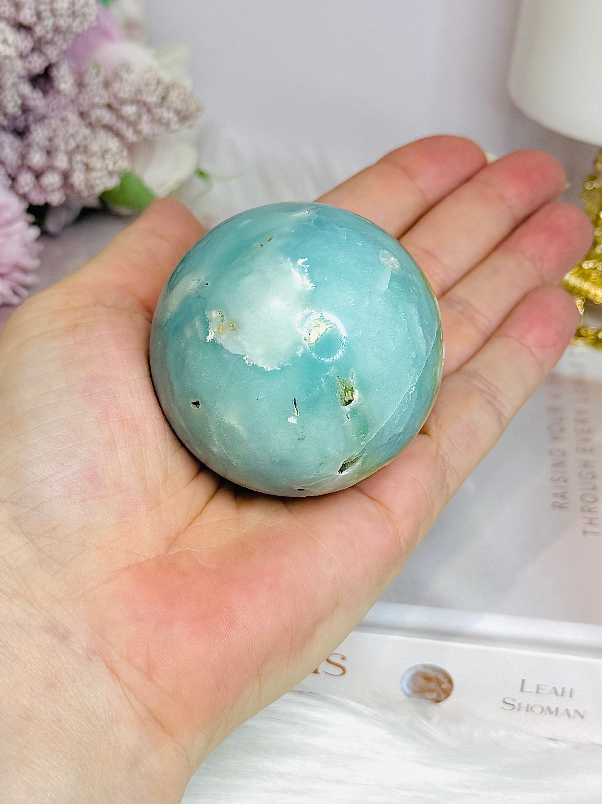 Sky Blue Quartz Druzy Sphere on Stand 224g