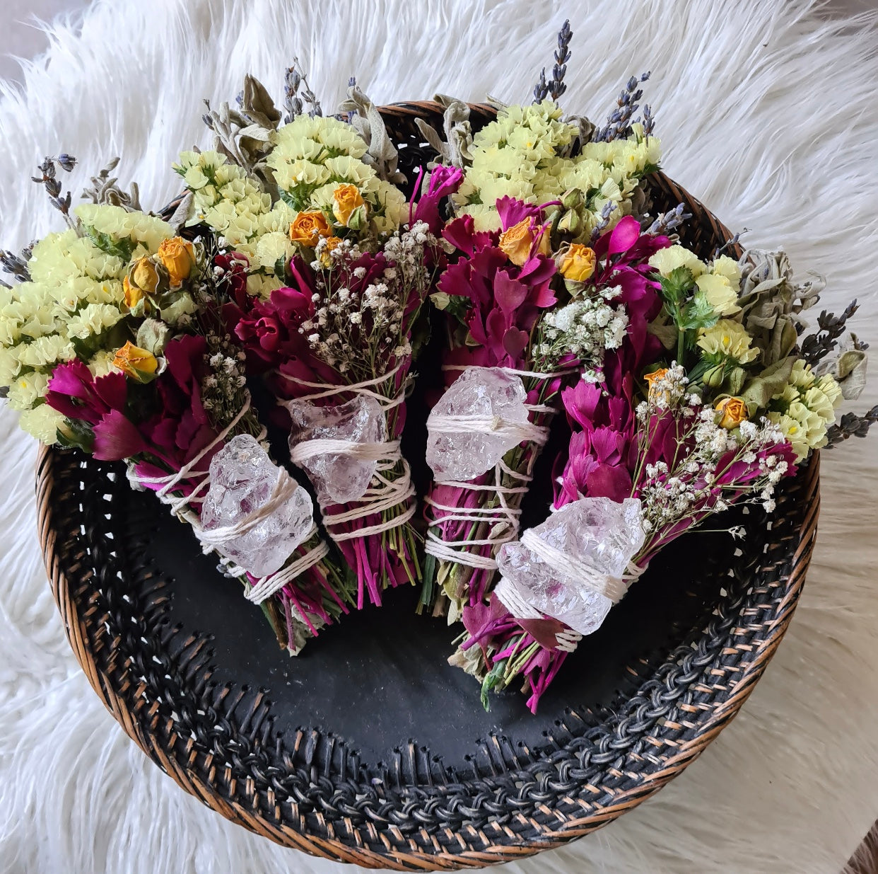 Smudge Wand with Sage, Lavender & Clear Quartz