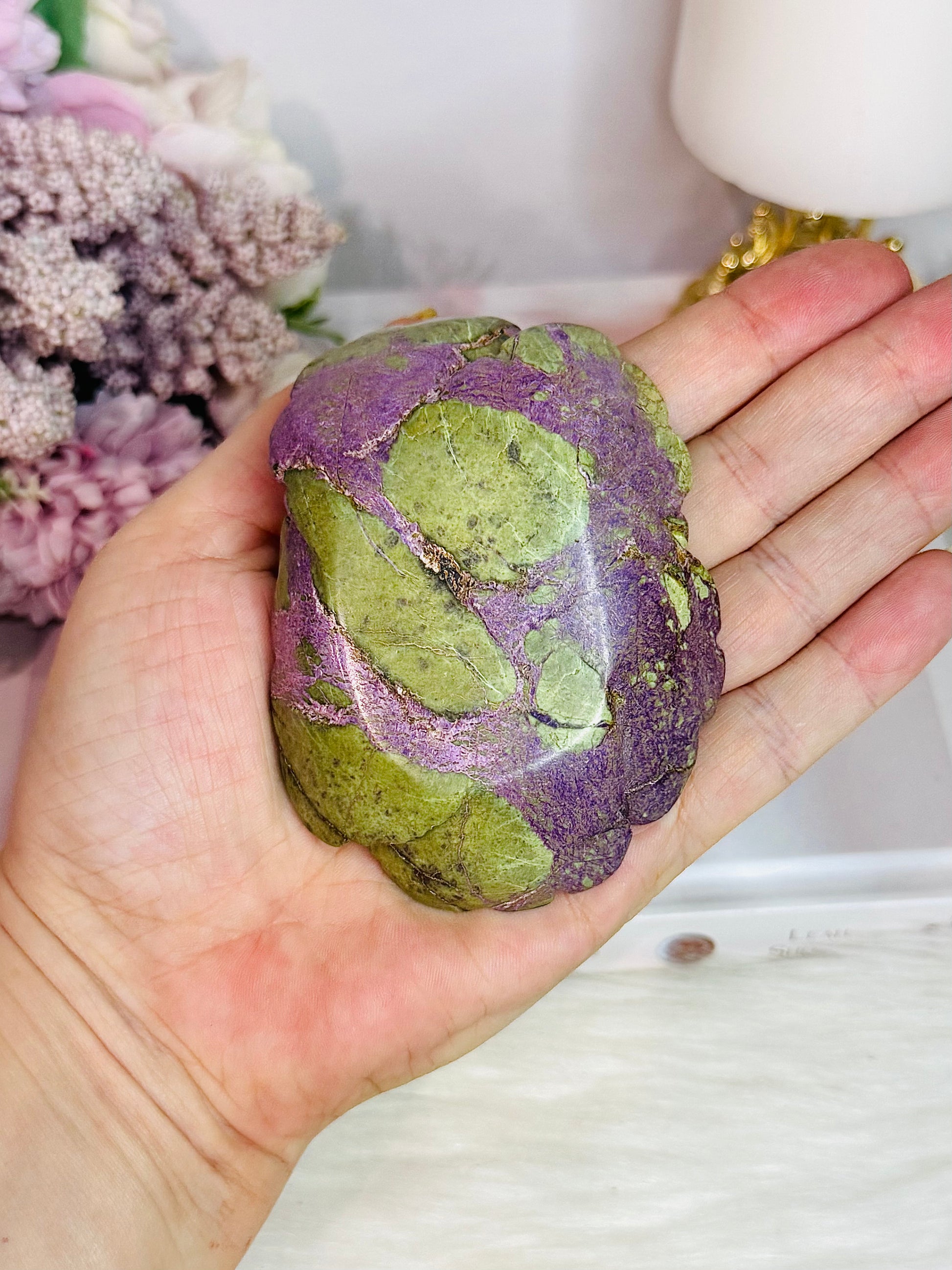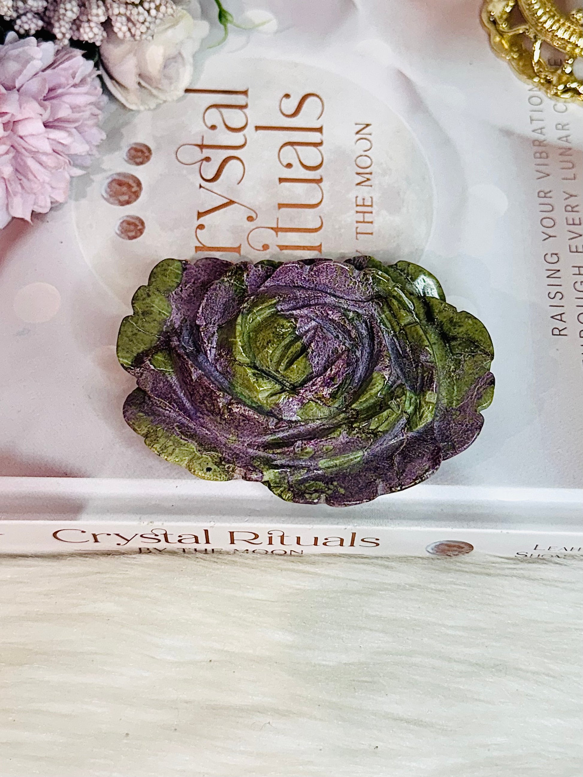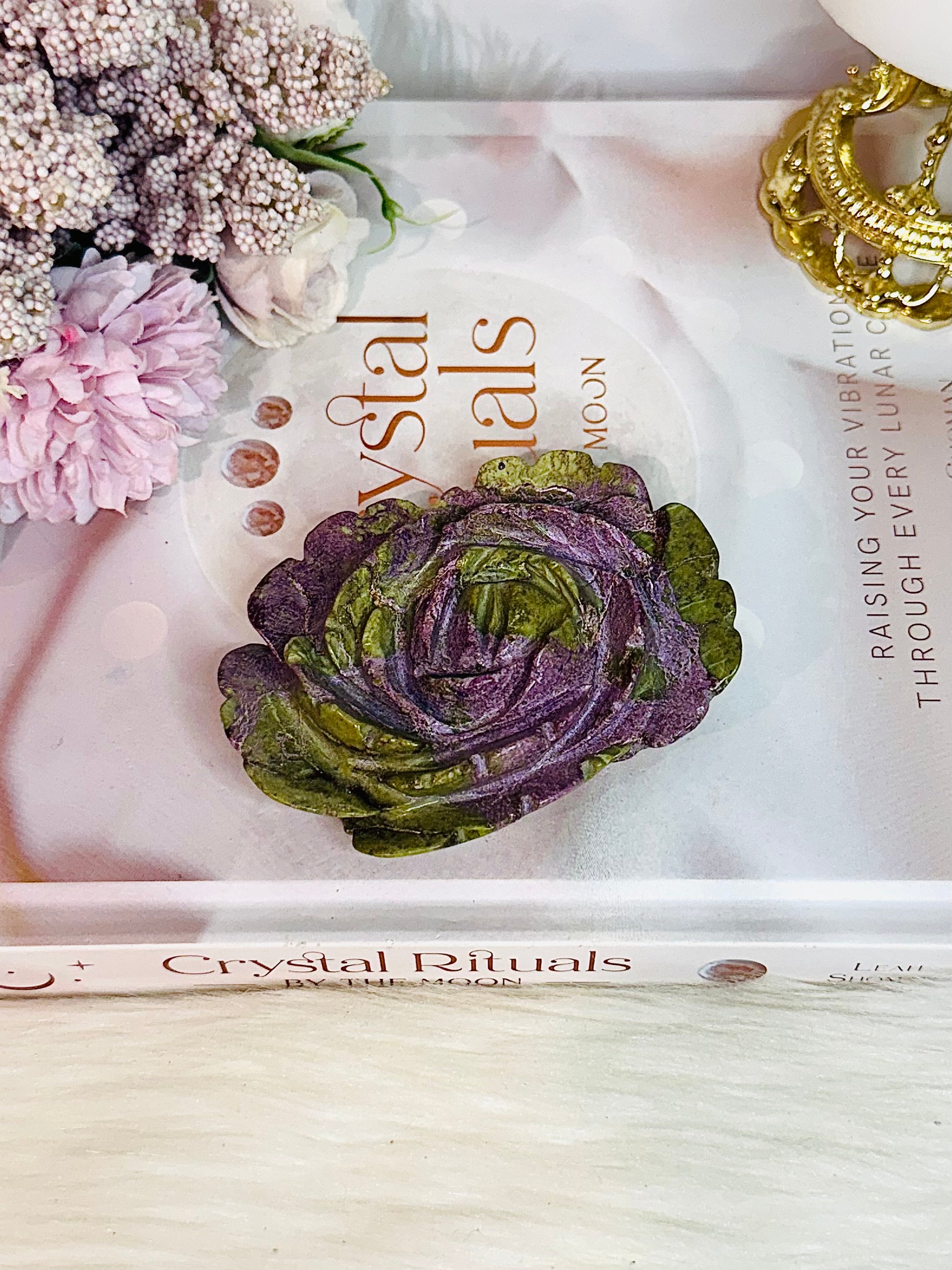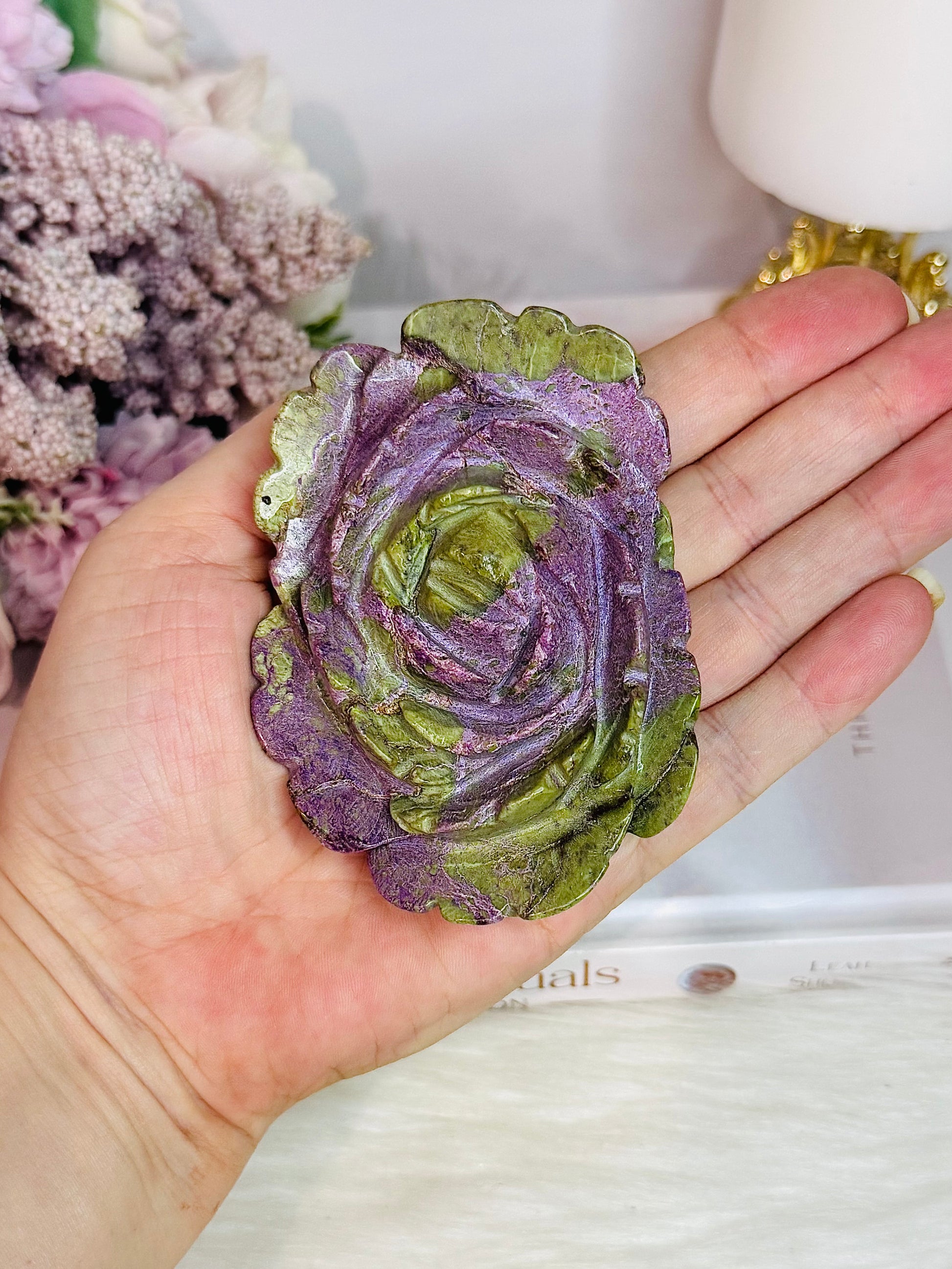 Wow! Rare & Incredible Atlantasite Carved Flower on Stand 9.5cm