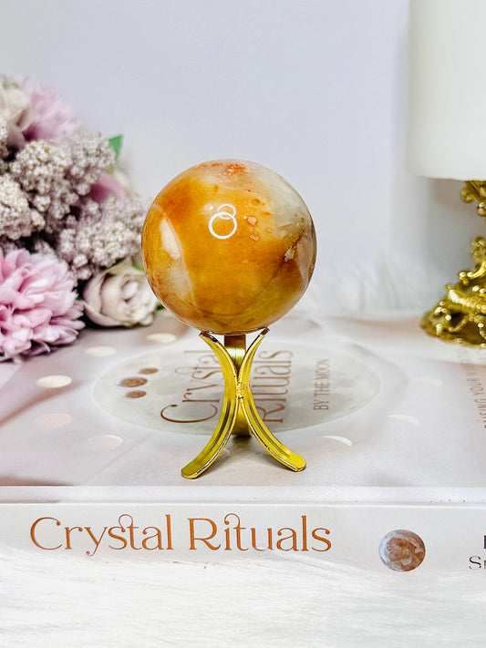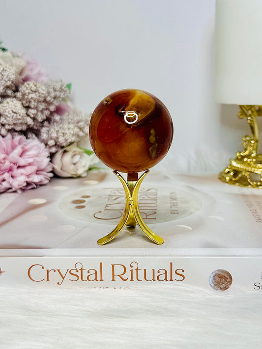 Carnelian Sphere on Gold Stand 111g