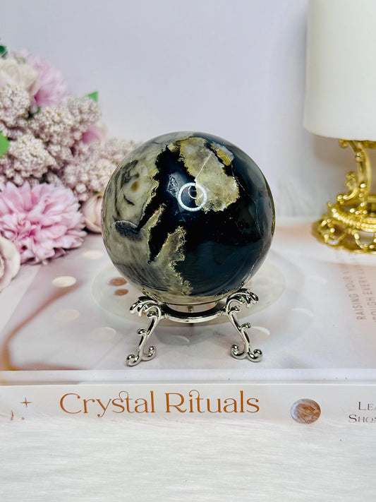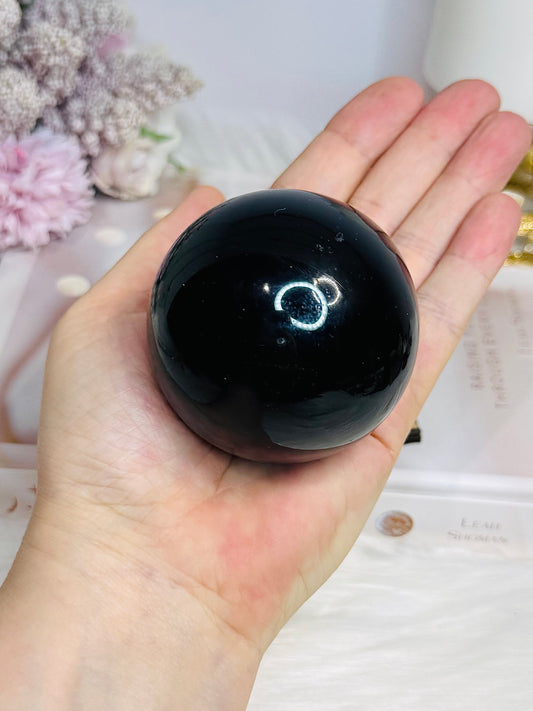 Large Black Obsidian Sphere on Stand 327g